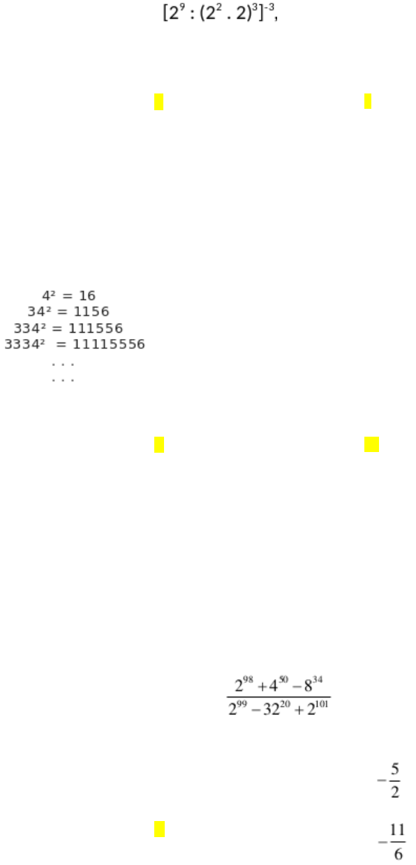 VERIFICAÇÃO DE APRENDIZAGEM: POTENCIAÇÃO PERGUNTA 1 · Simplificando a expressão , obtém-se: a. 236 b. 2-30 c. 1 d. 2-6 e. 2 0,25 pontos PERGUNTA 2 · Observe que os termos da sequência de quadrados perfeitos abaixo representados obedecem a determinado padrão. · · De acordo com tal padrão, pode-se concluir corretamente que ao calcular-se 333333342 obtém-se um número cuja soma dos algarismos é igual a: a. 49 b. 47 c. 39 d. 52 e. 34 0,25 pontos PERGUNTA 3 · Considere a seguinte fração: · · Esta fração é igual a: a. b. c. d. n. d. a. e. 0,25 pontos PERGUNTA 4 · Os valores de e apresentam entre si uma diferença igual a a. 256 b. 128 c. 192 d. 0 e. 64
