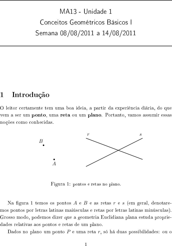 Figura 1: pontos e retas no plano.Na �gura 1 temos os pontos A e B e as retas r e s (em geral, denotare-mos pontos por letras latinas maiús