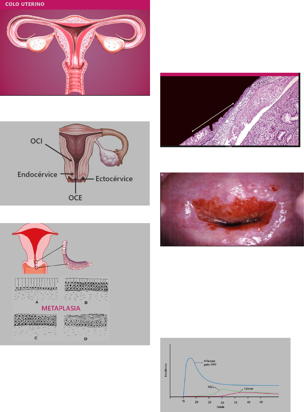 AULA MEDCEL O colo do útero é um cilindro muscular que tem a função de sustentar a gestação. HISTOLOGIA O epitélio endocervical é uma camada única de células. Essas células possuem glândulas produtoras de muco. O muco não deixa de ser uma forma de proteção na endocérvice e ele também serve para capacitar os espermatozoides. Quando mais próximo do OCE o epitélio começa a ficar estratificado, pois precisa se defender. A vagina é ácida, tem contato com bactérias e agentes do meio. Esse processo de estratificação do epitélio em um epitélio escamoso -> metaplasia No colo do útero há a presença de três tipos de epitélio: endocervical (epitélio colunar simples), trecho de epitélio fazendo metaplasia e ectocérvice (epitélio escamoso estratificado). O trecho de epitélio da JEC é super dinâmico. O vermelho é epitélio glandular, o rosa (por fora) é epitélio estratificado escamoso e o trecho branquinho onde há o encontro do vermelho com o rosa é a JEC. Rotina para rastreio: 25 – 64 anos (se já iniciou atividade sexual) Após 2 anuais negativos- 3 em 3 anos. Por que não rastrear antes dos 25 anos? E depois dos 64 anos? Não se rastreia após s 64 anos, pois incidência de CA de colo nessa faixa etária é baixa. 25-64 anos · Após 2 anuas negativos – 3 em 3 anos · E se ela se perdeu? Se passou os três anos reinicia todo o atendimento. · E se estiver grávida? · Virgem? Não precisa coletar Histerectomizadas · Patologia benigna – não precisa coletar · Patologia maligna – precisa coletar/ PCCU de seguimento Imunossuprimidas · Semestral (1º anos). Após anual. · CDA < ou igual 200 – semestral Adequabilidade da amostra: Células metaplásicas, escamosas e glandulares. Citopatológico do colo – Papanicolau estratégia de prevenção: Primordial: Não deixar estabelecer-se o fator de risco Primária: Uma vez que a pessoa tem o fator de risco evitar o surgimento da doença Secundária: Diagnóstico precoce Terciária: Evitar complicações Neoplasias intraepiteliais cervicais Oncogênicos (causam as NICs e os CA de colo) X não oncogênicos (verrugas genitais) 16 e 18 -> Mais oncogênicos (31,33,35,45,52 e 58) Então, o HPV chega nas células do colo do útero pela relação sexual. Ao chegar ao colo do útero vai causar algum tipo de alteração nessas células. Na maioria das mulheres, o vírus fica ali no núcleo das celular e não causam nenhum tipo de problema. As vezes, da um efeito citopático, no qual chamam isso de coilocitose (é porque tem HPV nas células). A maioria das mulheres que tem HPV não irão manifesta nada. O HPV começa a fazer uma alteração do epitélio do colo do útero no primeiro terço, quando altera o primeiro terço ele causa uma neoplasia só de um terço do epitélio : NIC I. A NIC III é o ultimo estágio antes de invadir a membrana basal e gerar o carcinoma invasor. CLASSIFICAÇÃO: Lesões intraepiteliais de baixo grau: NIC I Lesões intraepiteliais de alto grau: NIC II e III DIAGNÓSTICO: CP COLPOSCOPIA BIÓPSIA (padrão ouro) Colposcopia: Utiliza-se Ácido acético: lesões – coagula as proteínas do citoplasma daquelas células que tem alguma NIC, alguma lesão. Alta sensibilidade (96%) e baixa especificidade (48%) COLPOSCOPIA: Orienta a biópsia Diagnóstico definitivo: HISTOLOGIA CONDUTA NOS ACHADOS ANORMAIS DE EXAME DE PAPANICOLAU · Possíveis resultados do PCCU: diagnósticos citológicos Lesão intraepitelial de baixo grau Lesão intraepitelial de alto grau ASC-US AGC ASC-H Diagnósticos histológicos: NIC I NIC II NIC III Carcinoma in situ Carcinoma invasor LIE DE BAIXO GRAU (LSIL) · Manejo conservador. Não precisa mandar a paciente para a colposcopia. Repetir o exame CP em 6 meses. · 6 meses após a coleta, o resultado de lesão de baixo grau se repetiu – aí indicar colposcopia. · Na lesão de baixo grau, precisa ter dois exames mostrando lesão de baixo grau para indicar colposcopia. · Se após os primeiros 6 meses deu negativo e repetir após 6 meses ter resultado negativo, aí a paciente volta para o exame de rotina. TRATAMENTO DA NIC I NIC I- 85% das lesões regridem: CP de 6/6 meses Lesão não regrediu em 2 anos: Exérese da zona de transformação O cone com o bisturi a frio normalmente se indica quando não vê-se a extensão da lesão. As pacientes que fizeram cone ou CAF tem mais chances de desfechos ruins obstétricos, podem ter abortamento espontâneo, incompetência istmo-cervical e parto pré-termo. Imunossuprimidas- Nessas pacientes o primeiro PCCU com lesão de baixo grau já indica colposcopia. Se a paciente tem menos de 25 anos e foi feito PCCU e veio com resultado de lesão de baixo grau, deve-se repetir o exame em três anos. LIE DE ALTO GRAU (HSIL) Se a paciente tem o PCCU com lesão de alto grau, a colposcopia mostra que realmente é um achado maior. E você visualiza toda a lesão, pode fazer a exérese da lesão. (OTIMIZAR AS CONDUTAS NO SUS). Famoso ‘’ver e tratar’’. Tratamento da NIC II e NIC III -> Exérese da ZT , seja por cone ou CAF. Quando o achado da colposcopia é um achado menor que o do PCC, indica-se a biópsia. Tumor ulcerado e biópsia. Fazer coleta endocervical ou curetagem no canal. LESÃO DE ALTO GRAU INDEPENDENTE DA IDADE, FICAR EM ALERTA E FAZER RASTREIO. ASC-US Atipias em células escamosas de significado indeterminado provavelmente não neoplásicas. Repetir CP em 6 meses Se a mulher tem mais de 3º anos, repetir o exame em 6 meses. Entre 25 e 30 anos, repetir em 1 não. Se <25 anos, repetir em 3 anos. Imunossuprimidas -> direto para a colposcopia. ASC-H Atipias em células escamosas em que não se pode excluir lesão de alto grau --> Colposcopia direto. JEC não visível? Faz escovado endocervical. AGC – Atipias em células glandulares SEMPRE INVESTIGAR Colposcopia Coleta endocervical Os três casos que irão indicar USGTV junto com a colpo e a coleta endo: > 35 anos, SUA ou presença de células endometriais no PCCU. CASOS E