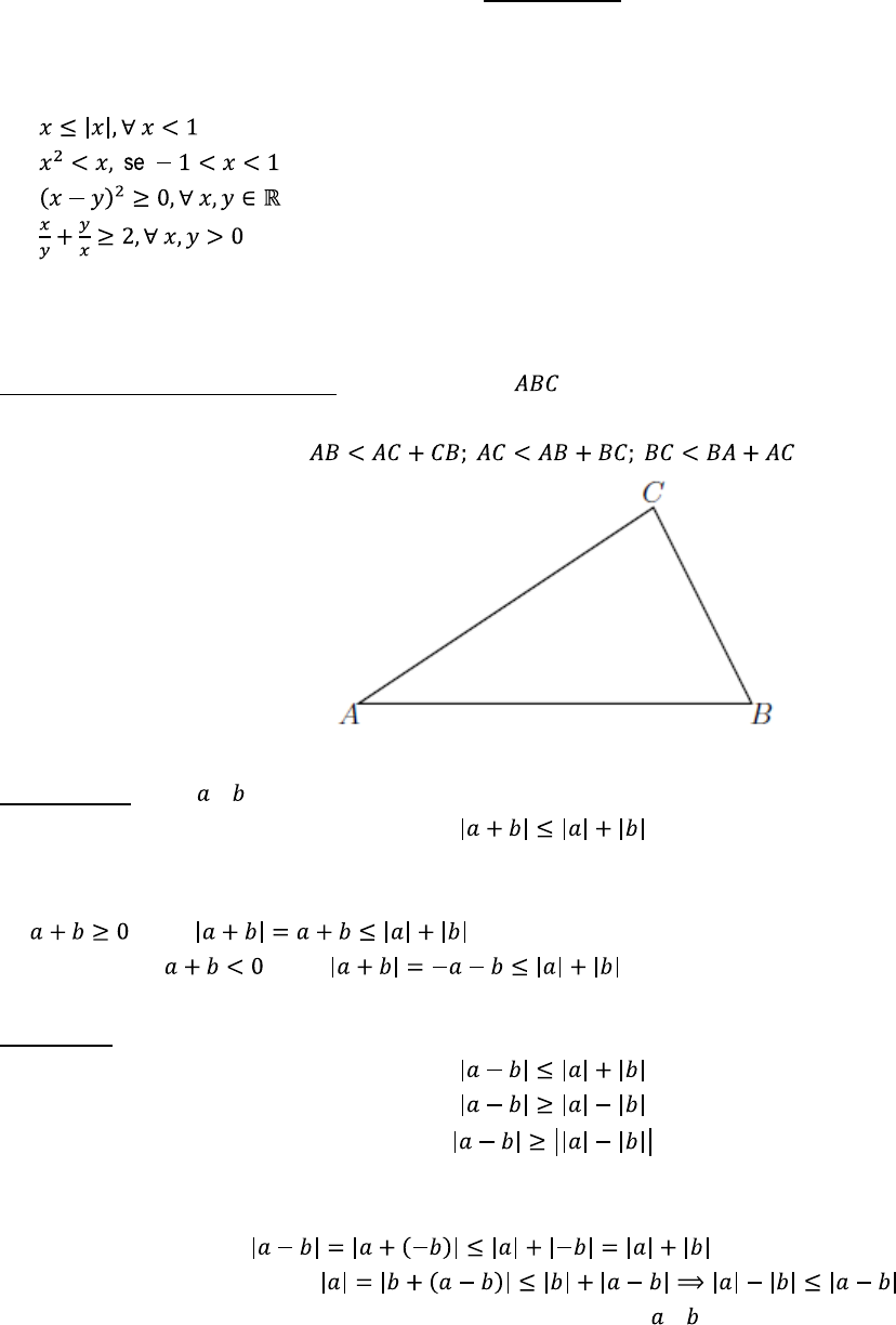 Desigualdades Uma vez que uma inequação em uma ou mais variáveis é resolvida, o resultado dá lugar a uma desigualdade que é válida para um certo conjunto de valores. Alguns exemplos simples de desigualdades são os seguintes: a) b) c) d) Desigualdade Triangular Teorema 7.1 (Desigualdade Triangular) Dado um triângulo o comprimento de um dos lados é sempre inferior à soma dos comprimentos dos outros dois lados, ou seja Proposição 7.2 Sejam e números reais quaisquer, então Demonstração Se , então . Caso contrário, se , então . Corolário 7.3 As seguintes desigualdade valem Demonstração Para a primeira escrevemos . A segunda desigualdade decorre de . A última desigualdade é conseqüência da segunda, trocando os papéis de e . Desigualdade das Médias Definição 7.6 Sejam números reais positivos. As quantidades são chamadas respectivamente, de média harmônica, média geométrica, média aritmética e média quadrática dos números . Proposição 7.7 (Desigualdade das Médias Aritméticas e Quadrática) Dados números reais positivos tem-se ou seja, . Além disso, a igualdade só vale se, e somente se, Proposição 7.8 (Desigualdade das Médias Geométricas e Aritmética) Dados números reais positivos tem-se ou seja, . Além disso, a igualdade vale se, e somente se, . Proposição 7.9 (Desigualdade das Médias Harmônicas e Geométrica) Dados números reais positivos tem-se ou seja, . Além disso, a igualdade vale se, e somente se, . Teorema 7.10 (Desigualdade das Médias) Para toda coleção de números reais positivos se verificam as seguintes desigualdades Além disso, em cada caso a igualdade ocorre se, e somente se, . Exemplo 7.11 Num triângulo retângulo a altura relativa a hipotenusa é sempre menor ou igual que a metade da hipotenusa. Além disso, a igualdade, só ocorre quando o triângulo é isósceles (ou seja, seus catetos são iguais). Usando a figura temos que a hipotenusa é dada por e usando o teorema das altura para um triângulo retângulo temos que , logo . A desigualdade entre as médias geométrica e aritmética nos dá que como queríamos. Além disso, a altura é a metade da hipotenusa se, e somente se, a igualdade entre as médias ocorre, ou seja, quando . Então, os catetos e do triângulo são iguais, sendo este isósceles. Exemplo 7.12 (Desigualdade Isoperimétrica para Triângulos) O perímetro de um triângulo de lados é a soma . Entre todos os triângulos com perímetro fixado o de maior área é o triângulo equilátero. Usando a Fórmula de Heron temos que a área de um triângulo com perímetro é dada pela expressão onde são os lados do triângulo. Usando a desigualdade temos que, Elevando ao cubo ambos lados temos: Multiplicando ambos membros por temos: Extraindo a raiz quadrada em ambos membros tem-se: Logo a maior área possível é a qual é atingida quando ou seja, quando o triângulo for equilátero. Temos então neste caso Exemplo 7.13 (Desigualdade Isoperimétrica para Paralelepípedos) Entre todos os paralelepípedos com área lateral fixada o de maior volume é o cubo (ou seja, o paralelepípedo com todos seus lados iguais). Denotando por as medidas das arestas do paralelepípedo sabemos que a área lateral do mesmo é a soma de todas as faces do paralelepípedo, ou seja, Sendo o volume do paralelepípedo e usando a desigualdade entre as médias aritmética e geométrica temos que Assim, o maior volume possível é obtido, quando , consequentemente . Desigualdade de Cauchy-Schwarz Teorema 7.14 (Desigualdade de Cauchy-Schwarz) Dados e números reais tem-se: Além disso, a igualdade só ocorre se existir um número real , tal que ou . Exemplo 7.15 Entre todos os triângulos retângulos de catetos e e hipotenusa fixada, o que tem maior soma dos catetos é o triângulo isósceles. Usando a desigualdade de Cauchy-Schwarz temos que: e este máximo é atingido quando e ou e . Em qualquer caso devemos ter . Exemplo 7.16 (Desigualdade de Minkowski) Dados , com , números reais, tem-se: Desigualdade de Jensen Definição 7.17 Uma função é dita convexa se para qualquer e para todo satisfaz Geometricamente, a definição de convexidade significa que para cada par de pontos e escolhidos no intervalo o gráfico da função encontra-se abaixo do segmento de reta secante que junta os pontos e . Exemplo7.18 A função é convexa em qualquer intervalo . Sejam e suponhamos, sem perda de generalidade, que . Então, para todo valem as desigualdades: Como temos que: Exemplo 7.19 A função é convexa em qualquer intervalo com positivo. Sejam e suponhamos, sem perda de generalidade, que . Então, para todo valem as desigualdades: Como para quaisquer números positivos e , temos: Desenvolvendo ambos membros chegamos a: mostrando isto a convexidade da função . Observemos que, usando a desigualdade entre as médias aritmética e quadrática obtemos em outras palavras Por outro lado, a desigualdade entre as médias harmônicas e aritmética nos garantem que O seguinte resultado garante que as propriedades e , satisfeitas pelas funções convexas e , são válidas para qualquer função convexa. Teorema 7.20 (Desigualdade de Jensen) Seja uma função convexa e sejam tais que . Então, para quaisquer vale Observação 7.21 Observemos que, quanto , a desigualdade de Jensen nos diz que ou seja,
