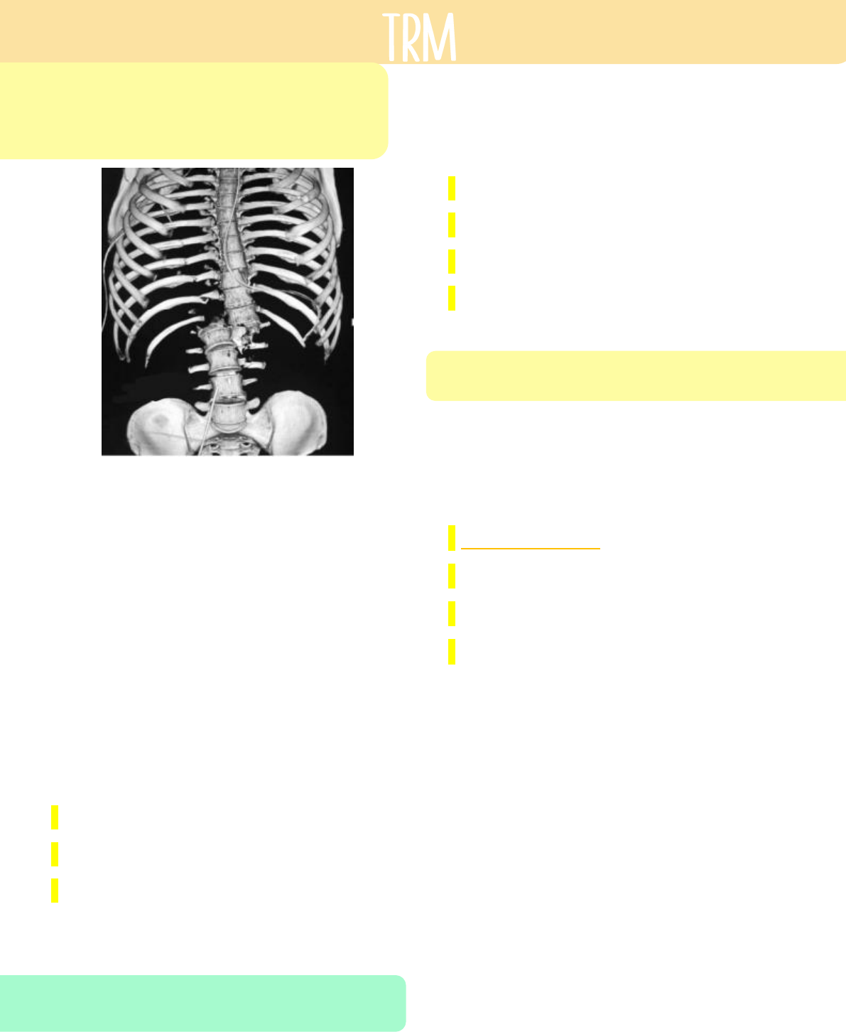 TRAUMATISMO RAQUIMEDULAR São lesões que podem acometer tanto: Raízes nervosas Estrutura óssea Então consideramos tanto a parte tecidual, como também a parte óssea da coluna vertebral. As lesões raquimedulares podem gerar: - Paraplegia - Tetraplegia - Lesão neuronal - que não retorna ao estado funcional novamente. DEFINIÇÃO Entende-se por traumatismo raquimedular - LESÃO de qualquer causa externa na COLUNA vertebral, incluindo ou NÃO medula ou raízes nervosas, em qualquer dos seus segmentos: - Cervical - Dorsal - Lombo-sacro. - Torácico INTRODUÇÃO Lesões traumáticas da coluna vertebral São os locais mais acometidos: - Cervical 55% - Torácica 15% - Transição toracolombar 15% - Lombossacra 15% No ATLS nossa principal preocupação é Não fazer lesão secundária (Evitar lesões secundárias). São manobras simples para garantir isso: Pranchar bem o paciente Fazer estabilização da coluna cervical (porque é a principal acometida). Locomoção do paciente de forma adequada. Manejo adequado Dessa forma, garantimos que a lesão que estava “incompleta” NÃO se torne completa. Devemos lembrar que no TRM - quanto mais alto a lesão, mais grave será o acidente, com maiores sequelas para o paciente Lesões principalmente de C7-T1 são lesões muito graves. Uma adequada imobilização permite postergar o exame neurológico completo diante de outras prioridades (IRA, choque). OBS: O paciente somente pode ficar na prancha por 2 horas - depois disso, devemos tirar ele da prancha, por risco de formar úlcera de pressão. COLUNA VERTEBRAL A coluna vertebral é dividida em: Coluna cervical C1-C7 Coluna torácica T1-T12 Coluna lombar L1-L5 Coluna sacral S1-S5 (fundidas). OBS: Lembrar que o processo espinhoso é posterior e o corpo da vértebra anterior - E no centro possuímos o forame vertebral, que é por onde passa a medula. OBS 2: Quanto mais alta a lesão - a chance de se possuir tetraplegia é maior. As lesões abaixo de T1 - o paciente evolui para paraplegia. A perda do tônus da bexiga e do intestino é COMUM em causas de trauma GRAVE EM QUALQUER PONTO - Com perda dos reflexos esfincterianos - É por isso que fazemos o toque retal, em caso de suspeita de lesões raquimedulares. NÍVEL DA MEDULA E A LESÃO GERADA C1 a C5: - Paralisia dos músculos utilizados na respiração e de todos os músculos dos membros superiores e inferiores. - Geralmente é fatal C5 a C6: - Pernas paralisadas: discreta capacidade de reflexão dos músculos superiores. C6 a C7: - Paralisia dos membros inferiores e parte dos punhos das mãos. - Os movimentos dos ombros e a flexão do cotovelo estão relativamente preservados. C8 a T1: - Paralisia dos membros inferiores e do tronco. - Ptose palpebral - Ausência de sudorese na fronte (síndrome de Homer). - Braços relativamente normais - Mãos paralisadas. T2 a T4: - Paralisia dos membros inferiores - Paralisia do tronco - Perda da sensibilidade abaixo da caixa torácica. T9 a T11: - Pernas paralisadas - Perda da sensibilidade abaixo da cicatriz umbilical. T12 a L1: - Paralisia - Perda da sensibilidade abaixo da virilha. L2 a L5: - Diferentes padrões de fraqueza - Diferentes padrões de entorpecimento dos MMII. S1 a S2: - Diferentes padrões de fraqueza - Diferentes padrões de entorpecimento dos MMII. S3 a S5: - Perda do controle da bexiga e dos intestinos. - Entorpecimento no períneo. OBS: A perda do controle da bexiga e intestino e comum no caso de trauma grave em qualquer ponto ao longo da coluna vertebral. EXAME DA SENSIBILIDADE Para saber em até que ponto houve a lesão - nós avaliamos os dermátomos: Dermátomo - área de pele situada nos limites de uma raiz nervosa segmentar. - Pegamos uma gase ou algodão, vai em cada região perguntando se o paciente está sentindo. Determina o nível da lesão e sua evolução. O nível da lesão é dado pelo dermátomo mais baixo com sensibilidade preservada. Isso é protocolar no ATLS - PORÉM na emergência, poucas vezes fazemos esse teste, porque o paciente que tem uma lesão muito grave - possuímos outras prioridades. PORÉM se tiver tempo e o paciente condições clínicas para que isso possa ser feito Devemos fazer (isso em SAMU). No pronto socorro é obrigatório fazer esse exame - Porque no momento de passar para o neurologista, podemos falar que a sensibilidade está preservada até tal dermátomo. PROVA: Nós devemos lembrar de: - T4 - Região intermamilar - T10 - cicatriz umbilical - T12 - Sinfese púbica EX: Se o paciente até T4 (linha intermamilar) possui sensibilidade preservada - a chance dele possuir tetraplegia é muito pequena. PROVA: Se na cena do trauma, pedimos para o paciente levantar as mãos e o mesmo NÃO consegue levantar os braços - (a inervação de deltoide é C5) - ou seja, as raízes de C5 pode estar comprometida. As raízes que fazem inervação do frênica/diafragma são altas (C5-C4) - Portanto esse paciente possui risco de parada respiratória - então esse simples ato de NÃO levantar o braço, já nos diz que o paciente precisará de uma intubação precoce. DERMATOMOS MAIS IMPORTANTES (PROVA): C5 - mm Deltóide. T4 - Mamilo T8 - Processo xifoide T10 - Cicatriz umbilical T12 - Sinfese púbica L4 - Face medial da perna S1 - Borda lateral do pé S4-S5 - Região perianal (principalmente os que estão em destaque). GRADUAÇÃO DA FORÇA MUSCULAR É importante no pronto socorro fazemos a graduação de força muscular - para auxiliar ao especialista no momento de passar o caso (Principalmente força e sensibilidade): Escore 0 Paralisia total Escore 1 Contração visível ou palpebral Escore 2 Movimentação total, desde que eliminada a força da gravidade. Escore 3 Movimentação total, contra a força da gravidade. Escore 4 Movimentação total, mas com força muscular diminuida. Escore 5 Força normal. NT NÃO testável. EXAME DA MOTRICIDADE Miotomo - cada raíz nervosa inerva mais de um músculo e a maioria dos músculos é inervada por mais de uma raiz nervo