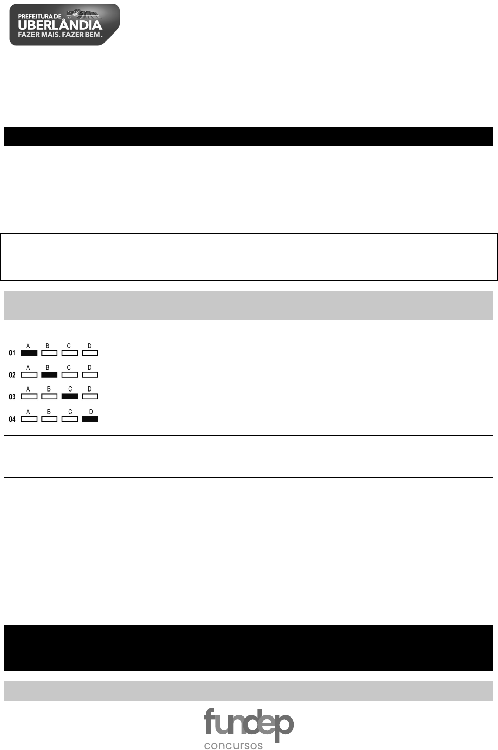 CONCURSO PARA PROVIMENTO DE CARGOS DA PREFEITURA MUNICIPAL DE UBERLÂNDIA PROFESSOR DE EDUCAÇÃO INFANTIL E 1º AO 5º ANO Código: 408 LEIA COM ATENÇÃO AS SEGUINTES INSTRUÇÕES 1. Este caderno contém as questões da Prova Objetiva e a Proposta de Redação. 2. Use a Folha de Respostas (versão do Candidato) reproduzida ao final deste caderno apenas para marcar o Gabarito. 3. Ao receber a Folha de Respostas da Prova Objetiva e da Redação: • Confira seu nome, número de inscrição e cargo. • Assine, A TINTA, no espaço próprio indicado. 4. ATENÇÃO: transcreva no espaço apropriado da sua FOLHA DE RESPOSTAS, com sua caligrafia usual, mantendo as letras maiúsculas e minúsculas, desconsiderando aspas e autoria, a seguinte frase: “Nosso caráter é o resultado da nossa conduta.” Aristóteles ATENÇÃO: FOLHA DE RESPOSTAS SEM ASSINATURA NÃO TEM VALIDADE. 5. Ao transferir as respostas para a Folha de Respostas: • use apenas caneta esferográfica azul ou preta. • preencha, sem forçar o papel, toda a área reservada à letra correspondente à resposta solicitada em cada questão. • assinale somente uma alternativa em cada questão. Sua resposta NÃO será computada se houver marcação de mais de uma alternativa, questões não assinaladas ou rasuras. NÃO DEIXE NENHUMA QUESTÃO SEM RESPOSTA. A Folha de Respostas não deve ser dobrada, amassada ou rasurada. ATENÇÃO: Período de Sigilo – Não será permitido ao candidato se ausentar em definitivo da sala de provas antes de decorridas 2 (duas) horas do início das provas. O tempo de duração das provas abrange a assinatura da Folha de Respostas, a transcrição das respostas do Caderno de Questões da Prova Objetiva (Folha de Respostas e rascunho) para o Caderno definitivo e a transcrição da Redação para o Caderno Definitivo de Redação. Os candidatos não poderão utilizar, em hipótese alguma, lapiseira, corretivos, lápis, lápis-borracha ou outro material distinto do constante em Edital. Quaisquer acessórios como óculos escuros, boné, chapéu, gorro, lenço ou similares não terão seu uso permitido. As instruções constantes no Caderno de Questões e na Folha de Resposta, bem como as orientações e instruções expedidas pela FUNDEP durante a realização das provas, complementam o Edital e deverão ser rigorosamente observadas e seguidas pelo candidato. Será proibida, durante a realização das provas, qualquer espécie de consulta ou comunicação entre os candidatos ou entre estes e pessoas estranhas, oralmente ou por escrito, assim como não será permitido o uso de livros, códigos, manuais, impressos, anotações ou quaisquer outros meios e ainda, fazer uso ou portar, mesmo que desligados, telefone celular, relógios, pagers, beep, agenda eletrônica, calculadora, walkman, notebook, palmtop, gravador, transmissor/receptor de mensagens de qualquer tipo ou qualquer outro equipamento eletrônico. Findo o horário-limite para a realização da prova, o candidato deverá entregar a Folha de Respostas da Prova Objetiva e de Redação, devidamente preenchidas e assinadas, ao Aplicador de Sala, assim como o Caderno de Provas. Os três últimos candidatos deverão permanecer na sala até que o último candidato termine sua prova, devendo todos assinar a Ata de Ocorrências da sala, atestando a idoneidade da fiscalização das provas, retirando-se da sala de prova de uma só vez. O Caderno de Questões e os gabaritos das Provas Objetivas serão divulgados no endereço eletrônico www.gestaodeconcursos.com.br, no primeiro dia útil subsequente à data de realização da prova.O Caderno de Questões e o gabarito da Prova Objetiva serão divulgados no endereço eletrônico www.gestaodeconcursos.com.br, no primeiro dia útil subsequente à data de realização da prova. DURAÇÃO MÁXIMA DA PROVA: 4 (QUATRO) HORAS ATENÇÃO Sr.(a) Candidato(a), Antes de começar a fazer a prova, confira se este caderno contém, ao todo, 40 (quarenta) questões de múltipla escolha, cada uma constituída de 4 (quatro) alternativas de respostas, assim distribuídas: 15 (quinze) questões de Língua Portuguesa, 10 (dez) questões de Legislação, 5 (cinco) questões de Conhecimentos Gerais, 10 (dez) questões de Conhecimentos Específicos e a Proposta de Redação, todas perfeitamente legíveis. Havendo algum problema, informe imediatamente ao aplicador de provas para que ele tome as providências necessárias. Caso não observe essa recomendação, não lhe caberá qualquer reclamação ou recursos posteriores. 3 LÍNGUA PORTUGUESA INSTRUÇÃO: Leia o texto a seguir para responder às questões de 1 a 6. A utilidade da ciência inútil “A arte é inútil”. Com esta frase, Chico Buarque inicia o DVD Romance. A explicação vem logo em seguida: uma música não é composta pensando-se em para que serve. Porém, através das letras e canções as pessoas que não falam português podem aprender a língua, e a melodia pode servir de fundo musical para um namoro. Recentemente, um texto publicado na Folha de S. Paulo se contrapôs à utilização de verba pública para o financiamento do telescópio James Webb. O cerne da argumentação baseou-se na relação custo / benefício para a sociedade, tendo como foco a utilidade da pesquisa básica. É a famosa questão: “para que serve isso?”. O questionamento, feito normalmente por estudantes de primeiros anos, é ouvido com frequência por professores de disciplinas básicas. A máxima irônica “Para que serve um recém-nascido?”, proferida por cientistas como Benjamin Franklin e Michael Faraday, [...] revela a miopia de quem exige que, para justificar o estudo e o investimento em pesquisa básica, alguma utilidade imediata deve estar prevista. De acordo com a lógica da serventia, a pesquisa básica de Max Planck, um dos precursores da mecânica quântica lá no início do século 20, nunca teria sido fomentada. Vários conceitos estudados lá atrás, sem nenhuma aplicaç