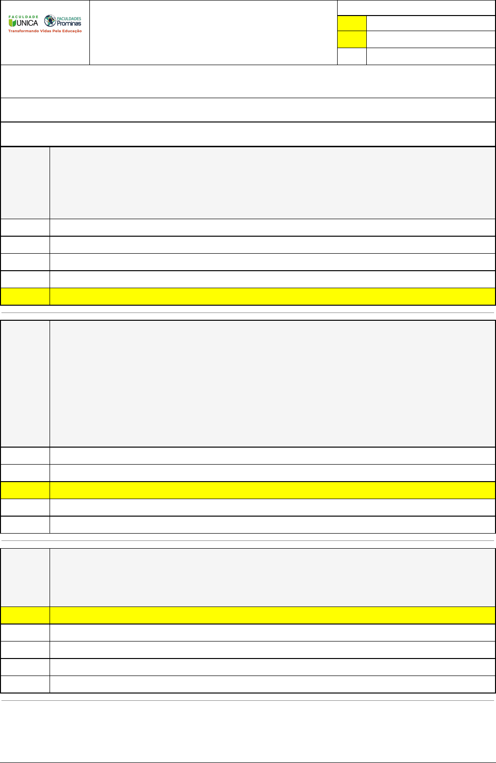Pincel Atômico - 04/10/2023 17:04:22 1/3 DIANE COELHO DE CASTRO EMIDIO Exercício Caminho do Conhecimento - Etapa 18 (18468) Atividade finalizada em 26/09/2023 18:23:56 (1173238 / 1) LEGENDA Resposta correta na questão # Resposta correta - Questão Anulada X Resposta selecionada pelo Aluno Disciplina: PRÁTICA PEDAGÓGICA INTERDISCIPLINAR: ATENDIMENTO EDUCACIONAL ESPECIALIZADO NA SALA DE RECURSOS MULTIFUNCIONAIS [781398] - Avaliação com 8 questões, com o peso total de 1,11 pontos [capítulos - 3] Turma: Segunda Graduação: Segunda Graduação 6 Meses - Licenciatura em Educação Especial - Grupo: FPD-FEV2022 - SGegu0A201222 [80295] Aluno(a): 91387791 - DIANE COELHO DE CASTRO EMIDIO - Respondeu 4 questões corretas, obtendo um total de 0,56 pontos como nota [357879_1027 39] Questão 001 Sobre o tratamento da hidrocefalia é correto o que se afirma em: I. Pode ser curada com medicamentos sem a necessidade de cirurgias. II. A grande maioria dos casos de hidrocefalia necessitam de cirurgia para aliviar a pressão intracraniana e drenar o excesso de líquido acumulado. III. Podem ser realizadas intervenções durantes a gestação. I. III. X II, III. I, II. I, II, III. [357878_1232 11] Questão 002 A respeito da paralisia cerebral, analise as afirmativas a seguir: I. Os distúrbios envolvidos na paralisia cerebral são causados por uma lesão cerebral que se dá somente na fase intrauterina. II. Segundo a localização da lesão cerebral, podem ser classificados três tipos de paralisia cerebral: piramidal (espástica), extrapiramidal (coreo-atetóide) e do tipo misto. III. Dependendo da localização dos problemas de movimento, a paralisia cerebral pode ser classificada como: monoplegia, diplegia, hemiplegia, tetraplegia ou hemiplegia dupla. Assinale se somente a afirmativa I estiver correta. se somente as afirmativas II e III estiverem corretas. X se somente as afirmativas I e II estiverem corretas. se somente a afirmativa II estiver correta. se somente a afirmativa III estiver correta. [357878_1232 17] Questão 003 Nas crianças com distrofia muscular progressiva (DMP), a fraqueza muscular aumenta progressivamente e o corpo encontra mecanismos de adaptação compensatórios para manter a função. Nesses casos o objetivo do tratamento de fisioterapia é X corrigir a postura e alongar grupos musculares retraídos. alongar a musculatura e prescrever cadeira de rodas para poupar energia. Nenhuma das alternativas. corrigir a postura e compensar com órteses. alongar a musculatura e prevenir deformidades. Pincel Atômico - 04/10/2023 17:04:22 2/3 [357878_1232 10] Questão 004 Considere as características dos tipos de paralisia cerebral descritos a seguir: I. Na paralisia cerebral do tipo atetoide, observam-se movimentos intencionais. II. Na paralisia cerebral do tipo atáxica, há déficit na aplicação programada da força muscular. III. Na paralisia cerebral do tipo atetoide aparecem atos motores com amplitude articular inadequada. IV. Na paralisia cerebral do tipo atáxica, não se observa distúrbio de percepção. V. Na paralisia cerebral do tipo distônica, adotam-se posições anormais involuntárias. Está(ão) correta(s) a(s) afirmativa(s) II, III e V, apenas. X I e II apenas. I e IV apenas. I, apenas. I e III apenas. [357878_1027 35] Questão 005 Fonte: (Academia Brasileira de neurologia, 2019) A imagem acima representa Paralisia cerebral. Lesão medular. X Distrofia muscular de Becker. Nanismo. Distrofia muscular de Duchenne. [357878_1027 34] Questão 006 Sobre a paralisia cerebral assinale a resposta correta. A paralisia cerebral é progressiva, porém não é permanente, uma vez que ocorre a má formação, os danos causados evoluem. Na paralisia cerebral podemos encontrar níveis de comprometimento leves a moderados. Os principais sintomas da paralisia cerebral é a perda auditiva, rigidez na musculatura e o crescimento do perímetro cefálico. Pincel Atômico - 04/10/2023 17:04:22 3/3 X Os agravos resultantes da paralisia cerebral podem ocorrer durante a gestação, durante o nascimento, após o nascimento ou na primeira infância Em casos de paralisia cerebral não existe a possibilidade de ocorrer danos intelectuais. [357878_1232 13] Questão 007 Doenças neurológicos que ocorrem na infância podem acarretar atraso no desempenho funcional, como a espinha bífida e paralisia cerebral. A intervenção terapêutica ocupacional precoce é primordial para um melhor prognóstico da doença. Sobre a paralisia cerebral, é CORRETO afirmar que paralisia cerebral espástica é a forma mais comum e atinge regiões mais interiores do cérebro provocando espasmos. paralisia cerebral discinética atinge o cerebelo e é caracterizada pela presenta de movimentos involuntários. paralisia cerebral extrapiramidal atinge a região do córtex motor, que é responsá¬vel pelos movimentos, provocando enrijecimento. paralisa cerebral atáxica é mais rara e acomete a região do cerebelo provocando incoordenação motora, além de tremores. X nenhuma das alternativas. [357878_1027 36] Questão 008 Sobre a hidrocefalia é correto dizer que é congênita, sendo possível sua identificação somente após o nascimento. os sintomas são os mesmos em qualquer fase da vida sem apresentar necessariamente grandes comprometimentos. ela pode acometer recém-nascidos, adolescentes, adultos e idosos. ela ocorre em função de uma lesão medular. X o principal sintoma corresponde à fraqueza dos músculos dos membros superiores e o aumento progressivo da cabeça.