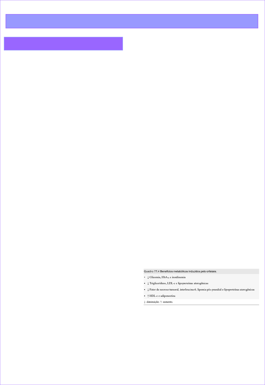 Isadora Pedreira. Módulo XXIV- Problema 02 fechamento O tratamento da obesidade requer uma abordagem multidisciplinar que obrigatoriamente requer mudanças do estilo de vida, as quais implicam reeducação alimentar e aumento da atividade física. Para muitos pacientes, a terapia medicamentosa também se faz necessária, já que facilita e/ou aumenta a adesão à dieta, propiciando uma perda ponderal maior e mais duradoura. Dois importantes conceitos sobre a obesidade são cruciais: O primeiro estabelece a obesidade como doença crônica multifatorial, não passível de “cura” por meio de terapias a curto prazo. O segundo indica que a obesidade deve ser abordada de modo multidisciplinar, envolvendo mudanças no estilo de vida e recursos farmacológicos, a exemplo do diabetes melito. As recentes diretrizes da Endocrine Society recomendam a farmacoterapia para indivíduos com IMC > 30 kg/m2 ou IMC ≥ 27 kg/m2 na presença de, pelo menos, uma condição mórbida relacionada à obesidade, como DM2, dislipidemia, hipertensão arterial sistêmica (HAS) ou apneia do obstrutiva do sono. Atualmente os únicos agentes antiobesidade disponíveis em nosso meio são a sibutramina (agente sacietógeno) e o orlistate (inibidor das lipases intestinais). Alguns psicotrópicos, como a fluoxetina, têm sido também empregados, mas trata-se de indicação off-label, com limitada eficácia. Nos últimos 4 anos, 4 novos fármacos foram aprovados pelo FDA (Food and Drug Administration): (1) lorcaserina (em 2012); (2) a combinação de naltrexona e bupropiona em uma formulação de liberação prolongada (em 2014); (3) a combinação de fentermina e topiramato em formulação de liberação prolongada (em 2014); e (4) liraglutida 3,0 mg (Saxenda®), em 2014. Sibutramina Características farmacológicas. A sibutramina é um inibidor de recaptação de serotonina e norepinefrina. Diferentemente dos anorexígenos catecolaminérgicos, trata-se mais de um agente sacietógeno, visto que seu efeito principal sobre a regulação da ingestão de alimentos parece estar relacionado muito mais com o aumento da saciação e com o prolongamento da sensação de saciedade do que com um efeito direto de supressão da fome. Dose. A dose atualmente recomendada para a sibutramina (Sibus®; Biomag® etc.; comp. 10 e 15 mg) é de 10 a 20 mg/dia. Efeitos colaterais. A sibutramina é em geral bem tolerada. Em vários estudos, os efeitos adversos (EA) mais comuns foram cefaleia, secura de boca, constipação intestinal e insônia (em 10 a 30% dos pacientes). EA menos frequentes foram aumento do apetite, tonturas, taquicardia, sudorese, náuseas, dor abdominal e hipermenorreia. Devido a seu efeito adrenérgico, a sibutramina pode determinar elevação da pressão arterial (PA) e da frequência cardíaca (FC), geralmente discreta. Contraindicações. O uso da sibutramina está contraindicado em gestantes e indivíduos com sabida hipersensibilidade ao medicamento. Segundo as recomendações da Anvisa, deve também ser evitado em pacientes com hipertensão inadequadamente controlada (PA > 140/95 mmHg), histórico de doença cardiovascular ou cerebrovascular, bem como em diabéticos tipo 2 com pelo menos um fator de risco adicional (i. e., hipertensão controlada por medicação, dislipidemia, prática atual de tabagismo ou nefropatia diabética), pessoas com idade > 65 anos, crianças e adolescentes. Orlistate O orlistate é um potente inibidor de lipases do trato gastrintestinal (TGI). Como consequência, cerca de 30% dos triglicerídeos provenientes da dieta permanecem não digeridos e não são absorvidos pelo intestino delgado, atravessando o TGI e sendo eliminados nas fezes. O orlistate não apresenta atividade sistêmica, e sua absorção intestinal é desprezível em doses de até 800 mg/dia. O orlistate não atua sobre os circuitos neuronais reguladores do apetite; contudo, ele promove uma liberação mais precoce do GLP- 1, que tem efeito incretínico e sacietógeno Posologia. A dose recomendada para o orlistate (Xenical®, cáp. 120 mg) é de 120 mg antes de cada refeição. No entanto, mesmo na posologia de 60 mg 3 vezes/dia, a medicação mostrou-se mais eficaz que o placebo. Efeitos metabólicos. Foi demonstrado que o uso de orlistate propicia melhora de vários parâmetros metabólicos, e o efeito sobre o perfil lipídico é superior ao esperado para a perda ponderal. Tal fato se deve à redução de 25 a 30% da absorção intestinal de colesterol e triglicerídeos (TG) promovida pelo orlistate. Em pacientes com DM2, o impacto sobre o controle glicêmico induzido pelo orlistate também supera o esperado para a perda ponderal alcançada. O mecanismo postulado para esse efeito envolve melhora na sensibilidade à insulina, absorção lenta e incompleta dos lipídios da dieta, redução nos níveis plasmáticos de ácidos graxos pós-prandiais, diminuição no tecido adiposo visceral e estímulo à secreção de GLP-1. Tolerabilidade. Uma série de efeitos colaterais gastrintestinais pode limitar o uso do orlistate, como dor abdominal, fezes oleosas, incontinência fecal e flatos com descarga oleosa. Quanto maior a ingestão de gorduras na alimentação, mais frequentes são esses sintomas. Orlistate também está associado a diminuição na absorção intestinal de vitaminas lipossolúveis, fármacos antiepilépticos, varfarina, ciclosporina e L-tiroxina. Contraindicações. O uso do orlistate é contraindicado em gestantes e durante a amamentação, bem como em pacientes com colestase ou síndrome de má absorção crônica. Combinação de orlistate e sibutramina. A associação de orlistate com sibutramina foi avaliada em alguns estudos. Contudo, de um modo geral, sua eficácia não foi superior à monoterapia com a sibutramina. Psicotrópicos Fluoxetina e sertralina são inibidores de recaptação de serotonina e podem favorecer a redução do peso, mas não são considerados agentes antiobesidade. Indica-se seu uso a