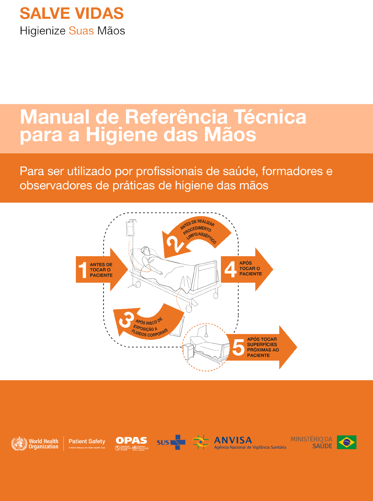 WHO Library Cataloguing-in-Publication Data Hand hygiene technical reference manual: to be used by health-care workers, trainers and observers of hand hygiene practices. 1.Hand wash - standards. 2.Hygiene. 3.Cross infection – prevention and control. 4.Patient care - standards. 5.Manuals. I.World Health Organization. II.WHO Patient Safety. ISBN 978 92 4 159860 6 (NLM classification: WB 300) © World Health Organization 2009 Todos os direitos estão reservados. As publicações da Organização Mundial da Saúde podem ser obtidas junto à WHO Press, World Health Organization, 20 Avenue Appia, 1211 Geneva 27, Switzerland (tel.: +41 22 791 3264; fax: +41 22 791 4857; e-mail: bookorders@who.int). Pedidos de permissão para reproduzir ou traduzir publicações da OMS – para venda ou distribuição não comercial – deverão ser dirigidos à WHO Press, no endereço acima mencionado (fax: +41 22 791 4806; e-mail: permissions@ who.int). As designações usadas e a apresentação do material da presente publicação não implicam em expressão de opinião de qualquer natureza por parte da Organização Mundial da Saúde a respeito da situação legal de qualquer país, território, cidade ou área, suas autoridades, ou relativas à delimitação de suas fronteiras ou limites. As linhas pontilhadas nos mapas representam as linhas fronteiriças aproximadas sobre as quais não há ainda acordo pleno. A menção às empresas específicas ou a produtos de determinados fabricantes não significa que eles são respaldados ou recomendados pela Organização Mundial da Saúde em detrimento de outros de natureza semelhante que foram, ou não, aqui mencionados. Exceto por erro ou omissão, os nomes dos produtos com direitos exclusivos são distinguidos pela letra inicial maiúscula. Todas as precauções possíveis foram tomadas pela Organização Mundial da Saúde para comprovar as informações contidas nesta publicação. Contudo, o material está sendo distribuído sem garantia de qualquer tipo, explícita ou implícita. A responsabilidade pela interpretação e uso do material é do leitor. Em nenhuma circunstância a Organização Mundial da Saúde se responsabilizará pelos danos decorrentes de seu uso. Impresso em Manual de Referência Técnica para a Higiene das Mãos Para ser utilizado por profissionais de saúde, formadores e observadores de práticas de higiene das mãos SALVE VIDAS Higienize Suas Mãos MANUAL DE REFERÊNCIA TÉCNICA PARA A HIGIENE DAS MÃOS Sumário DEFINIÇÃO DOS TERMOS 4 VISÃO GERAL 5 PARTE I – INFECÇÕES RELACIONADAS À ASSISTÊNCIA À SAÚDE E À HIGIENE DAS MÃOS 6 I.1 O que são infecções relacionadas à assistência à saúde e qual o seu impacto na segurança do paciente? 6 I.2 Qual é o papel das mãos na transmissão de micro-organismos? 6 I.3 Qual é o papel da higiene das mãos na prevenção de infecções relacionadas à assistência à saúde? 6 I.4 Como praticar a higiene das mãos? 6 I.5 Quando deve ser realizada a higiene das mãos? 7 I.5.1 O conceito de “Meus 5 momentos para a higiene das mãos” 8 PARTE II – PRÁTICA, ENSINO E OBSERVAÇÃO DA HIGIENE DAS MÃOS 9 II.1 Aplicação de “Meus 5 momentos para a higiene das mãos” na prática 9 II.1.1 O ambiente do paciente 9 II.1.2 O ambiente assistencial 10 II.1.3 Contato com o paciente e superfícies próximas 10 II.2 Os profissionais de saúde comprometidos com a higiene das mãos 10 II.3 Atividades assistenciais e indicações 10 II.4 Indicações para a higiene das mãos e ações de higiene das mãos 10 II.5 Uma melhor compreensão sobre a implementação dos cinco momentos 11 II.5.1 Indicação (momento) 1: Antes de tocar o paciente 11 II.5.2 Indicação (momento) 2: Antes de realizar procedimento limpo/asséptico (em local crítico com risco de infecção para o paciente) 12 II.5.3 Indicação (momento) 3: Após o risco de exposição a fluidos corporais 13 II.5.4 Indicação (momento) 4: Após tocar o paciente 13 II.5.5 Indicação (momento) 5: Após tocar superfícies próximas ao paciente 14 II.5.6 Compreender os cinco momentos na sequência de cuidados 15 II.6 Indicações para a higiene das mãos quando as luvas são necessárias 16 SUMÁRIO PARTE III – OBSERVAÇÃO DAS PRÁTICAS DE HIGIENE DAS MÃOS 17 III.1 O objetivo da observação 17 III.2 A observação direta das práticas de higiene das mãos 17 III.3 As regras da observação 17 III.4 O observador e seu papel 17 III.5 As oportunidades de higiene das mãos 18 III.6 A ação de higiene das mãos vista pelo observador 18 III.7 Relatórios de adesão à higiene das mãos 19 III.8 Metodologia da observação 19 III.8.1 O formulário de observação 21 III.8.2 O formulário de cálculo básico 23 PARTE IV – OUTROS ASPECTOS DA HIGIENE DAS MÃOS 26 IV.1 Segurança das mãos 26 IV.2 Cuidados com a pele das mãos 26 PARTE V – LISTA DE BIBLIOGRAFIA CONSULTADA 27 APÊNDICE – FORMULÁRIOS DE OBSERVAÇÃO E CÁLCULO 28 4 MANUAL DE REFERÊNCIA TÉCNICA PARA A HIGIENE DAS MÃOS DEFINIÇÃO DOS TERMOS Preparação alcoólica para a higiene das mãos Preparação alcoólica (líquida, gel ou espuma) destinada à aplicação nas mãos que tem o objetivo de inativar micro-organismos e/ou temporariamente suprimir sua multiplicação. Essas preparações podem conter um ou mais tipos de álcool, outros elementos ativos com excipientes, e umectantes. Procedimento limpo/asséptico Qualquer atividade de cuidado que implique contato direto ou indireto com a membrana mucosa, pele não intacta ou dispositivo para a saúde invasivo. Nenhum micro-organismo deve ser transmitido durante esse procedimento. Fluidos corporais Quaisquer substâncias/fluidos do corpo: – sangue; – excretados: urina, fezes, vômito, mecônio, lóquios; – secretados: mucosa, saliva, esperma, leite e colostro, lágrimas, vernix caseoso (até o primeiro banho); – transudados: fluido pleural, fluido cerebrospinal, fluido de ascites, fluido sinovial, fluido amniótic