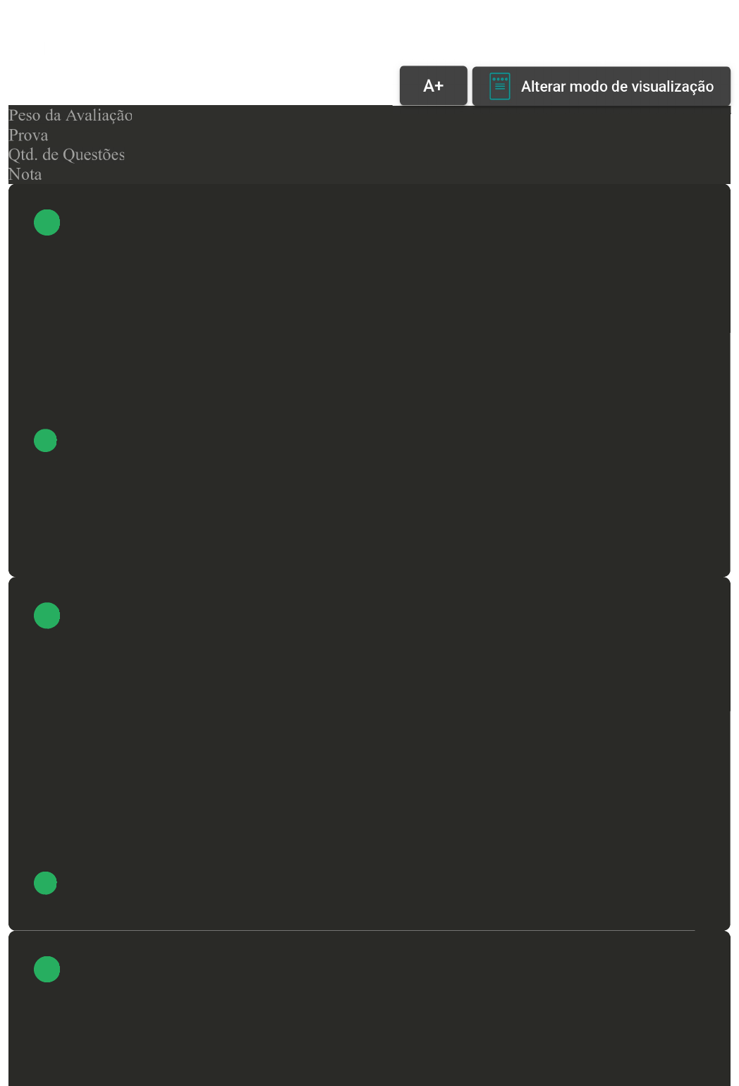 Prova Impressa GABARITO | Avaliação da Disciplina (Cod.:694391) 10,00 72386564 20 10,00 Leia o exemplo a seguir: A nova administração da transportadora Fácil e Rápido dedicou um ano inteiro ao aperfeiçoamento dos serviços prestados. Dentre eles, treinou seus motoristas, renovou a frota, instalou um novo sistema de atendimento ao cliente e ainda desenvolveu programas de relacionamento com a vizinhança, plantando árvores e construindo uma praça. No início das operações, no entanto, houve um período de fortes chuvas na região, impossibilitando a empresa de realizar suas atividades da maneira esperada por seus clientes. Sobre a variável que afetou a transportadora Fácil e Rápido, assinale a alternativa CORRETA: A Microambiente. B Macroambiente. C Mesoambiente. D Ambiente de tarefa. A direção da NTDS dedicou muito esforço para fazer a empresa crescer. As gerências fizeram um amplo levantamento dos pontos fracos da empresa e foram definidas estratégias de ação para cada departamento. Alguns gerentes, contudo, continuavam preocupados com as ameaças do macroambiente. Sobre um exemplo de variável do macroambiente, assinale a alternativa CORRETA: A Funcionários. B Canal. C Clientes. D Tecnologia. Sabe-se que as alianças estratégicas são muito comuns no meio corporativo, justamente para que seja possível se manter com vantagens em um ambiente tão competitivo. Uma empresa de serviços de internet está adotando uma estratégia de diversificação corporativa e adquiriu uma empresa do segmento de e-books. 1 2 3 Avaliação da Disciplina https://ava2.uniasselvi.com.br/subject/grades-and-tests/answer-book/... 1 of 9 07/10/2023, 19:42 FONTE: BARNEY, J. B.; HESTERLY, W. S. Administração Estratégica e Vantagem Competitiva. 5. ed. São Paulo: Pearson Education do Brasil, 2017. Sobre o tipo de aliança estratégica exposto, assinale a alternativa CORRETA: A Joint-ventur. B Aquisição. C Franquia. D Holding. Observe a situação a seguir: A montadora de luxo alemã BMW tem avaliado formar uma aliança estratégica com a Great Wall Motors na China, para poder se concentrar no desenvolvimento de veículos elétricos. Um empreendimento com a Great Wall seria o segundo da BMW no maior mercado de automóveis do mundo, em que as montadoras estrangeiras precisam fazer parcerias estratégicas, com a criação de nova empresa de composição acionária partilhada com empresas locais para atuar no país. FONTE: EXAME. BMW estuda possível join venture para carros elétricos na China. Disponível em: https://exame.com/negocios/bmw-estuda-possivel-joint-venture-para-carros-eletricos-na- china/. Acesso em: 01 fev. 2021. Sobre a estratégia internacional exposta, assinale a alternativa CORRETA: A Joint-venture. B Fusão vertical. C Holding. D Aliança sem participação acionária. 4 Avaliação da Disciplina https://ava2.uniasselvi.com.br/subject/grades-and-tests/answer-book/... 2 of 9 07/10/2023, 19:42 A organização TudoPraVocê, a TPV, compra tecidos em grandes quantidades de produtores e distribuidores. O gestor da TPV revende os mesmos produtos para outras empresas, ateliês e afins. Sobre a classificação da TPV, diante das características apresentadas, assinale a alternativa CORRETA: A Atacadista B Especialista. C Varejista. D Atravessador. Observe exemplo a seguir: A Fundação Volkswagen foi criada com a finalidade de “promover e realizar ações que contribuam para a melhoria da qualidade da educação pública e que fomentem o desenvolvimento social de comunidades de baixa renda do Brasil”. FONTE: VOLKSWAGEN DO BRASIL. Fundação Grupo Volkswagen. Disponível em: < https://gife.org.br/associados/fundacao-volkswagen/>. Acesso em: 01 fev. 2021. Sobre o conceito exposto, assinale a alternativa CORRETA: A Visão. B Valores. C Metas. D Missão. No mês de maio de 2020, após a quinta noite de protestos pela morte por asfixia do segurança afrodescendente George Floyd, em Minneapolis, nos Estados Unidos, seguindo a recomendação federal, cerca de 25 cidades americanas em 16 estados determinaram toques de recolher por causa dos protestos. Os negócios foram obrigados a fechar as portas e muitos ainda calculam as perdas com os protestos. FONTE: O GLOBO. Protestos pelo assassinato de George Floyd chega ao quinto dia consecutivo. Disponível em: https://glo.bo/3r5RUHS. Acesso em: 02 dez. 2020. Enunciado Sobre a dimensão que se relaciona a decisão pelo toque de recolher que impacta os negócios, considerando o radar ambiental, assinale a alternativa CORRETA: A Decisões gerenciais. 5 6 7 Avaliação da Disciplina https://ava2.uniasselvi.com.br/subject/grades-and-tests/answer-book/... 3 of 9 07/10/2023, 19:42 B Tendências culturais. C Condições políticas. D Tendências demográficas. O estudo da vantagem competitiva é complexo, no entanto, pode auxiliar muito no crescimento de uma empresa. A vantagem competitiva traz à tona a ideia de a empresa buscar estar sempre à frente de seus concorrentes, isto é, apresentando produtos inovadores e diferenciados, atendendo às necessidades e desejos dos seus clientes, que se alteram com o passar do tempo. Para tanto, é essencial que os gestores se preocupem em entender seus mercados consumidores e o ambiente em que atuam. Observe a seguinte situação: uma empresa do setor de eletroeletrônicos alcançou em seu setor de atuação uma condição favorável, uma vez que sua vantagem competitiva e altas margens atraíram concorrentes para o setor. Os concorrentes não conseguiram copiar sua forma de atuação e saíram do negócio. FONTE: LACOMBE, F.; HEILBORN, G. Administração: princípios e tendências. 3 ed. São Paulo: Saraiva, 2015. Sobre a condição exposta da empresa, assinale a alternativa CORRETA: A Vantagem sustentável. B Paridade competitiva. C Desvantagem sustentável. D Vantagem temporária. Leia o excerto a seguir: No livro “Estratégia do Oceano Azul”, o autor descreve situações atuais, em que a maior part