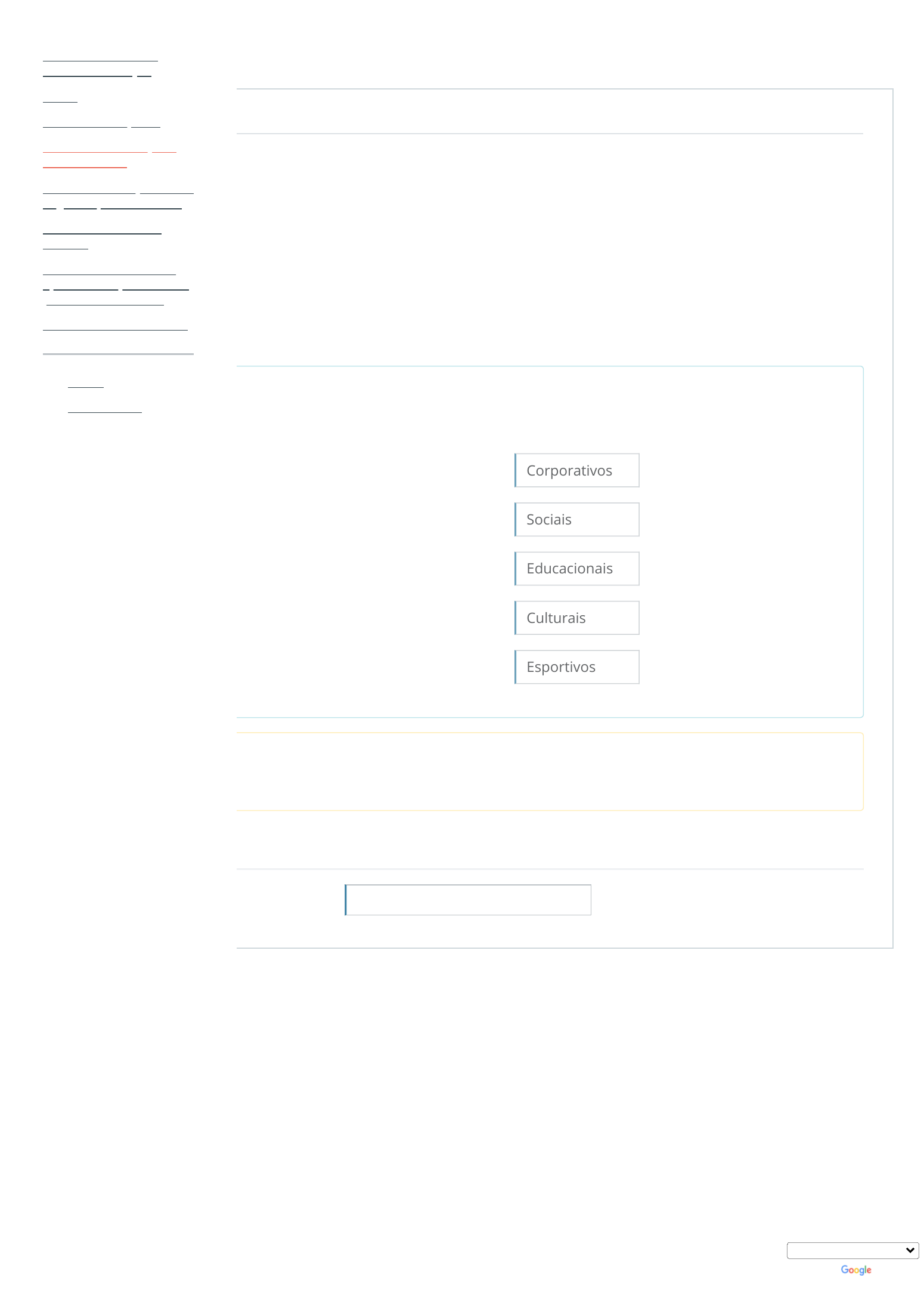 Painel / Meus cursos / Eventos Virtuais: da Gestão à Execução / Módulo 1: Introdução a eventos online / Exercício avaliativo - Módulo 1 Questão 1 Correto Atingiu 1,00 de 1,00 Iniciado em domingo, 8 out 2023, 09:33 Estado Finalizada Concluída em domingo, 8 out 2023, 09:34 Tempo empregado 1 minuto 17 segundos Notas 1,00/1,00 Avaliar 10,00 de um máximo de 10,00(100%) Os eventos podem ser agrupados de acordo com características em comum. Assim, diversos tipos de eventos podem ser classificados sob o mesmo denominador de classificação. Para cada tipo de evento listado abaixo, selecione a classificação que melhor se enquadra. Congresso empresarial Jantar Curso Atração musical Olimpíadas Corporativos Sociais Educacionais Culturais Esportivos Sua resposta está correta. São exemplos de evento social os jantares; de eventos corporativos os congressos; de eventos esportivos as olimpíadas; de eventos educacionais os cursos; e de eventos culturais as atrações musicais. ◄ Conteúdo Módulo 1 Seguir para... Conteúdo Módulo 2 ► Eventos Virtuais: da Gestão à Execução Notas Área do Participante Módulo 1: Introdução a eventos online Módulo 2: Planejamento e Organização de Eventos Módulo 3: Gestão de eventos Módulo 4: Ferramentas, aplicativos e plataformas para eventos virtuais Módulo de Encerramento Painel Meus cursos Selecione o idioma Powered by Tradutor https://mooc38.escolavirtual.gov.br/my/ https://mooc38.escolavirtual.gov.br/course/view.php?id=14229 https://mooc38.escolavirtual.gov.br/course/view.php?id=14229#section-1 https://mooc38.escolavirtual.gov.br/mod/quiz/view.php?id=267659 https://mooc38.escolavirtual.gov.br/mod/url/view.php?id=267658&forceview=1 https://mooc38.escolavirtual.gov.br/mod/url/view.php?id=267660&forceview=1 https://mooc38.escolavirtual.gov.br/course/view.php?id=14229 https://mooc38.escolavirtual.gov.br/grade/report/index.php?id=14229 https://mooc38.escolavirtual.gov.br/course/view.php?id=14229#section-0 https://mooc38.escolavirtual.gov.br/course/view.php?id=14229#section-1 https://mooc38.escolavirtual.gov.br/course/view.php?id=14229#section-2 https://mooc38.escolavirtual.gov.br/course/view.php?id=14229#section-3 https://mooc38.escolavirtual.gov.br/course/view.php?id=14229#section-4 https://mooc38.escolavirtual.gov.br/course/view.php?id=14229#section-5 https://mooc38.escolavirtual.gov.br/my/ https://www.escolavirtual.gov.br/aluno/cursos/andamento https://translate.google.com/ https://translate.google.com/ https://translate.google.com/ Eventos Virtuais: da Gestão à Execução Notas Área do Participante Módulo 1: Introdução a eventos online Módulo 2: Planejamento e Organização de Eventos Módulo 3: Gestão de eventos Módulo 4: Ferramentas, aplicativos e plataformas para eventos virtuais Módulo de Encerramento Painel Meus cursos Powered by Tradutor https://mooc38.escolavirtual.gov.br/course/view.php?id=14229 https://mooc38.escolavirtual.gov.br/grade/report/index.php?id=14229 https://mooc38.escolavirtual.gov.br/course/view.php?id=14229#section-0 https://mooc38.escolavirtual.gov.br/course/view.php?id=14229#section-1 https://mooc38.escolavirtual.gov.br/course/view.php?id=14229#section-2 https://mooc38.escolavirtual.gov.br/course/view.php?id=14229#section-3 https://mooc38.escolavirtual.gov.br/course/view.php?id=14229#section-4 https://mooc38.escolavirtual.gov.br/course/view.php?id=14229#section-5 https://mooc38.escolavirtual.gov.br/my/ https://www.escolavirtual.gov.br/aluno/cursos/andamento https://translate.google.com/ https://translate.google.com/ https://translate.google.com/
