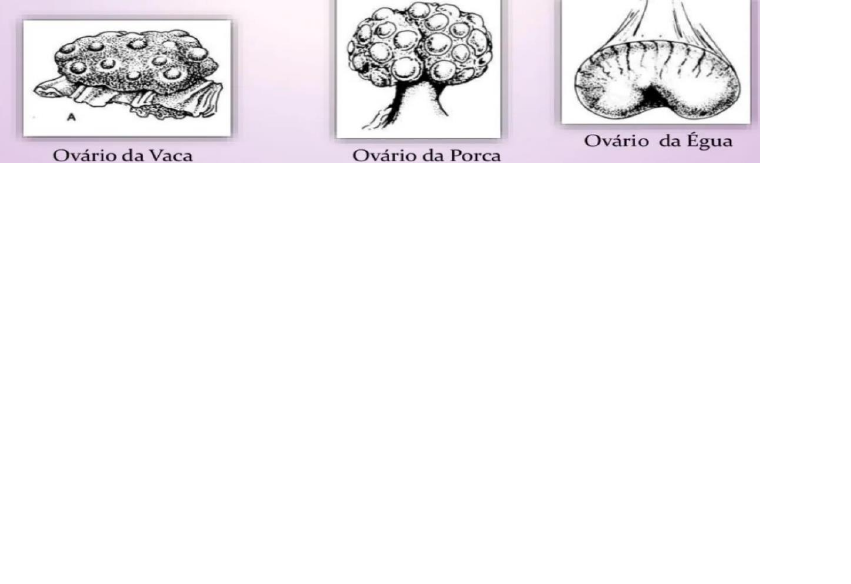RESUMO – OBSTETRICIA ANATOMIA FEMEA: Constitui-se de 2 ovarios, 2 tubas uterinas, útero, vulva, vestíbulo, vagina, genitália externa, glândulas mamarias Ovários: Funcão – 1 - ovogênese – produção de óvulos (produzidos nos folículos), ao nascimento ou logo após, os ovários já estão formados com todos os ovócitos (alguns ainda irão ser maturados). Produção hormonal: ESTROGENO – produzidos pelos folículos, causa alteração física e comportamental. PROGESTERONA – produzido pelo corpo luteo, prepara o útero para implantação do ovulo, mantem a estação. Localizado na dorsal da cavidade abdominal, caudal aos rins. Tem como seus formatos: cadela e vaca: amêndoas / porca: cacho de uva / égua: grão de feijão Ciclo mestrual: humanos, macacos / Ciclo estral: cães, gatos, éguas, vacas... Ovogenese: produção de gametas – ovócitos Hormonios: Progesterona e estrógeno – regulam a maturação do ovócito, ajudam a manter a função reprodutiva, características sexuais secundarias, manuntenção e nutrição do organismo, parto Corpo luteo: O corpo lúteo é uma glândula endócrina transitória formada nos ovários da vaca, mais frequentemente no ovário direito, logo após a ovulação. Assim, quando é formado em ciclo estral com ocorrência de fecundação, ele se mantém até o final da gestação. Por outro lado, caso não aconteça a gestação, ele é chamado de Corpo Lúteo Cíclico e permanece por pouco tempo, com duração de aproximadamente 12 a 14 dias. Produz progesterona que controla a duração do ciclo estral, a ovulação e prepara o útero para a gestação. Tubas uterinas – oviduto: tubos contorcidos que se estendem dos ovários ao útero, recebe e conduz o ovulo em direção ao CORNO UTERINO – local que ocorre a fertilização Infundibulo: captura o ovulo através das fimbrias Ampola: porção dilatada onde ocorre a fecundação Istmo: porção de transição para o útero Peristaltimo: 1º ação estrogênica (ovulação) / 2º ação progesteronica (fecundação) Útero: Nesse órgão ocorre desenvolvimento pre natal do embrião, forma parte da placenta, é oco. Cornos: par, onde ocorre desenvolvimento do embrião Corpo: pequeno, intermediário, liga os cornos a cérvice (Quanto maior o corpo uterino – mais numeroso a quantidade de filhotes) Cervix: porção final, se comunica a vagina Tipos de útero: VAGINA: canal elástico, muscular, interposto entre útero e vestíbulo, fica dentro da pelve, revestido por glândulas mucosas VESTIBULO VAGINAL: localizado entre vulva e vagina, com secreção mucosa que lubrifica o coito e na hora do parto. Nas vacas tem duas aberturas adicionais das glândulas vestibulares principais em cada lado do orifício uretral VULVA: genitália externa Especies e seus filhotes: quantidade = unidade de filhotes MULTIPARAS, proliferas, politocicas: proporção dos cornos é maior que do copo uterino – porcas, gatas, cães UNIPARAS, motocicas: proporção dos cornos é igual do corpo uterino – égua, vaca, humanos Especies e seus partos: quantidade = de partos Pluriparas: vários partos ------- Nuliparas: nunca pariu CERVIX: é uma barreira de seleção para espermatozoide durante o cio, produz muco e tampão mucosa, forma um esfíncter muscular, quando está fechado está normal; quando esta aberto está no estro (cio) e o parto CICLO ESTRAL DAS FEMEAS DOMESTICAS Ciclo estral: intervalo entre dois estros (fase reprodutiva) sucessivos sem gestação Anestro: é o período de completa inatividade sexual, durante o qual não há sinais de manifestação de cio. Ele é observado durante o período que antecede a puberdade das fêmeas, na gestação e durante o pós-parto. Relacionado a gestação ou patologias, no final do anestro ocorre aumento de estrógeno. Anestro fisiológico: cadela. Anestro gestacional x patológico: demais espécies No ciclo estral (cio) o sangue vem da ruptura dos vasos, hiperplasia gerada pelo estrógeno Fases: PROESTRO – aumento nos níveis de estrógeno, causando hiperplasia (aumento) vulvar e mamaria, agitação, femea não receptiva ainda, porem há atração. ESTRO: diminuição dos níveis de estrógeno e FSH, aumento da progesterona, liberada pelo corpo luteo, placenta e córtex adrenal. Diminui vulva e mama, calmas e receptivas. METAESTRO: Rapido, o folículo rompe e libera oocito para o útero e ocorre fecundação. DIESTRO: Maior secreção da progesterona (hormônio que mantem a gestação) liberada pelo corpo luteo, placenta e córtex adrenal. Ciclo clássico: anestro, proestro, diestro, estro, interestro (gatas), metaestro Gata: ovulação induzida pela copula – proestro, estro, interestro, metaestro POLIESTICAS ESTACIONAIS OU SAZONAIS Éguas: cobertura na primavera/verão. Parto um ano depois, primavera/verão. Gata: cobertura e parto na primavera/verão – preferencia pela noite, fotoperiocidade negativa Ovelhas: cobertura no outono/inverto. Parto primavera/verão – 5 meses de gestação TODOS VÃO PARIR EM PERIODOS DE MAIOR DISPONIBILIDADE ALIMENTAR secretada pela gladula pineal INFLUENCIA DO CORPO LUTEO NA GESTAÇÃO Produção de progesterona Espécies CL independente: produção de p4 (progesterona) da placenta – ovino e equino As demais espécies são independentes HORMONIOS ESPECIFICOS DA GESTAÇÃO ECG – gonodotrafina coriônica equina, que é secretada pelas capsulas endometriais e forma-se durante a gestação. Aumenta a tolerância imunológica materna-fetal, ecg fisiológico – funcional vai do 40° ao 120° dia Equivalência ao LH – liga-se aos mesmos receptores, sincroniza o cio Comportamentos reprodutivos - Reflexo de flehmen: O reflexo de flehmen refere-se à elevação da cabeça e ondulação do lábio superior de animais, permitindo aos machos identificar as oportunidades de acasalamento por intermédio do seu órgão; presença de macho; mudanças anatômicas e secreção; rth tolerância ao homem(porca). GESTAÇÃO E PLACENTA Gla