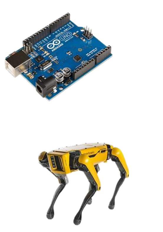 APLICAÇÕES DE UM MICROCONTROLADOR Os microcontroladores têm a capacidade de automatizar diversos processos na área da eletrônica. Como essa área é presente em praticamente tudo que envolve tecnologia, suas aplicações são praticamente infinitas. Por exemplo, na área de automação residencial podemos citar desde o simples fato de recolher as persianas via controle remoto até sistemas de monitoramento e checagem de níveis de reservatórios. Outras aplicações bastante comuns são: em roteadores, monitoramento de câmeras, relógios digitais, sensores térmicos, eletrodomésticos, tecnologia NFC, motores e até mesmo robôs! Arduino UNO com o Microcontrolador ATmega328 Cão Robô