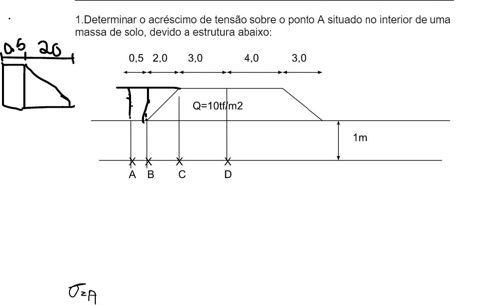 PROVA 2 MEC SOLOS A direita = A/z= 3/1 =3 (saia) B/z=9,5/1=9,5 (crista) IO É O,5 POIS B/Z É MAIOR QUE 3 A esquerda= a/z= 2/1=2 b/z=0,5/1=0,5 IO=0,435 =(0,5-0,435)X10=0,65 tçm2 FLUXO Existirá fluxo entre dois pontos situados dentro de um lençol freático elástico, porem em alturas diferentes? Não, pois só existirá fluxo quando a carga total entre os dois pontos for diferentes Carga de elevação 1+ carga de preção 1= carga de elevação 2 + carga de pressão 2 AREIA MOVEDIÇA O QUE É? Areia movediça nada mais é do que areia comum submetida a um fluxo ascendente de água, vinda de lençóis freáticos. O fluxo faz o solo não ser duro o suficiente para sustentar o peso de um corpo nem líquido uma areia através da qual ocorre um fluxo ascendente de água sob um gradiente hidráulico igual ou maior que ic COMO ACONTECE? A areia movediça é um fenômeno causado pelo fluxo ascendente de água, que faz com que o solo arenoso perca a sua resistência ao cisalhamento, e assim adquira características de um líquido. CONSEQUENCIA? Como consequência do fenômeno de areia movediça pode ocorrer a ruptura de uma cortina de estacas prancha usadas para contenção de água. PIPING O QUE É? É A ruptura pelo entubamento e ocorre por erosão regressiva de jusante para montante, formando um tubo, com carreamento de partículas de solo, devido ao fluxo de água descontrolado de montante para jusante. dessa forma, ocorre deslocamento de partículas do barramento, que desestabiliza o equilíbrio de forças na matriz do solo e o respectivo estado de tensões no maciço por onde ocorre este fluxo. O fenômeno é progressivo até ter o colapso da estrutura SPT Quais os elementos mínimos que devem constar em um relatório de sondagem de simples reconhecimento? Deve conter informações pertinentes e o perfil de cada sondagem. O boletim deve apresentar o croqui do terreno e a localização dos furos deve conter também o perfil de cada furo e perfil longitudinal ao longo do alinhamento dos furos. Nos perfis devem conter as cotas, indicações de nível d’agua durante e após 24h após a sondagem, também deve conter a indicação do NPST. Defina SPT. Quais as principais limitações na obtenção deste parâmetro? Qual a sua finalidade? O que significa as frações P/20 e 30/25, o que você espera destes solos? A sondagem a percussão é um método para reconhecimento de solos em terreno onde pretende-se realizar uma construção, a sondagem serve para obter informações sobre a compacidade e consistência das camadas do solo e tambem a carga que poderá suportada. As principais limitações do SPT são: A impossibilidade de aplicar em locais de rochas ou alterações rochosas, ele tambem não avalia solos moles e depende da interpretação humana com isso fica passível a erros. As frações representam o NSPT que é o índice de resistência de penetração. A fração p/20 mostra que apenas com o peso do martelo penetrou 20 cm, mostrando ser um solo fofo e muito mole Já a fração 30/25 mostra que com 30 golpes penetrou 25 cm, ou seja, espera-se um solo compacto e riso METODOS DIRETOS: METODO SEMIDIRETO Medir propriedades especificas do solo, não há coleta de amostra IN-SITU CONE CPT Obtenção de resistência de ponta e de lateral para fundações profundas, dimensionamento de estacas PRESSIOMETRO: Caracteristicas de deformidade e resistência dos solos, coeficiente de empuxo para dimensionamento de túneis PALHETA (VANE TEST) Medida do torque necessário para girar uma cruzeta metálica cravada no solo em dada profundidade Ensaio para determinação da resistência não drenada de solos argilosos Defina RQD. De que tipo de sondagem pode ser obtido? Qual sua finalidade? RQD é o índice de qualidade do maciço rochoso,é a razão do comprimento de fragmentos recuperados maiores que 10 cm pelo comprimento toral do barrilete. Pode ser obtido da sondagem rotativa, que utiliza conjunto motomecanizado para obter amostras de materiais rochosos , é utilizada quando a sondagens SPT atinge o estrato rochoso ou solo impenetrável á percussão, a finalidade é obter os testemunhos de sondagem