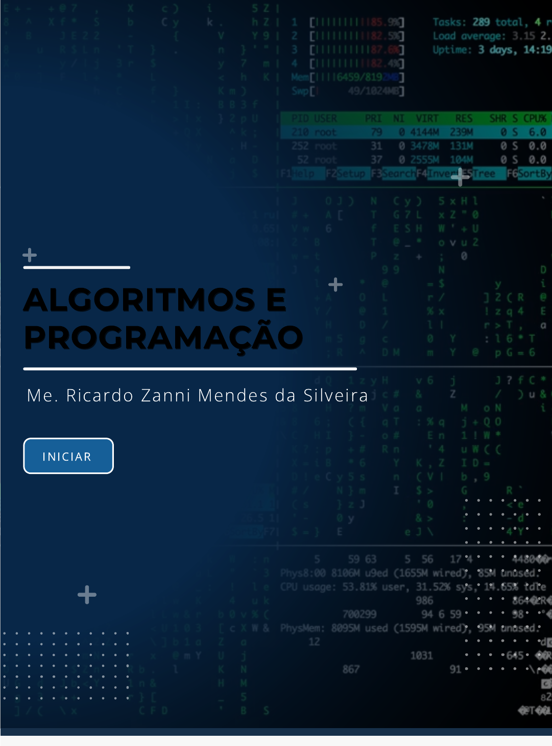 ALGORITMOS EALGORITMOS E PROGRAMAÇÃOPROGRAMAÇÃO Me. Ricardo Zanni Mendes da Si lveira IN IC IAR introdução Introdução Esta unidade abordará as estruturas básicas de controle do �uxo de execução de um algoritmo e a construção de algoritmos por meio de etapas lógicas. São apresentadas as estruturas sequencial, de seleção e repetição com teste no início. Dentro das estruturas de seleção, serão exibidas as simples, a composta, encadeada e de múltipla escolha para selecionar ações. Eventualmente, é preciso estabelecer condições para que o algoritmo se encerre ou percorra ou outro caminho. Sendo assim, as condições simples, como verdadeiro ou falso, serão empregadas em alguns trechos ou no algoritmo completo, com o objetivo de satisfazer essas condições. Pela estrutura de repetição “enquanto”, será apresentado o algoritmo para executar instruções repetidas. No desenvolvimento de algoritmos, são utilizados os conceitos de bloco lógico, entrada e saída de dados, variáveis, constantes, atribuições, expressões lógicas, relacionais e aritméticas, e também comandos que realizam a tradução de todos esses conceitos, de maneira que representem um conjunto de ações (FORBELLONE, 2005). Segundo Forbellone (2005), esse conjunto de ações somente será viável se existir uma perfeita relação lógica essencial para a forma com que essas ações são executadas, pela maneira que é conduzido o �uxo de execução do algoritmo. Assim sendo, os algoritmos que serão desenvolvidos e empregados nas resoluções dos problemas devem ser criados por meio das estruturas básicas de controle de �uxo de execução: sequenciação, seleção e repetição. Estrutura Sequencial Em algoritmos, uma estrutura sequencial corresponde ao fato de que o conjunto de ações primitivas será executado em uma sequência linear, de cima para baixo e da esquerda para a direita, ou seja, do mesmo modo como Estrutura de Controle:Estrutura de Controle: SEQUENCIAL e de SeleçãoSEQUENCIAL e de Seleção foram escritas. As ações devem ser seguidas de um ponto e vírgula (;), que tem por objetivo separar uma ação da outra e auxiliar na organização sequencial das ações. Uma vez que um ponto e vírgula é encontrado, deve-se executar o próximo comando da sequência (FORBELLONE, 2005). Consoante Forbellone (2005), um modelo básico de algoritmo deve identi�car os blocos, utilizando início e �m, e dentro do bloco devem ser iniciadas a declaração das variáveis e, depois, o corpo do algoritmo. Observe o modelo geral de um algoritmo sequencial, a seguir: Figura 2.1 - Modelo geral de um algoritmo sequencial Fonte: Elaborada pelo autor. flit Estrutura de Seleção A estrutura de seleção permite a escolha de um grupo de ações, ou blocos, a serem executados quando determinadas condições, descritas por expressões lógicas ou relacionais, são ou não satisfeitas (FORBELLONE, 2005). Segundo Forbellone (2005), quando a estrutura é encadeada, ela pode ser homogênea ou heterogênea. Uma estrutura encadeada é caracterizada quando são agrupadas várias seleções. Essa estrutura geralmente ocorre quando uma determinada ação ou bloco deve ser executado caso um grande conjunto de possibilidades ou combinações for satisfeito. Seleção Homogênea A seleção homogênea utiliza a construção de diversas estruturas de seleção encadeadas, que precisam seguir um determinado padrão lógico (FORBELLONE, 2005). Na seleção homogênea, um comando será executado apenas quando forem satisfeitas algumas condições, e a construção do algoritmo deve seguir um padrão. Posteriormente, a cada “então”, existe um reflita Re�ita “Depois de de�nir as variáveis de entrada e de saída é recomendável realizar uma série de perguntas do tipo ‘o quê?’ com o objetivo de descobrir, de uma forma clara e objetiva, alguns aspectos relevantes que se deve levar em conta na criação do algoritmo e nas ações envolvidas no processamento necessário para a obtenção das respostas desejadas”. Fonte: Forbellone (2005, p. 31). outro “se”, e não existem “senões”. Isso de�ne uma estrutura encadeada homogênea (FORBELLONE, 2005). Observe a �gura, a seguir: O comando somente é executado quando todas as condições forem simultaneamente verdadeiras (FORBELLONE, 2005): Agora que compreendemos a seleção homogênea e como ela opera em um pseudocódigo, vamos entender como uma seleção heterogênea atua. Figura 2.2 - Estrutura encadeada homogênea Fonte: Elaborada pelo autor. Figura 2.3 - Condições simultaneamente verdadeiras Fonte: Elaborada pelo autor. Seleção Heterogênea Quando não é possível identi�car um padrão lógico de construção de uma estrutura de seleção, esta é caracterizada como uma estrutura de seleção heterogênea (FORBELLONE, 2005). Conforme Forbellone (2005), uma estrutura de seleção heterogênea pode ser descrita a seguir: Como demonstrado no código acima, o conceito da seleção heterogênea aplicado na prática, abordaremos, agora, a seleção em múltipla escolha. Múltipla Escolha Quando uma estrutura de seleção exerce um conjunto de opções para escolha, é denominada seleção de múltipla escolha, e existem duas formas de realizar, uma delas é utilizando o encadeamento de instrução “Se”, e a outra é usando a instrução “escolha caso” (GUEDES, 2014). Na estrutura de seleção de múltipla escolha, um conjunto de valores discretos precisa ser testado e ações distintas são relacionadas a esses valores Figura 2.4 - Seleção heterogênea Fonte: Elaborada pelo autor. (FORBELLONE, 2005). Observe um exemplo de pseudocódigo, utilizando a instrução a seguir: Como podemos ver na Figura 2.6, a utilização da instrução CASO, em programação, refere-se à instrução switch case: Caso o valor da variável_escolha seja igual ao valor de Tal_Coisa_N, então o comando Caso será executado. Caso contrári