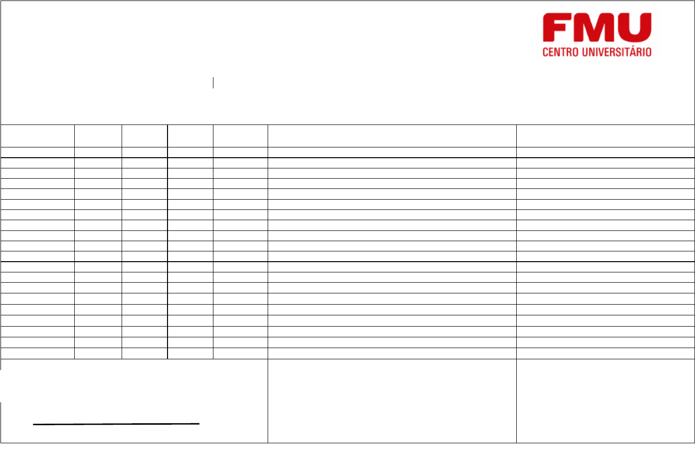 PLANILHA DE ACOMPANHAMENTO DE ESTÁGIO CURRICULAR Na planilha de atividades o aluno deverá indicar, aula a aula, os dias e horários, o total de horas (contando por hora relógio) e o título das atividades que acompanhou ao longo do estágio. O professor supervisor que o acompanha deverá assinar cada uma das linhas de atividades. Ao final, deverá buscar o carimbo e assinatura do professor supervisor de estágio que o acompanhou na escola em que atuou para validação dos dados. Atenção a soma das horas relógio de todas atividades para preencher o campo final da planilha. CURSO: LICENCIATURA EM ARTES VISUAIS NOME DO ESTAGIÁRIO: JUÇARA BEZERRA DE OLIVEIRA R.A: 7766854 TURMA: 189207A07 ESCOLA: ESTÁGIO DE : ARTES MODALIDADE: OBSERVAÇÃO ( ) PARTICIPAÇÃO ( ) REGÊNCIA ( ) DATA HORÁRIO ÍNICIO HORÁRIO TÉRMINO TOTAL DE HORAS TURMA ASSUNTO PROFESSOR SUPERVISOR DA "ESCOLA DE ENSINO BÁSICO" TOTAL DE HORAS: 20 HORAS ASSINATURA DO ESTAGIÁRIO *Carimbo constando cargo e assinatura do(da) diretor (ra) *Além do diretor, poderá ser assinada pelo vice-diretor , assistente de diretor ou coordenador pedagógico com respectivo carimbo constando nome e cargo. ** Serão acrescidas até 20 horas relativas à presença em todas as reuniões de orientação do semestre e mais 20 horas de estágio relativo a adequada produção e juntada de relatórios, planilhas e documentos obrigatórios ao processo de estágio, desde que o aluno tenha cumprido as demais horas obrigatórias do estágio supervisionado obrigatório do semestre. PLANILHA - ESTAGIO ARTES VISUAIS 2022.xlsx