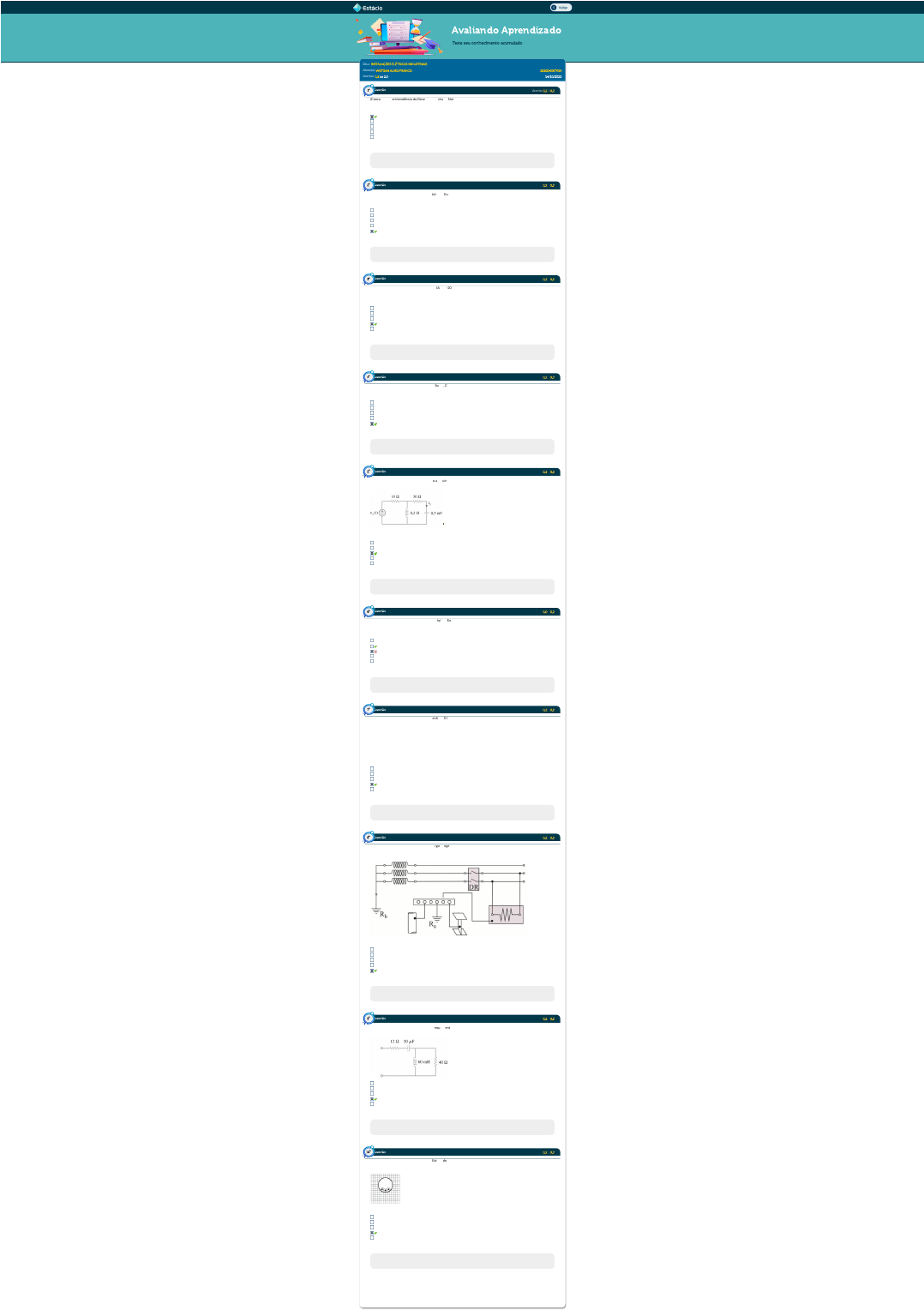 14/10/2023, 06:50 Estácio: Alunos https://simulado.estacio.br/bdq_simulados_ava1_ava2_ead_resultado.asp?cod_hist_prova=319037045&cod_prova=6724795739&f_cod_disc= 1/1 Avaliando Aprendizado Teste seu conhecimento acumulado Disc.: INSTALAÇÕES ELÉTRICAS INDUSTRIAIS Aluno(a): WOTSAN ALVES FRANCO 202004087924 Acertos: 1,8 de 2,0 14/10/2023 Acerto: 0,2 / 0,2 (Concurso: Superintendência do Desenvolvimento do Nordeste; Engenharia Elétrica; 2013; Banca FGV) Um circuito série é composto de uma fonte senoidal de 140 V, um resistor de resistência 30 Ω e um indutor de reatância 400 Ω. A corrente elétrica desse circuito é, em ampères, igual a: 2,8 A 2,0 A 3,0 A 2,5 A 3,3 A Respondido em 14/10/2023 06:38:48 Explicação: A resposta certa é: 2,8 A Acerto: 0,2 / 0,2 (Adaptada de: Prefeitura Municipal de Ibirité/MG - Engenheiro Eletricista - 2011) O dimensionamento inadequado do diâmetro dos condutores em um sistema elétrico pode acarretar: Aumento do fator de potência e aumento da corrente de curto-circuito. Elevação da capacidade de curto-circuito da instalação. Superaquecimento dos cabos e histerese. Sobretensão na carga e fugas de corrente. Elevada queda de tensão e gastos excessivos com a instalação. Respondido em 14/10/2023 06:43:35 Explicação: A resposta certa é: Elevada queda de tensão e gastos excessivos com a instalação. Acerto: 0,2 / 0,2 (Metrô-DF- Técnico em Eletrotécnica - Banca IADES -2014) Quanto ao ohmímetro e ao amperímetro, é correto a�rmar que eles são instrumentos utilizados, respectivamente, para medição de: Potência elétrica e corrente elétrica. Resistência elétrica e tensão elétrica. Tensão elétrica e potência elétrica. Resistência elétrica e corrente elétrica. Corrente elétrica e potência elétrica. Respondido em 14/10/2023 06:43:51 Explicação: A resposta certa é: Resistência elétrica e corrente elétrica. Acerto: 0,2 / 0,2 (Concurso: Instituto Nacional de Seguridade Social, Cargo - Engenharia Elétrica, Banca - FUNRIO, 2014) Entre os dispositivos de comando, podemos citar os seguintes: dimmer, relé de impulso e minuteria. Esses dispositivos citados, em instalações prediais, são usados em: trava eletromecânica bomba de água motor de guindaste motores síncronos iluminação Respondido em 14/10/2023 06:45:35 Explicação: A resposta certa é: iluminação Acerto: 0,2 / 0,2 A tensão de alimentação senoidal do circuito a seguir é dada por v(t)=20sen(50t-40°) V . Os valores do módulo e da fase da corrente que circula pelo capacitor são, respectivamente (ALEXANDER; SADIKU, 2013): 0,54 e 9,4° 0,75 e 5,8° 0,43 e 9,4° 0,43 e 5,8° 0,85 e 4,8° Respondido em 14/10/2023 06:46:47 Explicação: A resposta certa é: 0,43 e 9,4° Acerto: 0,0 / 0,2 (COSEAC - Prefeitura Municipal de São Gonçalo/RJ - Engenheiro Eletricista - 2011) A NR 10 determina que toda instalação ou peça condutora que não faça parte dos circuitos elétricos, mas que, eventualmente, possa �car sob tensão, deve ser aterrada. Tal medida se refere à proteção contra risco de: Incêndio. Contato. Descargas atmosféricas. Explosão. Acumulação de eletricidade estática. Respondido em 14/10/2023 06:47:16 Explicação: A resposta certa é: Contato. Acerto: 0,2 / 0,2 (Defensoria Pública do Rio de Janeiro - Engenheiro Eletricista - FGV - 2014) Considere as a�rmativas a seguir a respeito de um circuito elétrico em uma instalação de baixa tensão que possui na sua origem um disjuntor termomagnético em série com um dispositivo a corrente diferencial - DR: I. O disjuntor deverá atuar diante de uma sobrecorrente. II. O DR deverá atuar diante de uma sobrecorrente. III. O disjuntor deverá atuar diante de um curto-circuito Assinale se: Somente a alternativa II estiver correta. Somente a alternativa I estiver correta. Somente a alternativa III estiver correta. Somente as a�rmativas I e III estiverem corretas. Somente as a�rmativas II e III estiverem corretas. Respondido em 14/10/2023 06:47:31 Explicação: A resposta certa é: Somente as a�rmativas I e III estiverem corretas. Acerto: 0,2 / 0,2 (Concurso: Universidade Federal do Pará, Cargo - Engenharia Elétrica, CEPS, 2014) Observe o esquema de ligação de uma instalação elétrica na �gura a seguir em que se pode observar ligações equipotenciais e o uso do dispositivo de proteção à corrente diferencial residual (DR). Observando essa �gura, pode-se determinar que o tipo de esquema de ligação de aterramento é: TN-C IT TN-S TN-C-S TT Respondido em 14/10/2023 06:47:35 Explicação: A resposta certa é: TT Acerto: 0,2 / 0,2 Para uma frequência de 60 Hz, a impedância equivalente do circuito da �gura a seguir é de, aproximadamente (ALEXANDER; SADIKU, 2013): 35,2+j43,7 Ω 19,3+j40,5 Ω 27,8+j32,7 Ω 21,7+j35,9 Ω 14,5+j23,9 Ω Respondido em 14/10/2023 06:48:28 Explicação: A resposta certa é: 21,7+j35,9 Ω Acerto: 0,2 / 0,2 (Adaptada de: FCC - Tribunal de Justiça do Estado do Amapá - Engenharia Elétrica - 2014) A �gura a seguir corresponde ao número 7 da tabela 33 da NBR 5410 e é identi�cada como ''método de referência B1'': É CORRETO a�rmar que essa tabela da NBR 5410 se refere: À quantidade de condutores por tipo de eletroduto. Aos tipos de eletroduto em função da previsão de potência do circuito. Aos tipos de condutor elétrico em função da previsão de potência do circuito. Aos métodos de instalação de condutores elétricos. Aos limites de previsão de carga por tipo de instalação de condutores elétricos. Respondido em 14/10/2023 06:49:09 Explicação: A resposta certa é: Aos métodos de instalação de condutores elétricos. Questão1 a Questão2 a Questão3 a Questão4 a Questão5 a Questão6 a Questão7 a Questão8 a Questão9 a Questão10 a https://simulado.estacio.br/alunos/inicio.asp javascript:voltar();