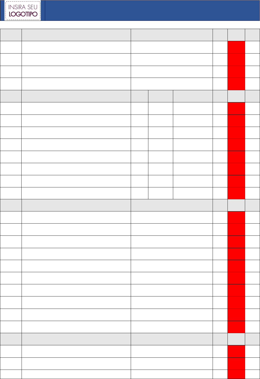 CHECK LIST PARA TRABALHOS EM ESPAÇO CONFINADOS ITEM ÁREA INSPECIONADA INSPEÇÃO SIM NÃO N/A 1.0 Colaboradores são treinados e capacitados na CER-IT 2180 e APTs? 2.0 Colaboradores conhecem os procedimentos de emergência e resgate? 3.0 Colaboradores estão utilizando os EPIs adequados 4.0 Área de trabalho (espaço confinado) está sinalizada? ITEM ÁREA INSPECIONADA INSP. UN PADRÃO SIM NÃO N/A 5.0 As condições atmosféricas no interior do espaço confinado estão com: 5.1 a – volume de oxigênio: % do volume > 19,5% < 23% do volume 5.2 b – monóxido de carbono: PPM < 25 PPM 5.3 c – gases ou vapores inflamáveis: % LIE 10 % do LIE 5.4 d – gás sulfídrico: % do Volume < 8% do Volume 5.5 e – pó e ou poeira: 5.6 f – temperatura ambiente: o C 30 ºC 5.6 g – ventilação: m/s 0,2 m/s ITEM ÁREA INSPECIONADA INSPEÇÃO SIM NÃO N/A 6.0 Área de acesso a socorro está desobstruída? 7.0 Sistema de alimentação elétrica está desligado? 8.0 Sistema de alimentação de pneumático está desligado? 9.0 Sistema hidráulico está desligado? 10.0 Sistema de alimentação de água está desligado? 11.0 Sistema de alimentação de aditivos está desligado? 12.0 Sistema de alimentação de cimento está desligado 13.0 Portas de acesso ao espaço confinado estão abertas e travadas? 14.0 O espaço confinado está com iluminação adequada? 15.0 Existem extintores adequados no local da atividade? ITEM INTERVENÇÕES EM ESPAÇO CONFINADO INSPEÇÃO SIM NÃO N/A 7.0 O equipamento foi drenado, lavado, purgado e limpo? 7.1 O equipamento está ventilado? 7.2 As chaves, disjuntores e botoeiras dos equipamentos elétricos foram desligados? 7.3 Existe equipamento de combate a incêndio no local? 7.4 Foi verificada a credencial do empregado da empresa contratada? 7.5 O trabalho foi verificado em conjunto com o requisitante 7.6 Os equipamentos estão sinalizados com etiqueta de advertência? 7.7 Foi verificada a necessidade de ventilação ou exaustão forçada? 7.8 Foi solicitado o aterramento elétrico de esguichos, mangueiras e umidificadores? SE HOUVER ALGUMA RESPOSTA “NÃO” O SERVIÇO NÃO PODE PROSSEGUIR ASSESSOTRIA SESMT ENCAREGADO DA ÁREA EXECUTANTE DA ATIVIDADE Ref.: Nome Check List Espaços Confinados