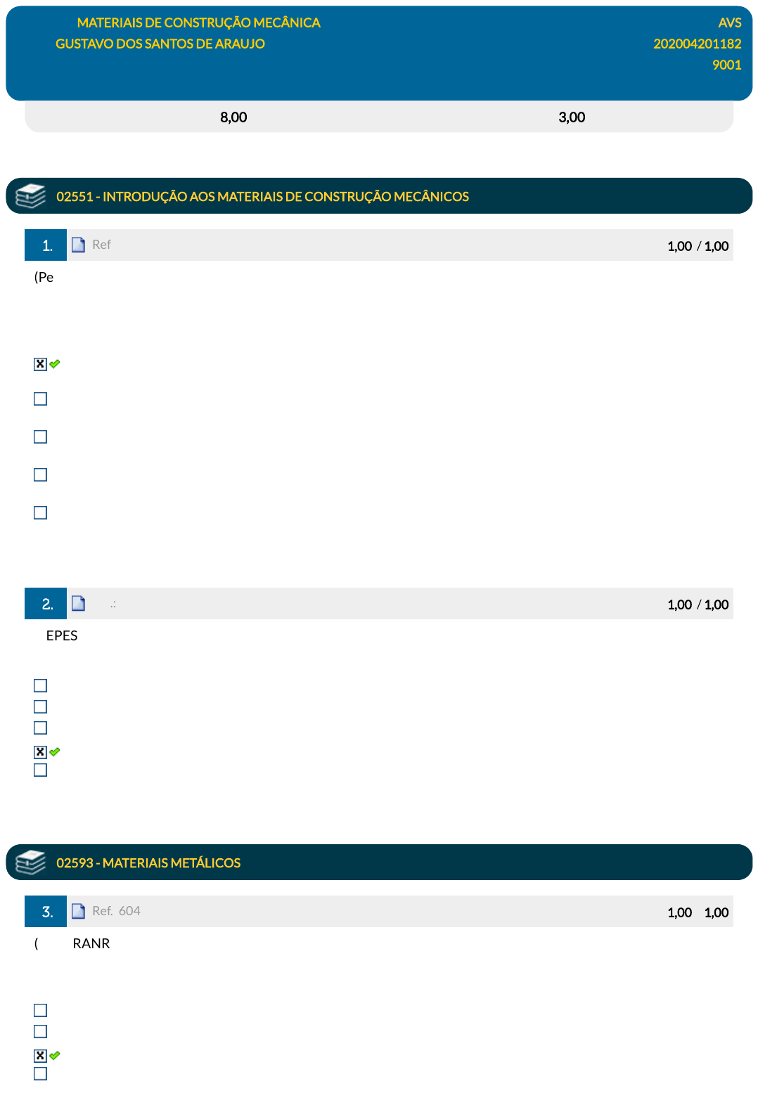 Disciplina: MATERIAIS DE CONSTRUÇÃO MECÂNICA AVS
