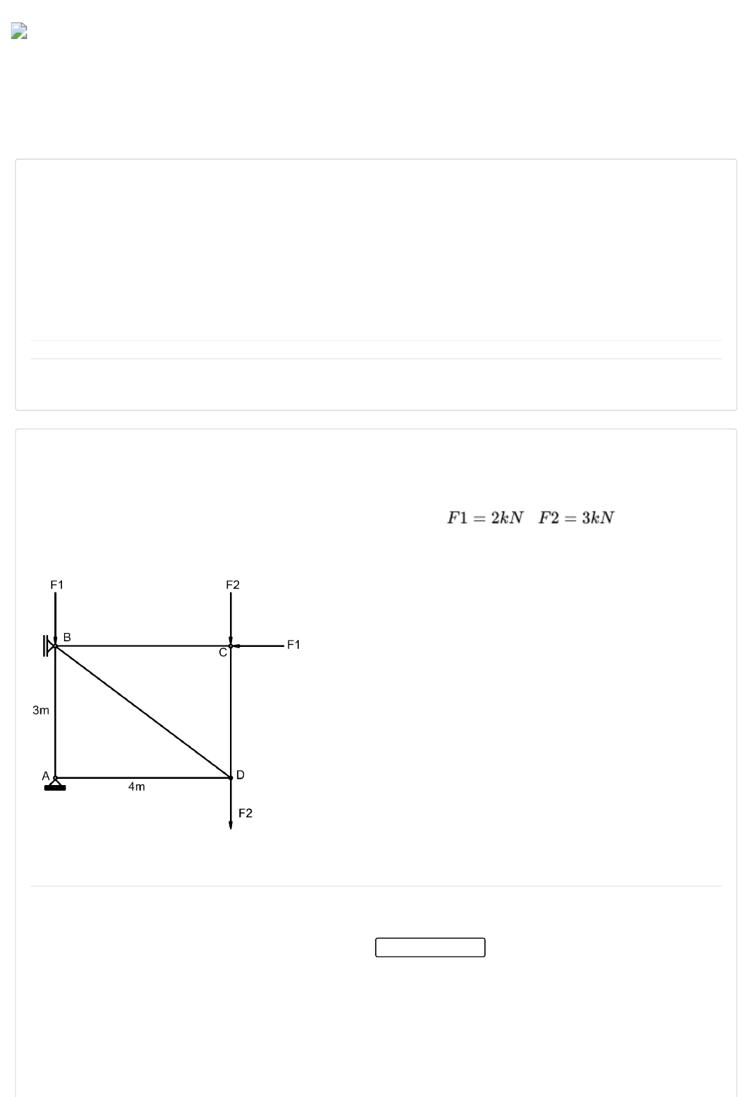 17/10/2023, 19:50 Colaborar - Av1 - Resistência dos Materiais https://www.colaboraread.com.br/aluno/avaliacao/index/3240000204?atividadeDisciplinaId=15111273 1/5 Resistência dos Materiais (/aluno/timeline/in… Av1 - Resistência dos Materiais Colaborar (/notific Informações Adicionais Período: 11/09/2023 00:00 à 23/10/2023 23:59 Situação: Cadastrado Tentativas: 3 / 3 Pontuação: 2500 Protocolo: 948712496 Avaliar Material 1) a) b) c) d) e) “Treliça é uma estrutura de membros esbeltos conectados entre si em suas extremidades”. No encontro destes elementos tem-se os nós. Para uma treliça com carregamento em seus nós, as barras apresentarão forças internas normais, podendo ser de compressão ou de tração. Para a treliça apresentada na figura, sabendo a intensidade das forças e , quais devem ser as forças internas nas barras AB, AD, BD, BC e CD, respectivamente? Figura - Treliça Fonte: Elaborado pelo autor (2017) Alternativas: 8kN; 8kN; 10kN; 2kN; 3kN. Apenas a barra BD traciona. Alternativa assinalada 8kN; 10kN; 8kN; 2kN; 3kN. Apenas a barra BD comprime. 8kN; 8kN; 12kN; 2kN; 3kN. Todas as barras comprimem. 8kN; 10kN; 8kN; 2kN; 3kN. Todas as barras tracionam. 8kN; 12kN; 8kN; 2kN; 3kN. Apenas BC e CD tracionam. https://www.colaboraread.com.br/aluno/timeline/index/3240000204?ofertaDisciplinaId=2051948 https://www.colaboraread.com.br/aluno/timeline/index/3240000204?ofertaDisciplinaId=2051948 https://www.colaboraread.com.br/notificacao/index https://www.colaboraread.com.br/notificacao/index https://www.colaboraread.com.br/notificacao/index javascript:void(0); 17/10/2023, 19:50 Colaborar - Av1 - Resistência dos Materiais https://www.colaboraread.com.br/aluno/avaliacao/index/3240000204?atividadeDisciplinaId=15111273 2/5 2) a) b) c) d) e) 3) A resistência dos materiais é uma disciplina onde se estuda a capacidade de um corpo resistir a um carregamento. A partir disso, estruturas são dimensionadas pré-determinando a forma e o carregamento que atenda a um projeto, assim pode-se adotar um material com uma tensão conhecida para dimensionar a geometria da peça. Para a estrutura apresentada na figura a seguir, determine o diâmetro mínimo das cordas AB e BC, respectivamente, sabendo que ambas podem ter e . Figura - Estrutura. Alternativas: 7,7 mm e 7,4 mm 5,3 mm e 5,5 mm 7,4 mm e 7,7 mm Alternativa assinalada 5,5 mm e 5,3 mm 6,4 mm e 6,6 mm “A análise da treliça usando o método dos nós normalmente é simplificado se pudermos primeiro identificar os membros que não suportam carregamento algum. Esses membros de força zero são usados para aumentar a estabilidade da treliça durante a construção e para fornecer um apoio adicional se o carregamento for alterado”. Analise o comportamento da treliça mostrada na Figura, supondo que e são forças maiores que 0 e mantém o sentido indicado. Qual das barras terá força igual a zero? Figura - Treliça 17/10/2023, 19:50 Colaborar - Av1 - Resistência dos Materiais https://www.colaboraread.com.br/aluno/avaliacao/index/3240000204?atividadeDisciplinaId=15111273 3/5 a) b) c) d) e) 4) Fonte: Elaborado pelo autor (2017). Assinale a alternativa correta. Alternativas: AB BC Alternativa assinalada AC CD BD "Os diagramas tensa~o-deformac¸a~o dos materiais variam muito, e ensaios de tração diferentes executados com o mesmo material podem produzir resultados diferentes, dependendo da temperatura do corpo de prova e da velocidade de aplicação da carga. " (Beer et al. 2015, p.53). A partir dos dados obtidos em um ensaio de tração, apresentado na tabela a seguir, determine a tensão última e a tensão de ruptura de um corpo de prova com diâmetro de 10 mm e comprimento de 50 mm. Tabela – Dados de ensaio. Carga (kN) (mm) Carga (kN) (mm) 0,00 0,0000 60,00 0,5000 7,50 0,0125 80,00 1,0000 23,00 0,0375 100,00 2,5000 40,00 0,0625 110,0 7,0000 55,00 0,0875 95,00 10,0000 59,00 0,1250 90,00 11,5000 17/10/2023, 19:50 Colaborar - Av1 - Resistência dos Materiais https://www.colaboraread.com.br/aluno/avaliacao/index/3240000204?atividadeDisciplinaId=15111273 4/5 a) b) c) d) e) 5) a) b) c) d) e) Fonte: Adaptado de Hibbeler (2010, p.69). Alternativas: Alternativa assinalada Para uma barra com carregamento axial, se a tensão atuante não exceder o limite de elasticidade do material, podemos aplicar a lei de Hooke. Com isso, o diagrama apresenta uma proporcionalidade entre a tensão e a deformação, fazendo com que o trecho inicial do diagrama tensão-deformação seja uma reta. A barra apresentada na figura a seguir é composta por dois segmentos AB e BD, com área de seção transversal e , respectivamente. Determine o deslocamento vertical da extremidade A, sabendo-se que o módulo de elasticidade do material é de 200 GPa. Figura – Desenho esquemático de uma barra Fonte: Hibbeler (2010, p.89) Alternativas: 0,22 mm 0,26 mm 0,75 mm 0,77 mm Alternativa assinalada 0,85 mm 17/10/2023, 19:50 Colaborar - Av1 - Resistência dos Materiais https://www.colaboraread.com.br/aluno/avaliacao/index/3240000204?atividadeDisciplinaId=15111273 5/5