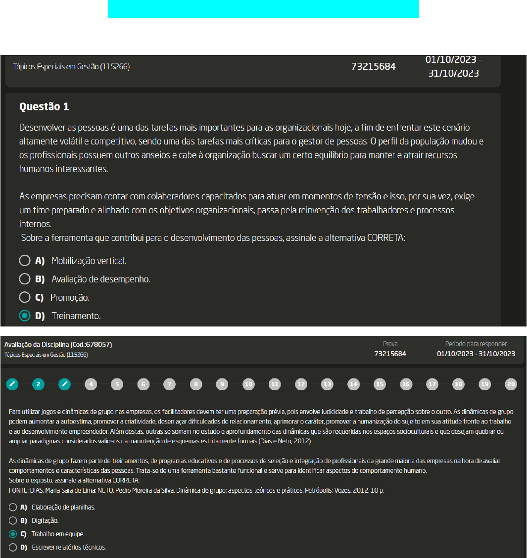 PÓS-GRADUACAO CIÊNCIAS DE DADOS PROVA TÓPICOS ESPECIAIS EM GESTÃO Ao longo dos anos surgiram diferentes teorias da liderança, todas com o objetivo de entender, analisar e definir melhor como essa dinâmica funciona e quais circunstancias levam uma pessoa a se tornar um verdadeiro líder. Dito isso, relacione as teorias da liderança com suas respectivas características: I – Teoria dos traços da personalidade. - O caráter e a personalidade distinguem o líder do não-líder. II – Teoria contingencial ou situacional. - Determinada condição faz surgir o líder necessário e conveniente. III – Teoria do caminho-meta. - O comportamento do líder é a chave para motivar os subordinados. ( II ) Determinada condição faz surgir o líder necessário e conveniente. ( I ) O caráter e a personalidade distinguem o líder do não-líder. ( III ) O comportamento do líder é a chave para motivar os subordinados. A II – III – I. B III – II – I. C II – I – III. D III – I – II.