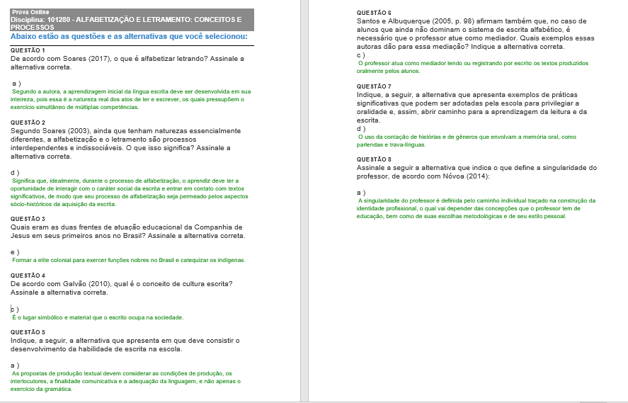 De acordo com Soares (2017), que é alfabetizar letrando? Assinale a alternativa que indica o que define a singularidade do professor de acordo com Nóvoa (2014): a) professor atua como mediador lendo ou registrando por escrito os textos produzidos oralmente pelos alunos. b) Segundo a autora a aprendizagem inicial da escrita deve ser desenvolvida em sua natureza real dos atos de ler e escrever. c) Exemplos de práticas significativas que podem ser adotadas pela escola para privilegiar a oralidade. d) A singularidade do professor é pelo caminho individual traçado na construção da identidade.