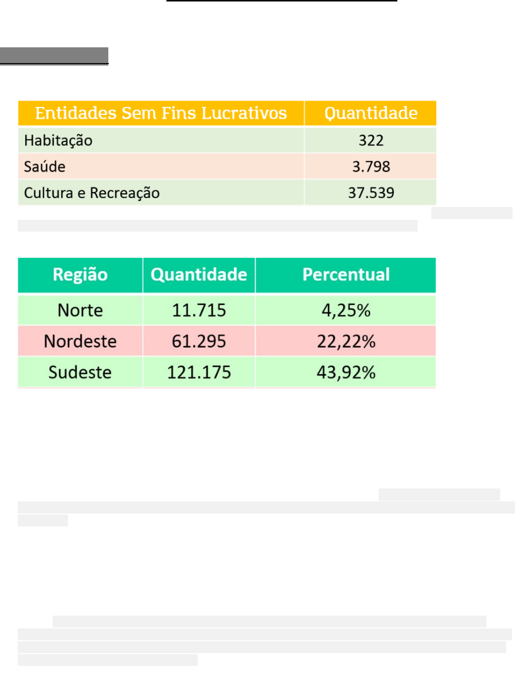Contabilidade Terceiro setor O terceiro setor 1. Observe com atenção a tabela abaixo: A tabela apresenta dados relevantes sobre a importante atuação do terceiro setor na realidade brasileira. De acordo com a tabela, verifica-se como o terceiro setor vem crescendo de forma significativa no Brasil. 2. Observe atentamente a tabela abaixo: O Sudeste conta com o número de 121.175 fundações privadas e associações sem fins lucrativos, demonstrando o grande avanço no setor de serviços terceirizados nesta região. 3. Leia com bastante atenção a reflexão proposta por Thompson (2000):"As organizações do 'terceiro setor' deveriam funcionar como empresas eficientes no fornecimento de serviços ou deveriam funcionar como organizações portadoras de ideias e de utopias sociais?"De acordo com a realidade social em que estamos inseridos, verifica-se que a possível resposta que é dada, de forma direta, à reflexão proposta por Thompson é: As organizações funcionam basicamente como empresas que fornecem serviços eficientes. Na atualidade, não há, de fato, uma reflexão disseminada sobre o papel do terceiro setor, apenas a preocupação em ofertar serviços à população. 4. O terceiro setor vem crescendo de forma significativa nas sociedades contemporâneas, o que ocasiona uma adequação da organização social ao avanço deste setor. Nesse sentido, é possível verificarmos que mudanças sociais, econômicas e, até mesmo, políticas vêm ocorrendo, oriundas da afirmação do terceiro setor nas relações sociais de hoje em dia. Portanto, tendo em mente essas ponderações, é CORRETO afirmar que um provável conceito de terceiro setor é: A ideia em torno da qual organizações privadas, sem fins lucrativos, atuam de forma dirigida a finalidades coletivas ou públicas. É perfeitamente possível compreender o terceiro setor como o ramo de atuação na sociedade caracterizado pela presença de iniciativas privadas de utilidade pública, cuja origem está na sociedade civil. O terceiro setor é constituído por organizações sem fins lucrativos e não governamentais, cujo objetivo é a geração de serviços de caráter público. 5. Observe atentamente o esquema abaixo: A atuação do terceiro setor tem impacto direto na qualidade de vida da população. O terceiro setor existe como forma de prestação de serviços à população, o que implica dizer que ele tem impacto direto na qualidade de vida desta mesma população. Informação contábil no terceiro setor 1. contabilidade subdivide-se em contabilidade gerencial e financeira. A contabilidade gerencial destina-se ao fornecimento das informações contábeis às pessoas que estão dentro da organização, já a financeira fornece informações aos que se encontram fora da organização. Sendo assim, assinale a alternativa que compreende o grupo de pessoas atendidas pela contabilidade gerencial. Administradores, diretores e executivos. O grupo de pessoas atendidas pela contabilidade gerencial compreende os administradores, os diretores e os executivos. O interesse dessas pessoas para com as informações contábeis atinge graus de profundidade e análise, bem como de frequência, muito maior que para os demais grupos. De fato, são eles os agentes responsáveis pelas tomadas de decisões dentro de cada entidade a que pertencem. 2. A informação contábil não é apenas um dado disperso e apurado seguindo as solicitações imediatas dos interessados, mas, sim, que o faz de maneira estruturada dentro de um esquema de planejamento contábil em que um sistema de informação é desenhado, colocado em funcionamento e periodicamente revisto. A informação contábil tem algumas características. Sendo assim, assinale a alternativa que apresenta tais características. Comparável, compreensível, relevante e confiável. Os autores Iudícibus e Marion (2002) relatam que uma das formas de avaliar a qualidade da informação contábil e, portanto, sua utilidade (benefício), quando comparada ao custo, é analisar algumas características que deve ter, tais como: compreensibilidade, relevância, confiabilidade e comparabilidade. 3. As informações contábeis pretendem evidenciar os aspectos econômicos, sociais e de responsabilidade pública que dizem respeito à atividade desempenhada pela entidade, o que se torna um instrumento de muito valor para o terceiro setor, sendo por meio das demonstrações contábeis que se poderá mostrar o real impacto da instituição para com o espaço na qual está inserida.Sendo assim, assinale a alternativa que compreende um item que não é divulgado e/ou realizado pelas instituições do terceiro setor. Demonstração das origens e aplicações de recursos. De acordo com o autor Tinoco (2008), as organizações do terceiro setor devem divulgar, por meio de suas informações contábeis, os seguintes itens: principais práticas contábeis adotadas; explicações adicionais sobre determinações de saldo; eventos subsequentes relevantes à avaliação das demonstrações em análise; composição detalhada de algumas contas; explicação sobre os objetivos da entidade e sua condição de não visar lucros; critérios de reconhecimento das receitas e despesas; divulgação das doações recebidas, sua natureza, política de registro contábil e valores; divulgação das receitas de subvenção, aplicação de recursos e valores envolvidos; criação de fundos e situação dos já existentes; e divulgação do status da organização em relação à legislação do imposto de renda. 4. O ____________ é o processo de estabelecer objetivos e determinar como atingi-los, esse é seu papel central na gestão, ou seja, considerar vários cursos alternativos de ação e decidir qual o melhor. Já o ______________ envolve o monitoramento das atividades para se ter certeza de que elas estão sendo realizadas como planejado e para corrigir qualquer desvio significativo, possibilitando ao gestor o monitoramen