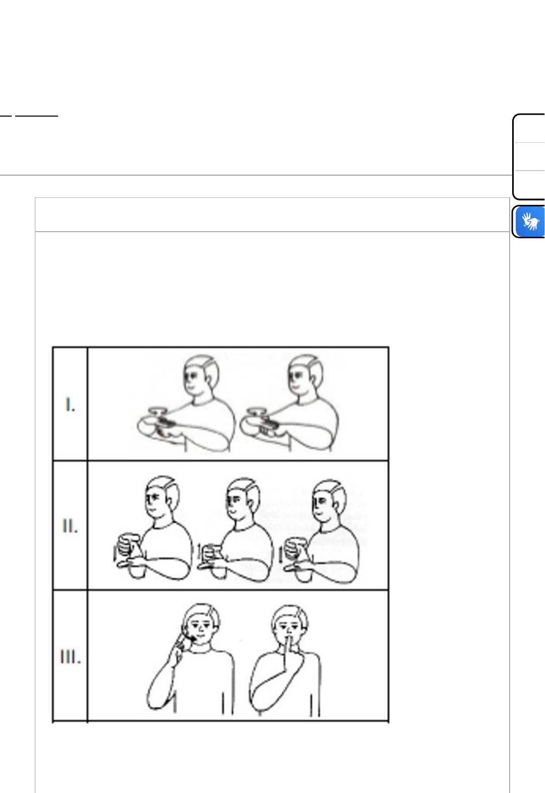 AO2 Iniciado: 20 out em 11:43 Instruções do teste Importante: Caso você esteja realizando a atividade através do aplicativo "Canvas Student", é necessário que você clique em "FAZER O QUESTIONÁRIO", no final da página. 0,6 ptsPergunta 1 Na língua de sinais temos os sinais icônicos e os arbitrários. Observe os sinais da figura a seguir. Dentre os sinais apresentados, qual apresenta ser icônico? A+ A A- II e III, apenas. III, apenas. I, apenas. II, apenas. I, II e III. 0,6 ptsPergunta 2 Leia o texto a seguir: Marcela é professora do Atendimento Educacional Especializado e atua em sala de recursos atendendo crianças com diferentes deficiências. Atualmente está com uma criança com paralisia cerebral que não se comunica verbalmente, pois a paralisia afetou seu sentido auditivo e como consequência sua fala. A criança se comunica apenas chorando quando não gosta do que está sendo oferecido e ri quando gosta. A professora de sala regular da aluna relatou à Marcela que a maior barreira em sala de aula é a questão da comunicação. A partir do caso apresentado, avalie as decisões da professora Marcela para eliminar a barreira apresentada: I. A professora do AEE realiza intervenções para que a criança comece a expressar seus desejos apenas por meio da fala. II. A professora do AEE inicia um processo de estabelecimento de uma comunicação alternativa, uma vez que a aluna tem comprometimento auditivo, por meio de placas com figuras e fotos, com o alinhamento com a fonoaudióloga da aluna. III. A professora do AEE inicia o trabalho com a criança questões de coordenação motora fina e exercício de linguagem oral para aprimorar as possibilidades de indicação motora dos objetos que deseja e expressar seus desejos por meio da língua falada. É correto o que se afirma em: A+ A A- I e II, apenas. II, apenas III, apenas I e III, apenas. II e III, apenas. 0,6 ptsPergunta 3 Leia o texto a seguir: “O que muitos desconhecem é que não é o professor da escola comum que precisa ser especialista na deficiência do aluno. Todo aluno no Brasil, desde a educação infantil até a educação superior, tem direito ao Atendimento Educacional Especializado. Esse atendimento deve ocorrer no contraturno escolar e irá beneficiar tanto o aluno quanto o professor da sala de aula comum.” Disponível em: https://institutoitard.com.br/atendimento-educacional- especializado-a-verdade-do-aee-na-escola/ (https://institutoitard.com.br/atendimento-educacional-especializado-a-verdade-do- aee-na-escola/) . Acesso em: 05 de setembro de 2020. Adaptado Qual o objetivo prático do Atendimento Educacional Especializado, em relação ao sujeito surdo, segundo a legislação brasileira? Garantir o alcance por todos os estudantes do currículo comum e das atividades cotidianas realizadas na escola. Desenvolver o estudante e o processo de ensino aprendizagem. Tornar o processo educativo mais equitativo, considerando assim a diversidade de possibilidades de promover a aprendizagem nos princípios descritos acima. Atender às características das pessoas com deficiência auditiva no processo escolar e garantir o acesso ao currículo em condições de igualdade. Identificar, elaborar e organizar recursos pedagógicos e de acessibilidade arquitetônica, de linguagem e outras que eliminem as barreiras para a plena participação dos estudantes, considerando suas necessidades específicas. A+ A A- https://institutoitard.com.br/atendimento-educacional-especializado-a-verdade-do-aee-na-escola/ https://institutoitard.com.br/atendimento-educacional-especializado-a-verdade-do-aee-na-escola/ https://institutoitard.com.br/atendimento-educacional-especializado-a-verdade-do-aee-na-escola/ https://institutoitard.com.br/atendimento-educacional-especializado-a-verdade-do-aee-na-escola/ https://institutoitard.com.br/atendimento-educacional-especializado-a-verdade-do-aee-na-escola/ https://institutoitard.com.br/atendimento-educacional-especializado-a-verdade-do-aee-na-escola/ 0,6 ptsPergunta 4 Observe a imagem a seguir: Disponível em: https://www.opopular.com.br/noticias/ludovica/blogs/viva-a- diferen%C3%A7a/viva-a-diferen%C3%A7a-1.925289/inclus%C3%A3o- escolar-o-que-%C3%A9-e-como-est%C3%A1-1.1479751 (https://www.opopular.com.br/noticias/ludovica/blogs/viva-a-diferen%C3%A7a/viva- a-diferen%C3%A7a-1.925289/inclus%C3%A3o-escolar-o-que-%C3%A9-e-como- est%C3%A1-1.1479751) . Acesso em 05 de setembro de 2020. Considerando esse contexto, avalie as seguintes asserções e a relação proposta entre elas. I. As atividades pedagógicas inclusivas envolvem diversas estratégias e diferentes experiências para enriquecer o processo de ensino aprendizagem de todo o estudante assim como o que tem deficiência auditiva. PORQUE A+ A A- https://www.opopular.com.br/noticias/ludovica/blogs/viva-a-diferen%C3%A7a/viva-a-diferen%C3%A7a-1.925289/inclus%C3%A3o-escolar-o-que-%C3%A9-e-como-est%C3%A1-1.1479751 https://www.opopular.com.br/noticias/ludovica/blogs/viva-a-diferen%C3%A7a/viva-a-diferen%C3%A7a-1.925289/inclus%C3%A3o-escolar-o-que-%C3%A9-e-como-est%C3%A1-1.1479751 https://www.opopular.com.br/noticias/ludovica/blogs/viva-a-diferen%C3%A7a/viva-a-diferen%C3%A7a-1.925289/inclus%C3%A3o-escolar-o-que-%C3%A9-e-como-est%C3%A1-1.1479751 https://www.opopular.com.br/noticias/ludovica/blogs/viva-a-diferen%C3%A7a/viva-a-diferen%C3%A7a-1.925289/inclus%C3%A3o-escolar-o-que-%C3%A9-e-como-est%C3%A1-1.1479751 https://www.opopular.com.br/noticias/ludovica/blogs/viva-a-diferen%C3%A7a/viva-a-diferen%C3%A7a-1.925289/inclus%C3%A3o-escolar-o-que-%C3%A9-e-como-est%C3%A1-1.1479751 https://www.opopular.com.br/noticias/ludovica/blogs/viva-a-diferen%C3%A7a/viva-a-diferen%C3%A7a-1.925289/inclus%C3%A3o-escolar-o-que-%C3%A9-e-como-est%C3%A1-1.1479751 https://www.opopular.com.br/noticias/ludovica/blogs/viva-a-diferen%C3%A7a/viva-a-diferen%C3%A7a-1.925289/inclus%C3%A3o-escolar-o-que-%C3%A9-e-como-est%C3%A1-1.1479751 https://www.opopular.com.br/noticias/ludovica/blogs/viv