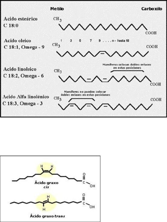 LIPÍDIOS · Introdução *Baixa solubilidade em água e moléculas polares, sendo formado por uma longa cadeia carbônica e um grupo ácido carboxílico (anfipáticos) *Funções importantes: compõem a membrana celular, isolante térmico, participa na formação de vitaminas e hormônios, cofatores enzimáticos etc. · Ácidos graxos *Para um ácido graxo ser um lipídio deve ser: monocarboxílico, número par de carbonos, cadeia hidrocarbonada que varie de 4 a 36 e ser saturado ou insaturado *Nomenclatura delta: número de carbonos da cadeia carboxílica, dois pontos, número de ligações duplas, delta, número em que aparece a ligação dupla *Nomenclatura ômega: *Nomenclatura cis-trans: modificações feitas pelo homem com o objetivo de criar gorduras, trazem problemas cardiovasculares *Quanto maior for sua cadeia carbônica e menor o número de insaturações mais baixa será a solubilidade *Quanto maior o número de insaturações menor será o ponto de fusão – ácidos graxos insaturados possuem ponto de fusão menor que os saturados - Lipídios insaturados: aspecto líquido (óleos) por causa do baixo ponto de fusão - Lipídios saturados: aspecto sólido (gorduras) por causa do alto ponto de fusão · Triglicerídeos *Formados pela reação de esterificação entre o glicerol e três moléculas de ácidos graxos de cadeia longa *Principais lipídios de reserva energética dos animais e vegetais, biomoléculas mais calóricas do metabolismo - Em animais se encontra no tecido adiposo e em vegetais nas sementes para germinação *Hidrólise dos triglicerídeos recebe o nome de hidrólise enzimática (lipases), sendo importante no processo digestório - Produtos da hidrólise enzimática: ácidos graxos e glicerol *Triglicerídeos insaturados são encontrados com predominância em vegetais, o contrário acontece com animais pela incapacidade de sintetizar ácidos graxos insaturados *Reação de hidrogenação: em presença de calor é quebrada a ligação dupla de ácidos graxos insaturados de configuração cis em ácidos graxos saturados através do hidrogênio - Óleo poliinsaturado é convertido em gordura hidrogenada (gordura trans) · Ceras *Formadas a partir da reação de esterificação entre ácidos graxos de cadeia longa com álcool de cadeia longa. *Encontrada como fonte de energia em plânctons, glândulas de aves aquáticas, proteção de folhas em vegetais · Lipídios estruturais de membrana *Encontrados em bicamadas lipídicas de membrana celulares, responsáveis pela permeabilidade seletiva *Fosfolipídios: constituído por uma região polar com fosfato e uma cadeia longa carbônica (apolar) - Glicerofosfolipídios possuem como álcool a molécula de glicerol, já os esfingofosfolipídios possui um aminoálcool a molécula esfingosina de cadeia longa · Esteroides *Também se fazem presente nas membranas celulares, sendo nesse caso o seu representado o colesterol *Colesterol: constituído por quatro anéis fusionados e juntamente com a cadeia de hidrocarbonetos constituem a região apolar, em uma extremidade apresenta uma hidroxila (região polar) *Esteroides são precursores de hormônios esteroides (estrogênio e testosterona) - Vitamina D (Colecalciferol): responsável por regular os níveis de cálcio nos rins e ossos, sendo a hipovitaminose acarreta a osteoporose e ao raquitismo - Ácidos biliares: também provenientes do colesterol e realiza função emulsificadora por meio de dispersão. · Isoprenoides *Possui funções especializadas e na sua composição há um composto não saponificável sintetizado pela condensação de isopreno *Vitamina A: possui três formas estruturais distintas - Retinol: atua como hormônio e pigmento de olhos em animais - Ácido retinóico: utilizado no tratamento da acne e do envelhecimento - Retinal: pigmento importante na acuidade visual - Vegetais de coloração amarelada ou alaranjada possui beta carotenos, que pode se converter em vitamina A - Hipovitaminose pode ocasionar cegueira noturna, xeroftalmia, retardo no desenvolvimento e no crescimento celular *Vitamina E: relacionado com os tocoferóis, antioxidantes da classe dos isoprenóides - Atua como cofator no combate a radicais livres, impedindo o dano oxidativo aos lipídios de membrana - Hipovitaminose causa fraqueza muscular e pele escamosa *Vitamina K: cofator isoprenóide importante na coagulação sanguínea - Hipovitaminose diminui a cascata de coagulação, causando hemorragias · Eicosanoides *Lipídios que atuam como hormônios locais derivados do ácido graxo polinsaturado araquidônico - Prostaglandinas: participa da contração da musculatura uterina, contribui para o sono e a vigília, eleva temperatura corporal nos processos inflamatórios e da dor - Tromboxanos: formação do coágulo e na redução do fluxo sanguíneo - Leucotrienos: contração da musculatura lisa dos pulmões