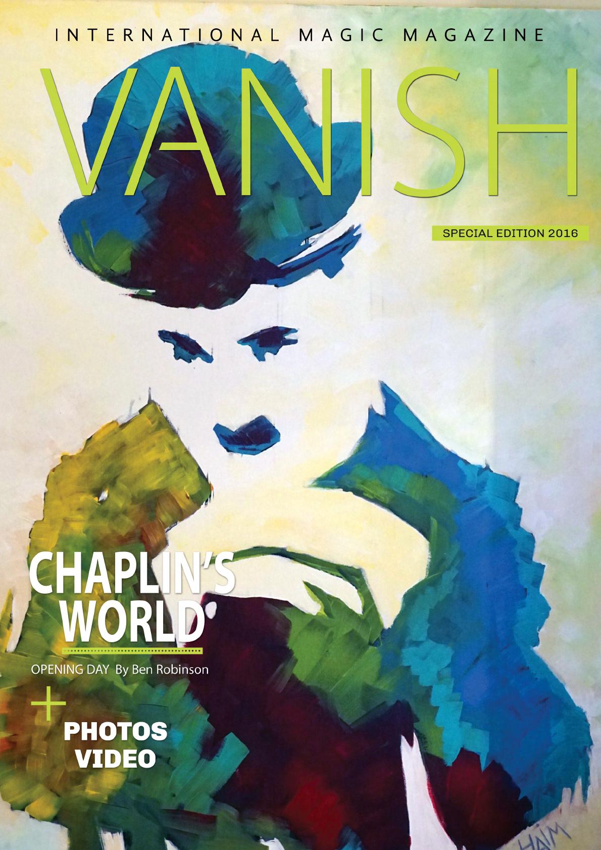 IMAGINE being able to perform at least SIX DIFFERENT routines from one pocket calendar. Created by Paul Romhany & Mike Maione Now available at your favorite MM dealer. Visit www.murphysmagic.com for more. ...every trick revealed... Now you can perform the routine that went viral. T h e D r e a m A c t by Shin Lim It is no secret that I am a huge fan of Charlie Chaplin. I’ve been a Chaplin fan since I saw his masterpiece “The Circus” (Academy Award, 1928) as an eight-year-old boy in New Zealand. That film inspired a lifetime love for Chaplin movies and for my passion about magic. Today I can sit down with my four- year old son and watch a Chaplin movie and see his eyes light up whenever Chaplin walks on screen. The power of a Chaplin movie is that it can reach any age; and break down all cultural barriers. His work is still as relevant today as it was when these films were first shown over 90-years ago. There are very few movies today that have, or will have, the same impact when they are shown 90 years from now. When lecturing to magicians live around the world I always give this piece of advice: “Sit down and watch a full-length silent comedy movie by Charlie Chaplin, Harold Lloyd or Buster Keaton.” You will learn so much about how to craft your own show from these artists. If you watch closely, you’ll see these movies have a structure that draws you in and takes you on a journey filled with humor and pathos. These great filmmakers knew how to tell a story and connect with the viewers that give them meaning and a power that makes them last for eternity. Imagine, as a magician, if you could take these powerful elements and bring them to your show. It doesn’t matter if you are a close-up magician, a kid’s performer, a comedy magician or illusionist. By studying Chaplin and watching his story telling technique you will find yourself connecting with your audience in a way that will make a huge difference to your show and leave a lasting impression on their minds. My personal suggestions for Chaplin would be The Kid, The Circus and The Gold Rush. Watch as he takes you on this incredible ride and study how Chaplin really uses the characters to bring out the story. Chaplin makes you feel on a gut level and not only is this terribly difficult to do, but he does this primarily without words. All performers need to think about that. It is not pantomime in the current definition. It is silent storytelling. There is a great gulf of a difference. When Ben Robinson told me he and his wife An were going to the opening of Chaplin’s World in Switzerland I knew it would make a perfect Special Edition for VANISH. This is a place everybody must visit, not just Chaplin fans but anybody who loves movies, magic and the arts. Ben has given VANISH a world- exclusive and insight in to a truly magical place and an insight in to a man who made the world a much happier place to live. We need Chaplin today just as much as the world needed him back during the World Wars and the Great Depression. The world needs to learn how to smile and laugh and love again. Enjoy this very special edition of VANISH. LEARN FROM THE MASTERS Paul Romhany ED’S NOTE PUBLISHER Paul Romhany & Joomag EDITOR-IN-CHIEF Paul Romhany: editor@vanishmagazine.com ASSOCIATE EDITOR Ben Robinson ASSOCIATE EDITOR Nick Lewin STAFF WRITERS FOR SPECIAL EDITION BEN ROBINSON COVER ARTWORK HAIM GOLDENBERG EDITORIAL SUPPORT EXECUTIVE Richard Webster and Mick Peck ADVERTISING COORDINATOR Paul Romhany & Sydnie Anderson CREATIVE DESIGNER & LAYOUT Paul Romhany MARKETING EXECUTIVES Steve Hocevar CIRCULATION & SUBSCRIPTION Harry Morgan ADDRESS 1183 Blind Bogey Drive Qualicum Beach, BC. V9K1E6 CANADA COPYRIGHT All rights reserved. None of this magazine can be reprinted electronically OR in hard form without the permission of the editor. Internatonal Magic Magazine SPECIAL EDITION July 2016 VANISH mailto:mailto:editor@vanishmagazine.com mailto:editor@vanishmagazine.com http://www.murphysmagic.com http://www.youtube.com/watch?v=-Ta2KYvcwak http://www.murphysmagic.com C BY BEN ROBINSON World Chaplin’s AN OVERVIEW OF OPENING DAY CHAPLIN’s WORLD, a Foundation Museum, opened to the world April 17, 2016. It was one day after Charlie Chaplin turned 127. The museum rests in Corsier-sur-Vevey, subsidiary to the larger town of Vevey, Switzerland. Population twenty-thousand in the off-season, and ballooning to fifty-thousand in the Summer for those who want to water ski the majestic Lake Geneva, also known as Lac Léman when viewed from the North. The lake, views, Alps and the estate are indeed—magical. This is magic of a different order; poetic, transcendental, blissful—yet with mountainous calamity always just a step away. Switzerland—the heartbeat of Europe. The peaceful center of the clock spring that never moves, yet, drives the entire show... CHAPLIN’s WORLD is the most telling example of one man raising himself from poverty; and conquering the world in many respects. Chaplin’s fame rests in a category by itself. No other artist of the 20th century has been as noted. His Academy Award presented to him in 1972 is on display and the scripture reads (in part): “For his profound insight into the human condition.” In one wry observation, no other world figure adorns as many different postage stamps. His birth centenary wrought the US government to issue one collector’s edition stamp in 24 ct. gold. Over fifty nations have issued stamps in honor of Sir Charles Chaplin. Full-blown statues in cast metal inhabit at least five countries (Ireland, Switzerland, France, the US, and England). 1918: Chaplin was without question the most famous man in the world. That year he also co- founded United Artists along with Mary Pickford and Douglas Fairbanks and D. W. Griffith. As well, the police estimated over seventy-five thousand people came to lower Manhattan to see Chaplin and Douglas Fairbanks at Federal Hall in New York City. This was when raisin