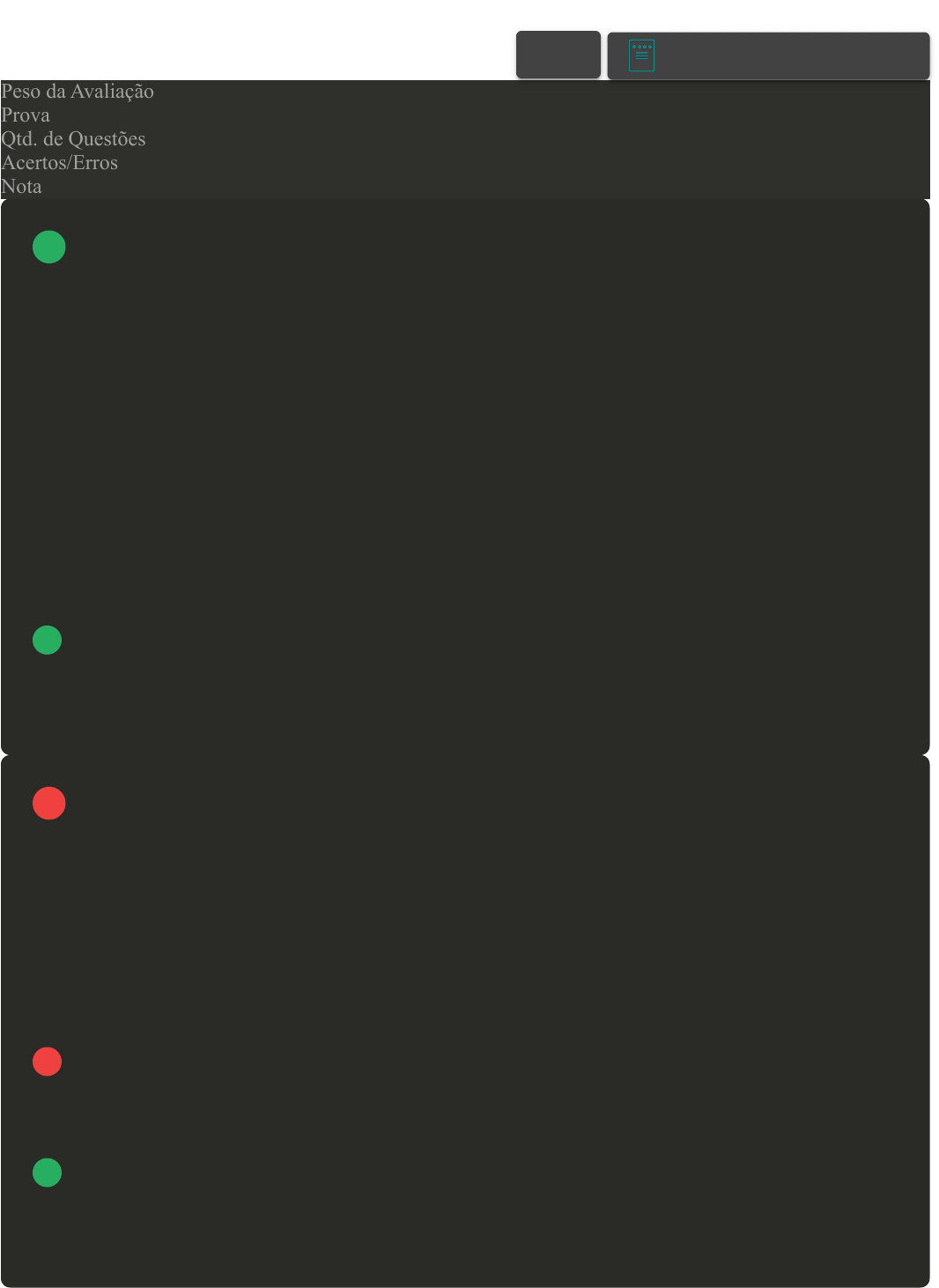 Prova Impressa GABARITO | Avaliação II - Individual (Cod.:887625) Peso da Avaliação 1,50 Prova 69115421 Qtd. de Questões 10 Acertos/Erros 9/1 Nota 9,00 A tecnologia da informação precisa dar suporte aos tomadores de decisão gerencial. Dentro da organização, existem níveis de tomada de decisão. Sobre esses níveis, classifique V para as opções verdadeiras e F para as falsas: ( ) Administração estratégica. ( ) Administração direta. ( ) Administração tática. ( ) Administração operacional. ( ) Administração indireta. Agora, assinale a alternativa que apresenta a sequência CORRETA: A F - V - F - V - V. B V - V - F - F - F. C V - F - V - V - F. D F - F - V - F - V. São vários os tipos de sistemas utilizados pelas organizações. Um destes tipos chama-se sistemas especialistas, um software mais novo que tenta substituir os especialistas de uma organização. Sobre as características dos sistemas especialistas, analise as sentenças a seguir: I- O sistema especialista explica o raciocínio. II- Um sistema especialista propõe novas ideias. III- O sistema especialista lida com incertezas. IV- Um sistema especialista administra a organização. Agora, assinale a alternativa CORRETA: A Somente a sentença I está correta. B Somente a sentença IV está correta. C As sentenças I, II e III estão corretas. D As sentenças I e IV estão corretas. VOLTAR A+ Alterar modo de visualização 1 2 Há empresas e organizações que fazem uso de vários softwares para facilitar suas atividades diárias. Esses softwares podem ser utilizados no auxílio de várias ações. Um deles que pode ser destacado é o Enterprise Resource Planning (ERP), que facilita o fluxo de informação da empresa. Com relação ao ERP, analise as sentenças a seguir: I- Os sistemas ERPs apresentam padronização, integração e maior disponibilidade das informações relativas aos processos de negócio que conectam a empresa e seu cliente, ao longo da cadeia de suprimento. II- Os sistemas ERPs atuam permitindo a simulação de cenários desconhecidos e a filtragem e reordenação das informações que auxiliam a tomada de decisões por parte dos gestores. III- Os sistemas ERPs reduzem a carga de trabalho de seus servidores porque o navegador entra em contato com o servidor uma vez, apresentam disponíveis todas as informações, garantindo melhora dos níveis de segurança nas transferências de informações por correio eletrônico entre a empresa e seu principal cliente. IV- A principal função de um ERP é o acompanhamento de toda a cadeia logística da organização, levantando informações de fornecedores e clientes para sua posterior divulgação. Agora, assinale a alternativa CORRETA: A As sentenças I, III e IV estão corretas. B As sentenças II, III e IV estão corretas. C As sentenças I, II e IV estão corretas. D Somente a sentença I está correta. A competitividade entre as organizações faz crescer a necessidade de soluções alinhadas com o planejamento estratégico de cada empresa. A implementação da tecnologia da informação nas empresas, aplicada adequadamente, gera vantagens no âmbito do processo decisório. Dependendo da área, tais sistemas podem ser classificados conforme o nível hierárquico de atuação. Com base no exposto, analise as sentenças a seguir: I- Os Sistemas de Processamento Transacional (SPT) servem para o nível operacional da empresa, monitorando as suas atividades diárias. II- O SAD pode ser utilizado na execução de análises de simulação, ou seja, desenvolve hipóteses para observar impactos de resultados. III- O SAD é uma ferramenta interativa que mapeia e monitora as ações do dia a dia e as transformam em gráfico para uma melhor visualização. IV - Os Sistemas de Processamento Transacional (SPT), também conhecido como Decision Support Systems, é um software que auxilia gerentes na tomada de decisão e na avaliação dos riscos com relação às ações da organização Agora, assinale a alternativa CORRETA: A As sentenças I e III estão corretas. B As sentenças I e II estão corretas. C Somente a sentença IV está correta. D Somente a sentença III está correta. 3 4 Com a necessidade do gerenciamento das informações de forma mais eficiente, as organizações utilizam os sistemas ERP (Enterprise Resource Planing). Esta tecnologia auxilia a empresa em várias áreas, desde setores operacionais até a alta direção. Com relação à tecnologia ERP, assinale a alternativa CORRETA: A Essa tecnologia é apenas alimentada pelo setor administrativo e não garante integridade de informação. B Essa tecnologia utiliza o gerenciamento de dados em uma única base, na qual todos os processos ou subsistemas se alimentam de maneira integrada. C Essa tecnologia trabalha de maneira restrita e não permite a integração com outros sistemas, garantindo, assim, maior clareza nas informações. D Essa tecnologia utiliza o gerenciamento de dados em bases espalhadas, o que não é muito confiável. O termo competitividade está relacionado em como a empresa utiliza as ferramentas estratégicas para medir seu desempenho competitivo. Quanto maior o estado de competição no segmento do mercado em que a organização opera, mais categoricamente esta afirmação deve ser levada a sério. Partindo desse pressuposto, classifique V para as sentenças verdadeiras e F para as falsas: ( ) Habilidade de obter a qualidade total do serviço prestado ao cliente, adotando uma conduta socialmente apreciada que avalize a sua legitimidade e sobrevivência no ambiente de atuação. ( ) Agilidade de reação frente às mudanças de mercado está unida à obtenção, à conservação e ao uso de recursos adequados para alcançar os indicadores econômicos e técnico-operacionais, apreciados e explicados como demonstrações de competência e competitividade. ( ) As organizações trabalham sob níveis iguais de pressões ambientais, técnicas e institucionais. Sendo assim,