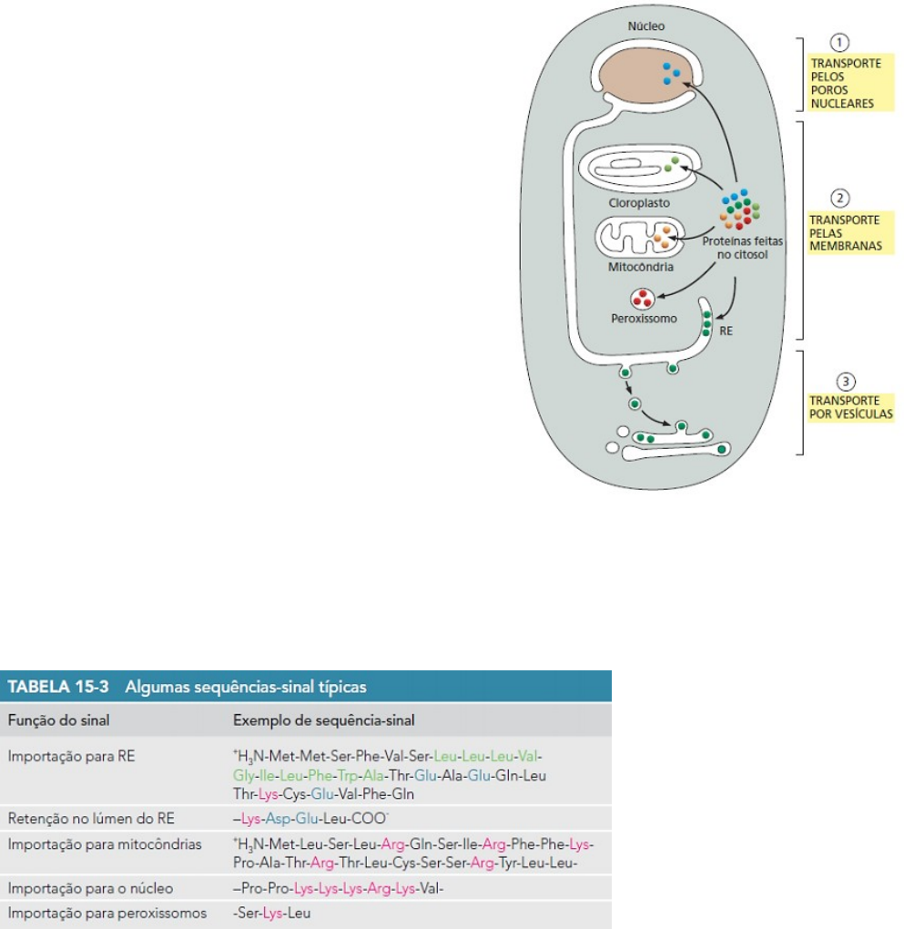 Endereçamento das proteínas Proteínas sintetizadas no citoplasma podem ser encaminhadas para o núcleo, mitocôndria, peroxissomo ou ficarem armazenadas no citoplasma (em células vegetais podem ir para o cloroplasto) Proteínas sintetizadas no RER serão encaminhadas para o interior da organela e obrigatoriamente a maioria das proteínas serão encaminhadas para o Complexo de golgi e de lá ir para outras organelas ou serem liberadas no meio extracelular Como saber que precisam ser encaminhadas para determinada organela ? Pela sinalização de sequência sinal de aminoácidos essa sequência fica na primeira porção da proteína que é sintetizada OBS: As que ficam no citoplasma não possuem essa sequência sinal Importação para o Núcleo Núcleo possui uma bi camada chamada de envelope nuclear descontinuo que possui espaços chamados poros. O complexo do poro é o que garante a seletividade pois tudo antes de chegar ao núcleo passa por ele A proteína precisa possuir uma sequência sinal indicando que o lugar dela é no núcleo, uma molécula sinalizadora específica (sinal de localização nuclear) e a molécula Importina precisam se ligar a ela para que ocorra a importação A Importina passa a molécula pelo complexo do poro e transporta até o interior do Núcleo RamGTP faz a separação da Importina e da molécula A RamGTP leva a Importina de volta para o citoplasma Importina no citoplasma precisa se separar da RamGTP e para essa separação ocorrer gera gasto de energia, a RamGTP (trifosfato) se torna RanGDP (difosfato) – ocorre a perda de 1 fosfato e a separação delas Mitocôndria Membrana externa: contém a proteína receptora que irá se ligar a sequência sinal da proteína que precisa ser importada São sintetizadas no citoplasma e precisam conter a sequência sinal na primeira porção da proteína Depois que a proteína for sintetizada por completo, as proteínas Chaperonas iram auxiliam no dobramento (proteína tridimensional – dobrada) correto da proteína. Para essas proteínas entrarem nas mitocôndrias precisam estar na forma desdobrada e a sequência sinal irá se ligar a proteína receptora da membrana externa, quem faz esse desdobramento também são as chaperonas Após a ligação essa proteína vai ser encaminhada para o interior da mitocôndria através do canal (translocador) que está presente nas 2 membranas Agora que a proteína já está no interior da mitocôndria (Matriz mitocondrial) a sequência sinal é clivada (removida) pela enzima Peptidase Sinal e a proteína irá se dobrar novamente com o auxílio das chaperonas Proteína madura e funcional Chaperonas: dobramento e desdobram a proteína Reticulo endoplasmático rugoso – bicamada Transporte por vesículas Na membrana do reticulo possui um canal chamado de translocon/translocador e é por esse canal que proteína é inserida no interior do reticulo Começou a tradução e a primeira porção da proteína precisa ser a sinal após toda sintetização vem uma proteína chamada PRS (partícula de reconhecimento de sinal) e após reconhecer o sinal essa PRS se liga a sequência sinal e a tradução é interrompida por um momento. PAUSA A PRS vai se ligar ao seu receptor que está no translocador, quando isso ocorre a tradução volta, PLAY. Agora que retornou essa proteína que está sendo sintetizada já vai sendo encaminhada para o reticulo através do translocon. A primeira porção que entra no reticulo é a sequência sinal e ela é clivada pela peptidase-sinal após essa remoção a proteína continua sendo sintetizada (tradução) no reticulo, enquanto ainda está sendo introduzida (sintetizada) no reticulo ocorre a primeira modificação – GLICOSILAÇÃO (adição de 14 resíduos de açúcar – 2 de N-acetilglicosamina, 9 de Manose e 3 de Glicose), Depois que é finalizada a glicosilação a proteína está praticamente pronta e algumas enzimas (GLICOSIDADES – remove glicose e MANOSIDASE – remove manose) iram remover 3 resíduos de açúcar (2 de Glicose e 1 de Manose) Após a remoção do 1 resíduo de glicose já é possível observar as chaperonas auxiliando no dobramento da proteína Agora as maiorias das proteínas precisam ser encaminhadas para o complexo de golgi (por vesículas) E é lá ocorre + 1 modificação: GLICOSILAÇÃO TERMINAL, é adicionado novos resíduos de açúcar a essas glicoproteínas (esses resíduos dependem do tipo de glicoproteína que foi sintetizada) ou quando não é necessário não passa pela GLICOSILAÇÃO TERMINAL e não é adicionado mais nada (pula a etapa) – o que determina se passa ou não é a sequência de aminoácidos Transporte dessa proteína Podem ser encaminhadas para o meio extracelular ou endossomo que encaminha para o Lisossomo Como as vesículas sabe p onde encaminhas as glicoproteínas? As vesículas estão recobertas (revestidas) por proteínas e são elas que indicam para onde precisa ir E o que faz com que a proteína seja inserida na vesícula é a sequência de aminoácidos Revestimento de vesículas · Cop 2 – transporte entre RER e complexo de golgi · Cop 1 – encaminham p secreção ou para serem inseridas na membrana e tem umas que fazem · Clatrina – encaminha para o lisossomo