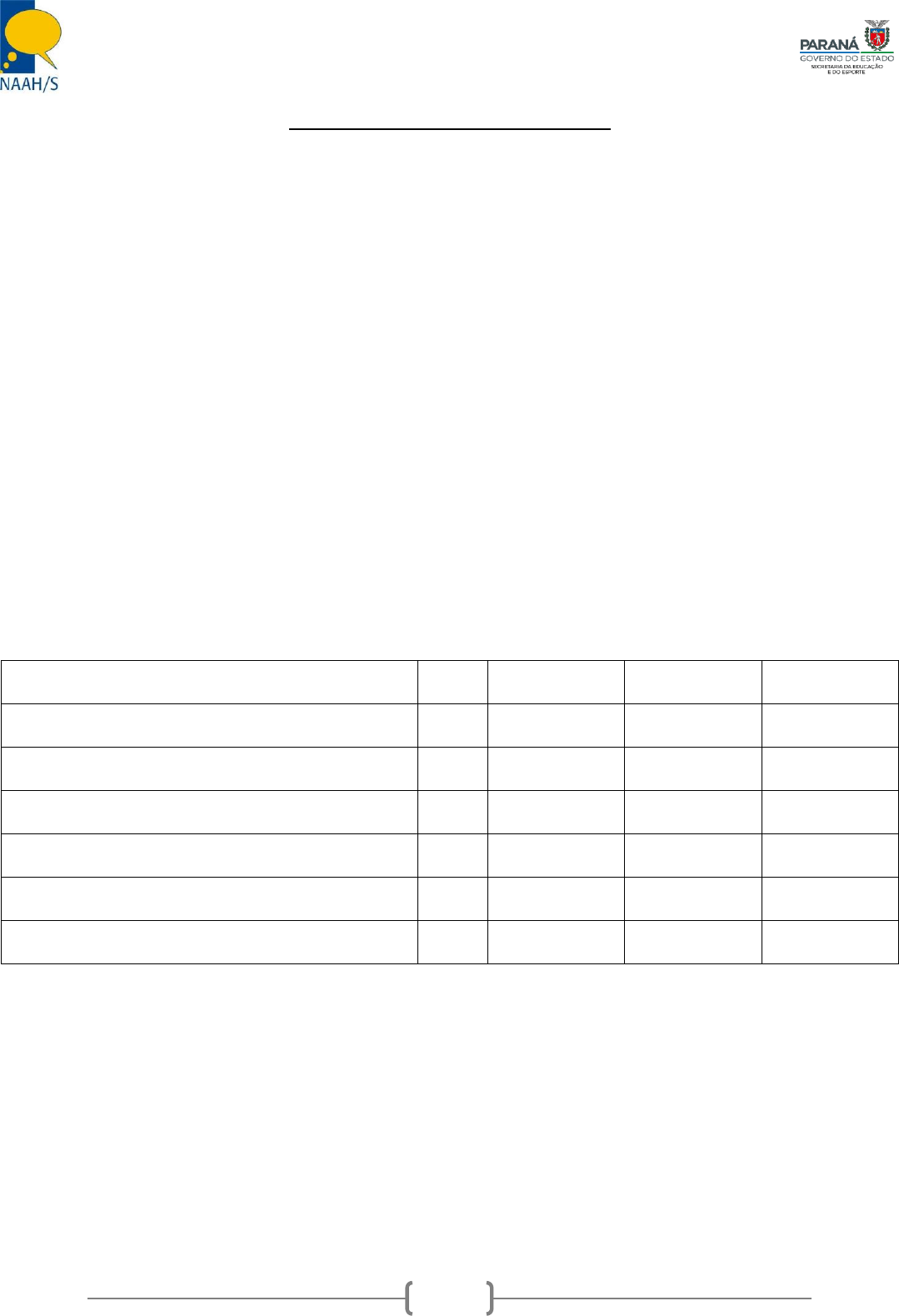 NAAH/S – PARANÁ – NÚCLEO DE ATIVIDADES DE ALTAS HABILIDADES/SUPERDOTAÇÃO Avenida Juscelino Kubitscheck, 2372 – Londrina – PR – CEP: 86.020-000 Telefone: (43) 3323-7630 – Ramal: 202 E-mail: ldanaahs@seed.pr.gov.br 1 ROTEIRO DE ENTREVISTA COM OS PAIS Entrevistador: ____________________________________________________________________ Nome do Aluno: ___________________________________________________________________ Data de Nascimento: ____/____/________ Naturalidade: _____________________________________________________________________ Nome do responsável pela criança: ___________________________________________________ Nome do Pai: _____________________________________________________________________ Escolaridade do Pai: _______________________________________________________________ Profissão do Pai: __________________________________________________________________ Nome da Mãe: ____________________________________________________________________ Escolaridade da Mãe: ______________________________________________________________ Profissão da Mãe: _________________________________________________________________ Quem mora na casa? Nome Idade Sexo Estado Civil Parentesco Como foi encaminhado para S.R.? ________________________________________________________________________________ Posição da criança na ordem das gestações e dos nascimentos. ________________________________________________________________________________ Fez pré-natal? ________________________________________________________________________________ NAAH/S – PARANÁ – NÚCLEO DE ATIVIDADES DE ALTAS HABILIDADES/SUPERDOTAÇÃO Avenida Juscelino Kubitscheck, 2372 – Londrina – PR – CEP: 86.020-000 Telefone: (43) 3323-7630 – Ramal: 202 E-mail: ldanaahs@seed.pr.gov.br 2 Intercorrências? Abortos? ________________________________________________________________________________ Idade da mãe na época do nascimento: ________ anos Tempo de gestação: ________ Nascimento: Parto realizado em casa ou na maternidade? Qual? Que tipo de parto (normal, cesariana, teve complicações)? A criança recebeu alta junto à mãe? ________________________________________________________________________________ ________________________________________________________________________________ Peso e altura da criança ao nascer: ___________________________________________________ A criança foi planejada, desejada? Como o casal estava emocionalmente? ________________________________________________________________________________ ________________________________________________________________________________ Foi amamentado no peito até quantos meses? Usou mamadeira, por quanto tempo? ________________________________________________________________________________ Alimenta-se bem, atualmente, tem alguma restrição? ________________________________________________________________________________ Já fez alguma cirurgia? Qual? ________________________________________________________________________________ É alérgico à algum alimento ou medicamento? ________________________________________________________________________________ Apresente problemas de visão ou audição? ________________________________________________________________________________ Faz uso de medicamentos? Quais? Que horários e doses? ________________________________________________________________________________ Faz algum tratamento médico, psicológico, fonoaudiológico, pedagógico ou outro? Qual? Desde quando e com que frequência? ________________________________________________________________________________ Dorme sozinho ou acompanhado? Como é o seu sono: calmo, agitado, fala durante o sono, apresenta sonambulismo, bruxismo, terror noturno, enurese, baba muito quando dorme? ________________________________________________________________________________ Época em que ocorreram as primeiras palavras e frases? _________________________________ Em que mês ou idade andou e quando controlou os esfíncteres? ________________________________________________________________________________ NAAH/S – PARANÁ – NÚCLEO DE ATIVIDADES DE ALTAS HABILIDADES/SUPERDOTAÇÃO Avenida Juscelino Kubitscheck, 2372 – Londrina – PR – CEP: 86.020-000 Telefone: (43) 3323-7630 – Ramal: 202 E-mail: ldanaahs@seed.pr.gov.br 3 Destro ou canhoto? ________________________________________________________________ Apresenta alguma sensibilidade sensorial significativa? (Paladar, audição, visão, tato, olfato). Exemplifique. ________________________________________________________________________________ ________________________________________________________________________________ ________________________________________________________________________________ ________________________________________________________________________________ Traços de personalidade (tímida, extrovertida, retraída, afetuosa, etc.): ________________________________________________________________________________ ________________________________________________________________________________ ________________________________________________________________________________ ________________________________________________________________________________ Sociabilidade Hábitos de lazer da família e da criança. ________________________________________________________________________________ ________________________________________________________________________________ ________________________________________________________________________________ Faz amigos com facilidade, diverte-se – como, quando e com quem - mais velhos ou mais novos, atividade de lazer, comportamento nos ambientes em geral. Frequenta outros ambientes além da escola? Quais? ________________________________________________________________________________ ________________________________________________________________________________ _________________________________________________________