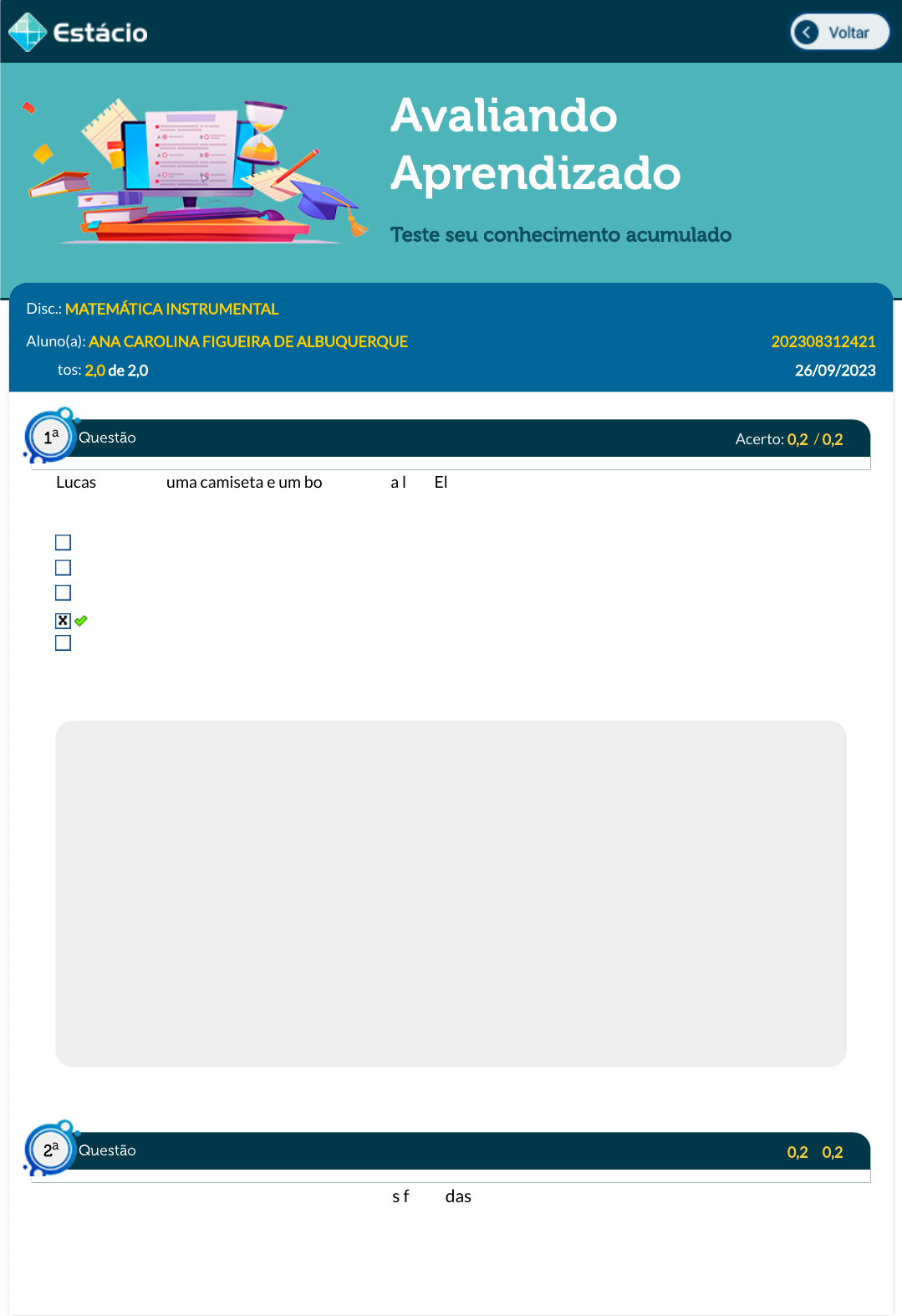 Aluno(a): ANA CAROLINA FIGUEIRA DE ALBUQUERQUE 202308312421