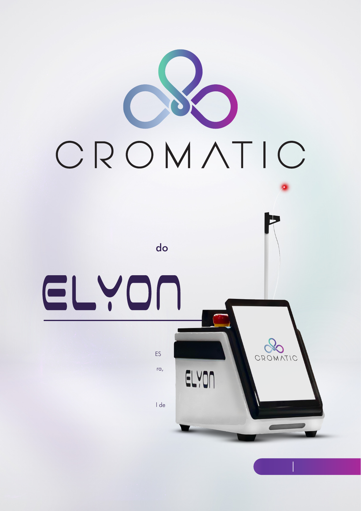 1 Sistema a LASER de diodo por fibra óptica INSTRUÇÕES DE USO Modelo(s): ELYON ONE 980, ELYON ONE 1470 e ELYON DUAL® 980/147 Fabricado por: CROMATIC TECHNOLOGIES LTDA Rua José Stupello, nº 104, Parque Anhanguera, CEP: 14095-530, Ribeirão Preto, São Paulo Fone: (16) 4009-8900 CNPJ: 11.978.342/0001-05 Responsável Técnico: Eng. Marcelo Manoel de Oliveira CREA-SP nº 5071001788 Registro ANVISA nº: 80689880023 REV.02 Ago/2023 2 3 INDÍCE Simbologia; Abreviações e Acrônimos; 1. Introdução; 2. Instruções para o uso do produto; 3. Condições especiais de armazenamento, conservação e manipulação do produto; 4. Orientação para o uso ou aplicações seguras e corretas do produto; 5. Manutenção e serviços; 6. Procedimentos adicionais para utilização; 7. Precauções em caso de inutilização do produto; 8. Sensibilidade a condições ambientais previsíveis nas situações normais de uso; 9. Sistema de fornecimento da energia LASER; 10. Preocupações em caso de inutilização do produto; 11. Termo de garantia; 12. Termo de responsabilidade; 4 7 9 27 33 33 37 40 41 41 46 47 48 49 4 PARA MAIOR SEGURANÇA: Leia e entenda todas as instruções contidas nesta “Instruções de Uso” antes de instalar ou operar o produto. Este manual deve ser lido por todos os operadores do produto. Todos os operadores devem ser treinados quanto às técnicas e precauções de segurança para a radiação a laser. Os Usuários (operadores) devem estar plena e constantemente consciência dos perigos que podem ser causados pela radiação a laser. A fim de manter o nível máximo de segurança, os usuários devem usar o equipamento seguindo as indicações e limites de utilização contidas neste manual. A CROMATIC se exime de toda responsabilidade em caso de uso diferente daquele que é descrito neste manual. Este tópico descreve os símbolos do sistema a laser e seus significados Símbolo padrão de atenção. Consultar documentos acompanhantes. Consultar Manual do Usuário Consulte os documentos que acompanham o produto Símbolo de proteção contra gotas d’água caindo verticalmente. Necessidade de proteção contra luz solar direta. Necessidade de proteção contra umidade e qualquer outro tipo de líquido que possa contaminar o produto, no transporte e armazenamento Cuidado no transporte e armazenamento (frágil). ISO 7000-W001 IEC 60878 Segurança 01 IEC 60601-1 IEC 60529 ISO 15223-1 ISO 15223-1 ISO 7000-0624 ISO 15223-1 IPX0 SIMBOLOGIA Símbolo Referência padrão Descrição 5 Símbolo de posicionamento de transporte e armazenamento (sentido para cima) Símbolo de limite de temperatura para armazenamento e transporte. [0 a 55 °C] Identificação do fabricante Data de Fabricação Número de série Proibido o descarte em lixo comum Atenção, Tensão perigosa Sistema DESLIGADO Símbolo de número máximo de embalagens idênticas que podem ser empilhadas uma sobre a outra (transporte e armazenamento). ISO 15223-1 ISO 15223-1 ISO 15223-1 ISO 15223-1 ISO 7000-2497 ISO 15223-1 Diretiva REEE EN 50419 ISO 3864-B.3.6 IEC 60417-5008 0 °C Min. 55 °C Máx. Sistema LIGADOIEC 60417-5007 Símbolo de terminal de aterramento para proteçãoIEC 60417-5019 Equalização potencialIEC 60417-5021 Corrente alternada. Pedal IEC 60417-5032 IEC 60417-5114 6 Símbolo de parte aplicada de tipo B de acordo com o grau de proteção contra choque elétrico Radiação não ionizante IEC 60601-1 IEC 60417-5140 Conector da trava remota (conforme definido em 3.67 do IEC 825-1) Aviso de radiação laser Símbolo indicando emissão de radiação laser Fibra óptica Botão de emergência – Desligamento geral Etiqueta de explicação da classificação Laser Etiqueta de explicação da região de saída de emissão Laser IEC 60825-1 IEC 60825-1 ISO 7010-W004 IEC 60825-1 IEC 60825-1 IEC 60825-1 Símbolo de obrigatório o uso de óculos de proteção ISO 3864 Etiqueta das características da saída LASER Modelo ELYON ONE 980, ELYON ONE 1470 E ELYON DUAL® 980/1470 IEC 60825-1 7 ABREVIAÇÕES E ACRÔNIMOS Light Amplification by Stimulated Emission of Radiation (amplificação da luz por emissão de radiação estimulada) Graus Centígrados/Celsius Light-emitting diode (Diodo Emissor de Luz) Graus Fahrenheit Segundo Milissegundo Display de Cristal Líquido TFT-Touchscreen Polegada(s) Diâmetro Milímetro LASER °C LED °F Sec msec LCD “ Ø mm Centímetro Metro Micrômetro Nanômetro Ampere(s) Corrente Alternada Volt Unidades, quilovolt Tensão de alimentação efetiva Volt AC Watt cm m µm nm A AC V kV Vrms VAC W Etiqueta avisos e cuidados Fibra óptica Etiqueta de identificação do equipamento modelo(s) ELYON ONE 980, ELYON ONE 1470 e ELYON DUAL 980/1470 IEC 60825-1 IEC 60601-1 8 Metro Micrômetro Nanômetro Ampere(s) Corrente Alternada HertzHz Centímetrocm m µm nm A AC Volt Unidades, quilovolt V kV Tensão de alimentação efetiva Volt AC Watt Hertz Quilohertz Giga-Hertz Onda Contínua Remoção de pelos Comissão Eletrotécnica Internacional Joule Joule por centímetro quadrado Quilograma Infravermelho próximo Densidade Ótica Distância Nominal de Risco Ocular Zona Nominal de Risco Ocular Exposição Máxima Admissível Grau de proteção dos óculos Pulse Width Modulation (Modulação por largura de pulso) Fator de Proteção Solar Resfriamento Termoelétrico Vrms VAC W Hz KHz GHz CW HR IEC J J/cm² Kg NIR OD NOHD NOHZ MPE L PWM SPF TEC 9 1.3 - Indicação de uso do Produto A família de equipamentos ELYON ONE 980, ELYON ONE 1470 E ELYON DUAL® 980/1470 são equipamentos eletromédicos para aplicações em ablação, liquefação tecidual, coagulação, hemostasia e termo retração tecidual nas regiões da derme e hipoderme superior através do efeito de foto térmico a técnica é baseada na introdução de uma fibra óptica e aplicação de luz LASER no espectro do infravermelho na região da derme e hipoderme superior. 1.4 – Princípio Físico e fundamentos da tecnologia do produto, aplicados para s