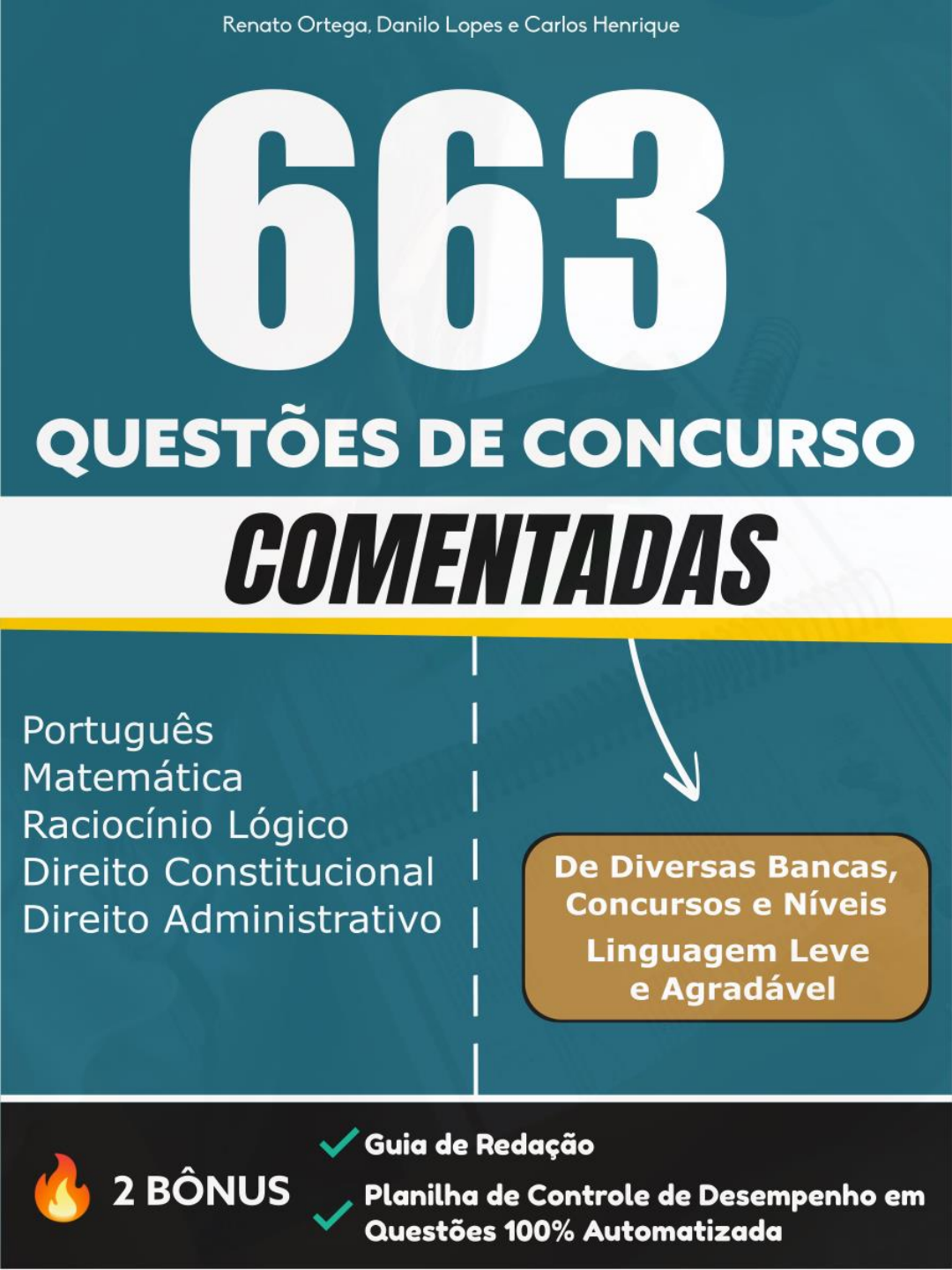 Apresentação CAPA 2 Apresentação APRESENTAÇÃO Olá, concurseiros e concurseiras. Mais do que ninguém, o concurseiro sabe a importância da resolução massiva de questões ao longo da preparação. Apesar disso, muita gente que se prepara para concursos públicos acaba focando desamiadamente na parte teórica e acaba esquecendo de resolver muitas questões como forma de treinar o que está estudando. Sabendo disso, preparamos este guia de questões de concurso comentadas das 04 principais matérias: português, direito constitucional, direito administrativo e matemática/raciocínio lógico. Ele foi preparado por 03 concurseiros, que como eu já disse acima, é quem mais sabe a importância de treinar por meio de questões. Você vai encontrar questões das mais diversas bancas, especialmente das maiores, como CESPE, FCC, FGV e VUNESP, e dos mais diversos concursos, cargos e níveis. Na primeira parte, colocamos as questões sem os comentários para que você tente resolver e em seguida você confere o seu desempenho no gabarito ao final das questões. Na segunda parte, você encontrará todas as questões comentadas em detalhes, com uma linguagem leve e agradável, como se estivéssemos conversando com você. Nada daquela linguagem chata e robótica dos livros acadêmicos. Em alguns comentários você vai, inclusive, ter tabelas e/ou esquemas didáticos feitos por nós como forma de melhor explicar a resposta daquela questão. Ao todo, são 663 questões de concurso comentadas! Por meio dessa dinâmica, você conseguirá entender o que errou em cada matéria, assunto e questão específica e dessa forma conseguirá evoluir, sobremaneira, nos seus estudos e no seu nível de conhecimento nas 04 disciplinas-base dos concursos públicos. Espero que este guia de questões seja um pilar relevante no seu processo de aprendizado e, principalmente, um pilar que te ajudará a obter êxito no mundo dos concursos. Vamos treinar! 22 Sumário SUMÁRIO 2 Português Questões........................................................................................................5 Gabarito.........................................................................................................8 Questões Comentadas.................................................................................10 Direito Constitucional Questões......................................................................................................16 Gabarito.......................................................................................................19 Questões Comentadas.................................................................................21 Direito Administrativo Questões......................................................................................................27 Gabarito.......................................................................................................30 Questões Comentadas.................................................................................32 Matemática/Raciocínio Lógico Questões......................................................................................................38 Gabarito.......................................................................................................41 Questões Comentadas.................................................................................43 3 Português: Amostra 01 - IBFC - 2015 - COMPANHIA DOCAS . Sobre o conteúdo da tirinha, é correto afirmar que: a) A conclusão do último quadradinho corresponde à aceitação de algo consensual. b) O texto propõe uma reflexão sobre a liberdade de expressão na internet. c) Os comentaristas da internet devem ter poder de decisão sobre qualquer assunto. d) As falas apresentam uma proposta de censura aos comentários feitos na internet. 02 – IBFC – 2017 - EMBASA - Técnico Operacional (Edificações). Assinale a alternativa que está correta de acordo com a norma culta. a) Não se resolveram os problemas da empresa. b)A redução da maioridade penal trata-se de um assunto polêmico. c)Ouviu-se as testemunhas do caso e nada foi comprovado. d)Não se precisam de justificativas para essa atitude. 5 Português- Amostra 03 - FCC – 2017 – ARTESP - Agente de Fiscalização à Regulação de Transporte - Tecnologia de Informática. Cem anos depois, vivemos um momento semelhante... A expressão que serve de complemento ao termo semelhante, reforçando a coesão com o período imediatamente anterior e atendendo às regras de regência padrão, é a) perante aquele. b) daquele. c) com aquele. d) àquele. e) para aquele. 4- Ano: 2017 Banca: VUNESP Órgão: Câmara de Barretos – SP Prova: Advogado texto associado Texto associado O termo destacado na frase “Ninguém deixa de falar comigo por falta de telefone.” forma uma expressão com sentido de a) finalidade. b) origem. c) modo. d) meio. e) causa. 1196 Português- Amostra 05-Ano: 2018 Banca: VUNESP Órgão: Prefeitura de Sertãozinho – SP Prova: Psicólogo Da mesma forma que a evolução tecnológica tornou a informação mais acessível ________ pessoas, ela ______ trouxe novos desafios, entre _______ estão as falsas notícias. De acordo com a norma-padrão, as lacunas da frase devem ser preenchidas, respectivamente, com: a) às … lhes … os quais b) as … lhes … as quais c) às … lhe … aos quais d) as … lhe … os quais 1197 Português- Amostra 119 1 2 3 4 5 B A D E A GABARITO 8 119 Português- Amostra 01 - IBFC - 2015 - COMPANHIA DOCAS . Sobre o conteúdo da tirinha, é correto afirmar que: a) A conclusão do último quadradinho corresponde à aceitação de algo consensual. b) O texto propõe uma reflexão sobre a liberdade de expressão na internet. c) Os comentaristas da internet devem ter poder de decisão sobre qualquer assunto. d) As falas apresentam uma proposta de censura aos comentários feitos na internet. COMENTÁRIO: Questões assim são boas para exemplificar que há