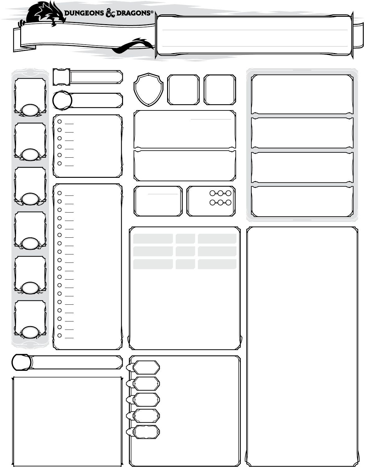 RAÇA CLASSE & NÍVEL NOME DO JOGADOR NOME DO PERSONAGEM ANTECEDENTES EXPERIÊNCIATENDÊNCIA EQUIPAMENTO CARACTERÍSTICAS E TRAÇOS PONTOS DE VIDA MÁXIMO Força Destreza Constituição Inteligência Sabedoria Carisma PC PE PP PO PP SABEDORIA PASSIVA (PERCEPÇÃO) OUTRAS PROFICIÊNCIAS & IDIOMAS ATAQUES & MAGIAS Acrobacia (Des) Adestrar Animais (Sab) Arcanismo (Int) Atletismo (For) Atuação (Car) Enganação (Car) Furtividade (Des) História (Int) Intimidação (Car) Intuição (Sab) Investigação (Int) Medicina (Sab) Natureza (Int) Percepção (Sab) Persuasão (Car) Prestidigitação (Des) Religião (Int) Sobrevivência (Sab) FALHAS TESTE CONTRA MORTEDADOS DE VIDA NOME BONUS DANO/TIPO Total SUCESSOS IDEAIS VÍNCULOS FRAQUEZAS TRAÇOS DE PERSONALIDADE CLASSE DE PONTOS DE VIDA ATUAL PONTOS DE VIDA TEMPORÁRIOS INICIATIVA DESLOCAMENTO BONUS DE PROFICIÊNCIA FORÇA DESTREZA CONSTITUIÇÃO INTELIGÊNCIA SABEDORIA CARISMA TESTES DE RESISTÊNCIA INSPIRAÇÃO PERÍCIAS ARMADURA TM & © 2014 Wizards of the Coast LLC. Permission is granted to photocopy this document for personal use. Traduzido pela Comunidade D&D Next da RedeRPG no Facebook e editado por JZanin. Acesse: www.facebook.com/groups/dednext NOME DO PERSONAGEM OLHOS IDADE PESOALTURA CABELOPELE FACÇÃO HISTÓRIA DO PERSONAGEM APARÊNCIA DO PERSONAGEM CARACTERÍSTICAS & TRAÇOS ADICIONAIS ALIADOS & ORGANIZAÇÕES SÍMBOLO DA FACÇÃO TESOURO TM & © 2014 Wizards of the Coast LLC. Permission is granted to photocopy this document for personal use. Traduzido pela Comunidade D&D Next da RedeRPG no Facebook e editado por JZanin. Acesse: www.facebook.com/groups/dednext NOME E CLASSE CONJURADORA M AG IA S C O N H EC ID AS NOME DA MAGIA 1 0 2 3 6 7 8 9 4 5 HABILIDADE DE CONJURAÇÃO CD DA MAGIA BONUS DE ATAQUE DE MAGIA PRECES E TRUQUES NÍVEL DA MAGIA ESPAÇOS GASTOSESPAÇOS TOTAIS TM & © 2014 Wizards of the Coast LLC. Permission is granted to photocopy this document for personal use. Traduzido pela Comunidade D&D Next da RedeRPG no Facebook e editado por JZanin. Acesse: www.facebook.com/groups/dednext Limpar Ficha: Nome do Personagem: Gloriel Classe & Nível: Guerreira 1 Raça: Aasimar (flagelador) Antecedentes: Escolhida Divina (acólito) Tendência: Leal e Boa Nome do Jogador: Filipe Moraes Experiência: 0/300 Traços de Personalidade: Sou sempre polida e respeitosa, mas não tolero abusos. Ideais: As pessoas merecem ser tratadas com dignidade. Vínculos: Devo combater o mal sem hesitar, sem fraquejar. Fraquezas: Não confio em estranhos, pois o mal assume várias facetas. Características e Traços: Características de Raça: - Cura pelas Mãos - Portadora da Luz - Resistência Celestial (dano radiante e necrótico) - Visão no Escuro - Consumação Radiante Características de Classe: - Estilo de Luta (duelismo) - Retomar o Fôlego (1/descanso) Classe de Armadura: 18 Pontos de Vida Atual: Pontos de Vida Temporário: Dados de Vida Total: Dados de Vida: 1d10 Arma 1: Espada Longa Arma 2: Lança Arma 3: Ataques & Magias: - Espada longa (versátil 1d10; 1,5 kg) - Lança (arremesso; distância 6/18; versátil 1d8; 1,5 kg) Peças de Cobre: Peças de Prata: Peças de Electrum: Peças de Ouro: 15 Peças de Platina: Equipamento: - Cota de Malhas (desvantagem; 27,5 kg) - Escudo (3 kg) - Pacote de Aventureiro (29,5 kg) - Símbolo Sagrado (amuleto; 0,5 kg) - Roupas Comuns (1,5 kg) - Vestimentas Religiosas (1 kg) - Rosário de Orações - Varetas de Incenso (5) - Algibeira (0,5 kg) Peso Total: 63,5 kg Iniciativa: Bônus de Ataque 1: +4 Bônus de Ataque 2: +4 Bônus de Ataque 3: Pontos de Vida Máximo: 12 Deslocamento: 9 m Teste Contra a Morte - Sucesso 1: Off Teste Contra a Morte - Sucesso 2: Off Teste Contra a Morte - Falha 1: Off Dano / Tipo 1: 1d8+2/cortante Dano / Tipo 2: 1d6+2/perfurante Dano / Tipo 3: Teste Contra a Morte - Sucesso 3: Off Teste Contra a Morte - Falha 2: Off Teste Contra a Morte - Falha 3: Off Bônus de Proficiência: +2 Bônus de Inspiração: Teste de Resistência - Força: +4 Check Box - Teste de Resistência - Força: Yes Teste de Resistência - Destreza: 0 Check Box - Teste de Resistência - Destreza: Off Teste de Resistência - Constituição: +4 Check Box - Teste de Resistência - Constituição: Yes Teste de Resistência - Inteligência: 0 Check Box - Teste de Resistência - Inteligência: Off Teste de Resistência - Sabedoria: +1 Check Box - Teste de Resistência - Sabedoria: Off Teste de Resistência - Carisma: +1 Check Box - Teste de Resistência - Carisma: Off Perícia - Atuação: +1 Check Box -Perícia - Atuação: Off Perícia - Enganação: +1 Check Box -Perícia - Enganação: Off Perícia - Intimidação: +1 Check Box -Perícia - Intimidação: Off Perícia - Persuasão: +1 Check Box -Perícia - Persuasão: Off Perícia - Adestrar Animais: +1 Check Box -Perícia - Adestrar Animais: Off Perícia - Intuição: +3 Check Box -Perícia - Intuição: Yes Perícia - Medicina: +1 Check Box -Perícia - Medicina: Off Perícia - Percepção: +3 Check Box -Perícia - Percepção: Yes Perícia - Sobrevivência: +1 Check Box -Perícia - Sobrevivência: Off Perícia - Arcanismo: 0 Check Box -Perícia - Arcanismo: Off Perícia - História: 0 Check Box -Perícia - História: Off Perícia - Investigação: 0 Check Box -Perícia - Investigação: Off Perícia - Natureza: 0 Check Box -Perícia - Natureza: Off Perícia - Religião: +2 Check Box -Perícia - Religião: Yes Perícia - Acrobacia: 0 Check Box -Perícia - Acrobacia: Off Perícia - Furtividade: 0 Check Box -Perícia - Furtividade: Off Perícia - Prestidigitação: 0 Check Box -Perícia - Prestidigitação: Off Perícia - Atletismo: +4 Check Box -Perícia - Atletismo: Yes Outras Proficiências & Idiomas: Proficiências: Armaduras (todas), Armas (leves e marciais), Escudos Idiomas: Comum, Celestial, Infernal e Abissal Nome do Personagem 2: Gloriel Aparência do Personagem: História do Personagem: A criança tocada pelos anjos, Gloriel, a guerreira escolhida pelos deuses. N