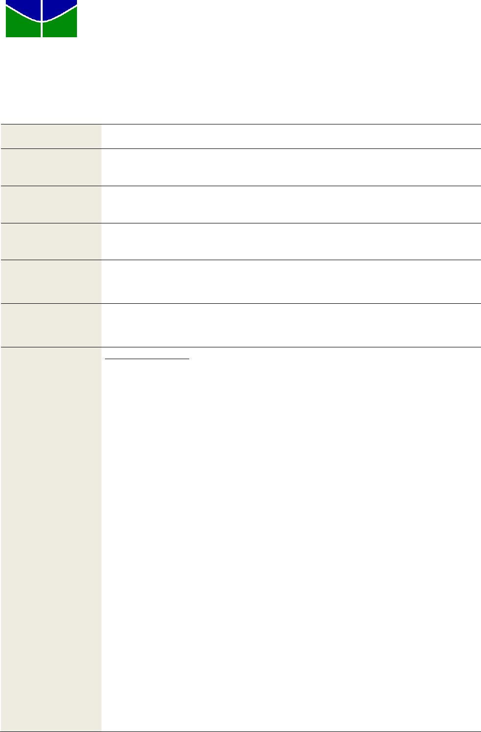 Universidade de Brasília Instituto de Química Colegiado de Graduação e Extensão Plano de Ensino QUÍMICA INORGÂNICA BÁSICA 2º Semestre de 2023 Curso Instituto de Química – Código IQD114464 Professor Responsável Kaline Amaral Wanderley e-mail: kaline.wanderley@unb.br Local e Horário BSA S BT 26/13 2N12 4N34 Atendimento aos alunos Por e-mail institucional (kaline.wanderley@unb.br) ou pelo SIGAA e presencialmente no LIMA (Laboratório de Inorgânica e Materiais) do IQ-UnB. Objetivos da Disciplina Apresentar aos alunos os fundamentos da química inorgânica, incluindo os temas Ligações químicas e estrutura molecular, ácidos e bases, oxidação/redução, Química descritiva sistemática dos elementos representativos. Metodologia de Ensino Aulas expositivas através de recursos visuais, apresentações multimídia e quadro negro. Resolução de exercícios e avaliações do aprendizado através de listas de exercícios, atividades e provas. Programa Conceitos básicos: 1. Ligação química e estrutura molecular. Ligação iônica: sólidos, tipos básicos de estruturas cristalinas, energia (entalpia) reticular. Ligação covalente: estruturas de Lewis, geometrias de moléculas (RPECV), diagramas orbitais para moléculas diatômicas, forças intermoleculares. 2. Ácidos e Bases. Conceitos: Arrhenius, Brönsted-Lowry e Lewis. Força relativa de ácidos e bases. Ácidos e bases duros e macios, superácidos. 3. Oxidação/redução. Números formais de oxidação. Diagaramas de Latimer e Frost. Estabilidade das espécies em solução aquosa. 4. Química descritiva sistemática dos elementos representativos: - Li, Na, K, Rb, Cs. - Be, Mg, Ca, Sr, Ba. - B, Al, Ga, In, Te. - C, Si, Ge, Sn, Pb. - N, P, As, Sb, Bi. - O, S, Se, Te. - F, Cl, Br, I. Enfatizando: (i) Propriedades dos elementos e compostos mais comuns. (ii) Obtenção de produtos básicos como: ácido sulfúrico, amônia, hidróxido de sódio, dentre outros. (iii) Transformação de recursos minerais: fosfato, bauxita e outros. (iv) Impacto ambiental. 2 Critérios de Avaliação • A avaliação do aprendizado do aluno será baseada no seu desempenho nas provas a serem realizadas, sendo aprovado o aluno que tiver menção final igual ou superior a MM. • Os estudantes que não atingirem a frequência mínima de 75% serão reprovados automaticamente por falta pelo sistema SIGAA. A presença será contabilizada pela sua presença e participação em sala de aula. Bibliografia recomendada 1. D. F. Shriver, P. W. Atkins, C. H. Langford "Inorganic Chemistry" 3a. Ou 4a. Edição, Ed. Bookman. Edição original 1999 2. J. D. Lee "Química Inorgânica não tão Concisa", Editora E. Blucher, São 3. Paulo, 1996.B. Douglas, D. H. McDaniel, J.J. Alexander. “Concepts and Models of Inorganic Chemistry”. 2nd or 3rd edition, John Willey & Sons. 4. J. E. Huheey, E. A. Keiter, R. L. Keiter "Inorganic Chemistry - principles of structure and reactivity" 4th edition, haper collins college publishers, 1993. 5. Barros H. C., "Química Inorgânica, uma Introdução" Editora da UFMG, Belo Horizonte, 1989. 6. Cotton, F. A., Wilnson, G., Gaus, P. L.; "Basic Inorganic Chemistry". 7. Greenwood, N. N., Earnshaw, A, "Chemistry of the Elements"- Pergamon Press, London, 1984. 8. Heslop, R. B., Jones, K.; "Química Inorgânica"; Editora Calouste, Lisboa, 1976. Brasília, 25 de agosto de 2023. __________________________________ Profa. Dra. Kaline Amaral Wanderley (kaline.wanderley@unb.br)