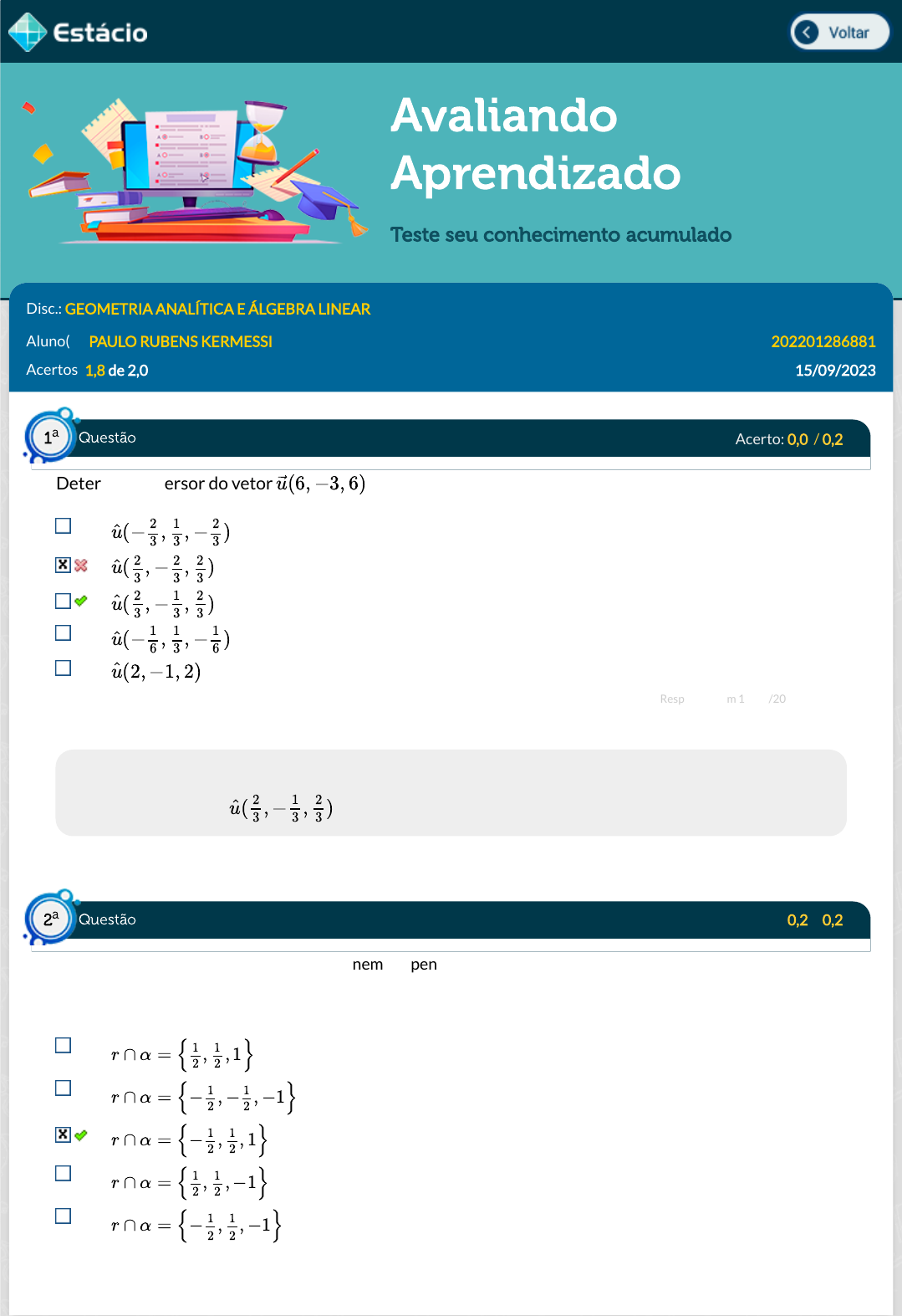 Acertos: 1,8 de 2,0 15/09/2023