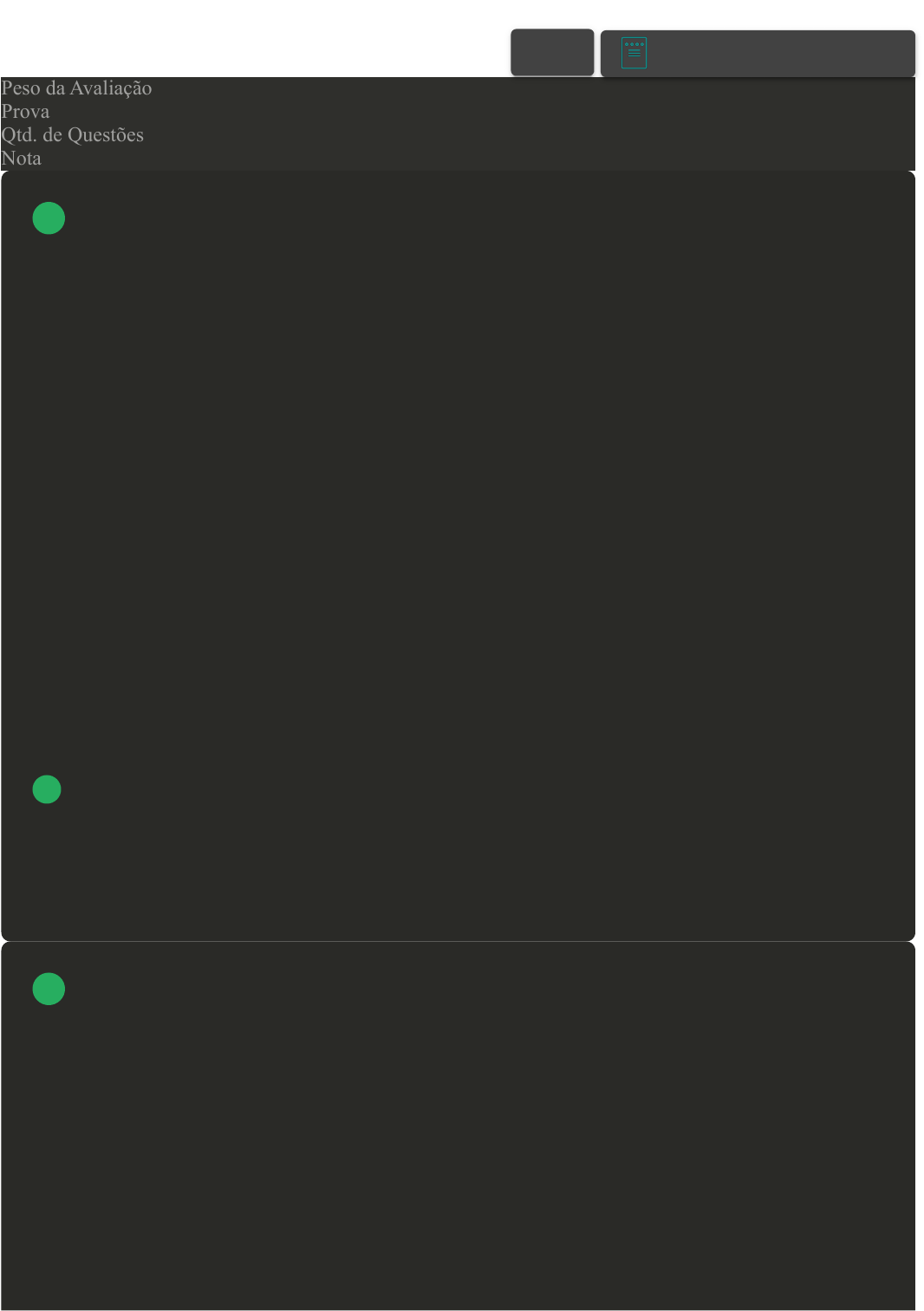 30/10/2023, 19:10 Avaliação da Disciplina about:blank 1/12 Prova Impressa GABARITO | Avaliação da Disciplina (Cod.:644847) Peso da Avaliação 10,00 Prova 65945495 Qtd. de Questões 20 Nota 9,00 Segundo MEC (2000, p.11), algumas providências são essenciais para o acesso do aluno ao conteúdo curricular. Nesse sentido, leia atentamente as frases a seguir e assinale a alternativa correta: I. Colocar o aluno em uma posição, em sala, para que ele possa obter total atenção do professor. II. Identificar quais suportes o aluno necessita para frequentar o ambiente escolar com segurança. III. Assegurar o direito ao conhecimento prático na utilização do dinheiro. A As frases I e II estão corretas. B As frases I e III estão corretas. C Todas as frases estão corretas. D As frases II e III estão corretas. Não existe uma receita pronta em relação à avaliação, mas sim alguns requisitos que pode dar um norte ao professor. Nesse sentido, leia atentamente as frases a seguir e assinale a alternativa correta: I. Ter motivação para auxiliar o aluno na compreensão de que o erro faz parte da aprendizagem. VOLTAR A+ Alterar modo de visualização 1 2 30/10/2023, 19:10 Avaliação da Disciplina about:blank 2/12 II. Ter paciência é essencial quando se trabalha com alunos com deficiência, precisando compreender e respeitar suas limitações. III. Ter confiança e determinação em todas as conquistas fortalece a autoestima de ambos os lados. A As frases II e III estão corretas. B As frases I e II estão corretas. C As frases I e III estão corretas. D Todas as frases estão corretas. Quando falamos em leitura e escrita há um nível de classificação para identificar em qual nível de compressão o aluno encontra-se. Nesse sentido, classifique V para as sentenças verdadeiras e F para as falsas: ( ) No pré-silábico não há relação sonora com a palavra escrita. ( ) No silábico há relação entre letras e fonemas. ( ) No alfabético já apresenta escrita convencional. ( ) No silábico-alfabético começa a aparecer relação sonora com as letras. Agora, assinale a alternativa que apresenta a sequência CORRETA: A F – F – V – V. B V – V – V – F. C F – V – F – V. D V – F – V – F. 3 30/10/2023, 19:10 Avaliação da Disciplina about:blank 3/12 O papel do professor na aprendizagem dos alunos com deficiência intelectual é algo muito relevante, suas funções vão determinar e conduzir esses alunos para um desenvolvimento integral. Partindo desse pressuposto, escreva V para as sentenças verdadeiras e F para as sentenças falsas: ( ) Uma das funções do professor é ter um bom planejamento pedagógico. ( ) O professor tem que saber ajustar o ensino a partir das necessidades de cada aluno. ( ) Cada professor deve possuir competência técnica pedagógica para exercer seu papel. ( ) O professor deve trabalhar apenas em cima das limitações dos alunos afim de superá-las. Agora, assinale a alternativa que apresenta a sequência correta: A V – V – V – F. B F – V – V – F . C V – F – V – V . D V – V – F – V. O processo de aquisição da leitura e da escrita são apresentados através de métodos e propostas. Sobre o processo de alfabetização construtivista, classifique V para as sentenças verdadeiras e F para as falsas: ( ) São propostas de trabalho a partir de textos. ( ) Textos impressos entregues aos alunos. ( ) Práticas com textos significativos. ( ) Métodos puramente tradicional, feito com uso de cartilha. Agora, assinale a alternativa que apresenta a sequência CORRETA: 4 5 30/10/2023, 19:10 Avaliação da Disciplina about:blank 4/12 A F – V – F – V. B V – V – V – V. C V – V – V – F. D F – F – V – V. Para que a aprendizagem ocorra com sucesso, algumas características podem auxiliar na construção do conhecimento lógico matemático. Partindo deste pressuposto, classifique F para as frases falsas e V para as frases verdadeiras: ( ) Para desenvolver a capacidade perceptiva, o professor pode trabalhar com a altura das crianças, assim eles aprenderão, na prática, exemplos de maior e menor. ( ) A motivação deve ser sempre bem trabalhada, necessitando de mediação do professor, principalmente com atividades complexas. ( ) Trabalhar o raciocínio dos alunos com deficiência Intelectual não é tarefa fácil, pois eles apresentam dificuldades, tornando difícil a resolução de situações problemas. ( ) Fazer atividades em grupos ajudará os alunos que tem maior dificuldade em prestar atenção nas atividades formais. A V – F – V – V. B V – V – V – V. C F – F – V – V. D F – V – F – F. A inclusão gera mudança e implica na remoção de muitas barreiras. Além dessas barreiras, existem algumas adaptações que devem ser realizadas. Partindo desse contexto, quais são essas adaptações, assinale a alternativa correta: 6 7 30/10/2023, 19:10 Avaliação da Disciplina about:blank 5/12 A Adaptações atitudinais – adaptações conceituais. B Adaptações curriculares – adaptações de materiais. C Adaptações curriculares – adaptações atitudinais. D Adaptações intelectuais – adaptações de materiais. As rimas são utilizadas no auxílio da aprendizagem, nas práticas da leitura e da escrita. Com relação aos objetivos das rimas, leia atentamente as frases a seguir e assinale a alternativa correta: I. Reconhecer as rimas das palavras. II. Ler as palavras globalmente. III. Avançar no processo de alfabetização. A As frases II e III estão corretas. B Todas as frases estão corretas. C As frases I e II estão corretas. D As frases I e III estão corretas. Sabemos que os alunos que têm deficiência Intelectual passam pelos mesmos processos de aquisição da leitura e da escrita que os outros alunos. No entanto, com ritmo e capacidade cognitiva mais lenta. Nesse sentido, como o professor deve organizar a turma: A Integrar os alunos conforme sua realidade e dar maior ênfa