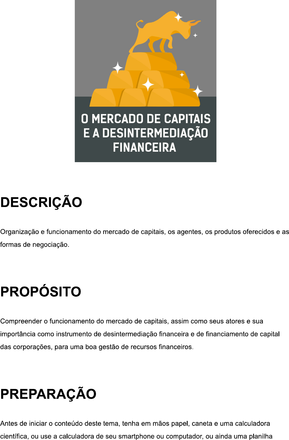 Tema 4 - O Mercado de Capitais e a Desintermediação Financeira