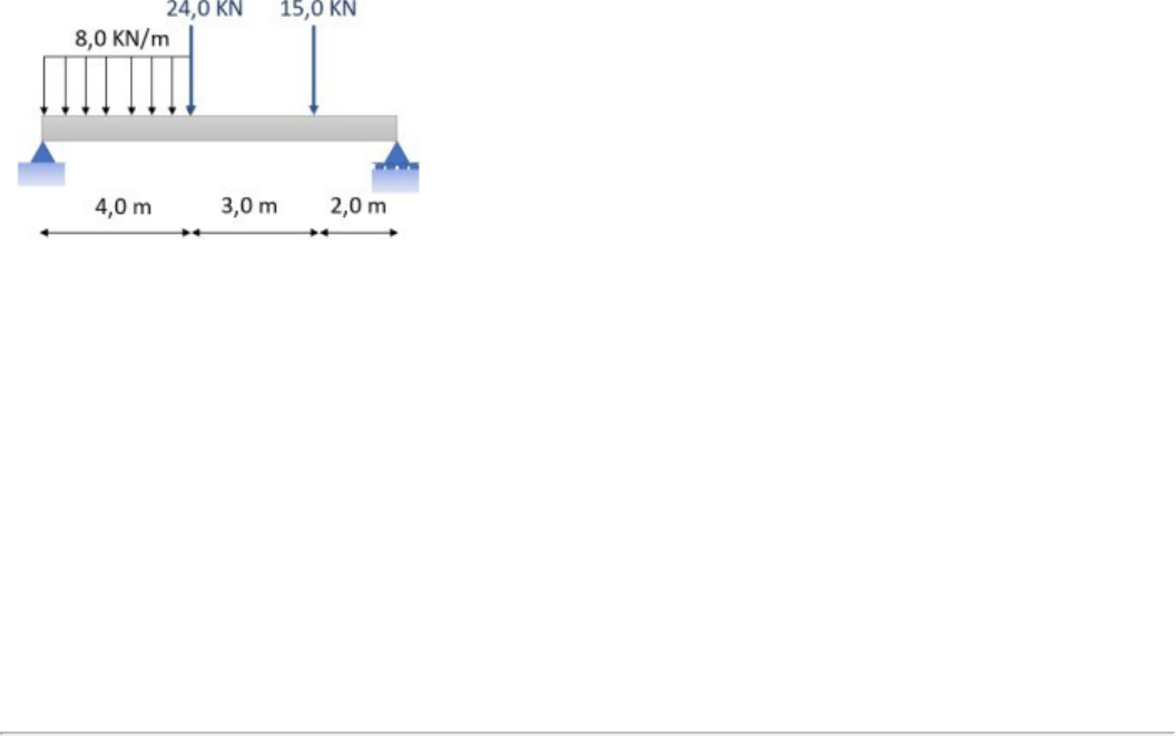 Avaliação I - Individual (Cod.:886218) Código da prova: 72510578 Disciplina: Resistência dos Materiais Avançada (ECE06) Período para responder: 16/10/2023 - 31/10/2023 Peso: 1,50 1 - Quando uma viga suporta vários tipos de carregamentos, como mais de duas forças concentradas, ou quando suporta cargas distribuídas, especialmente as variáveis ao longo do comprimento, é mais fácil montar os diagramas de força cortante e momento fletor se considerarmos as relações existentes entre força, força cortante e momento fletor. Considerando a viga na imagem anexa, classifique V para as sentenças verdadeiras e F para as falsas: ( ) As reações de apoio são 41,6 KN e 29,4 KN, da esquerda para a direita, respectivamente. ( ) O valor do Momento Fletor a quatro metros do apoio esquerdo é de 102,2 KN.m. ( ) O Momento fletor máximo da viga é de 120 Mpa. ( ) O Esforço Cortante a dois metros do apoio esquerdo é de 25,6 KN. Assinale a alternativa que apresenta a sequência CORRETA: A) F - F - V - V. B) V - V - F - V. C) F - F - V - F. D) V - V - F - F. 2 - O momento fletor representa a soma algébrica dos momentos relativas a seção YX, contidos no eixo da peça, gerados por cargas aplicadas transversalmente ao eixo longitudinal. Considere uma situação contendo uma barra simétrica sob flexão por um momento fletor M. Com base nesta situação, analise as sentenças a seguir: I- O momento fletor, na estática, é composto por duas forças iguais e opostas, que se cancelam na soma. II- O momento fletor é zero em qualquer eixo perpendicular ao seu plano. III- Os esforços internos deverão ser igual ao momento fletor M. IV- A estática pode determinar a distribuição real de tensões na seção transversal. Assinale a alternativa CORRETA: A) Somente a sentença I está correta. B) As sentenças III e IV estão corretas. C) As sentenças I e II estão corretas. D) As sentenças I e III estão corretas. 31/10/2023, 16:13 about:blank about:blank 6/6 3 - As funções de cisalhamento e momento podem ser representadas em gráficos denominados diagramas de força cortante e momento fletor, em que as direções positivas indicam que a carga distribuída age para baixo na viga e a força cortante interna provoca uma rotação em sentido horário. Para a viga anexa, determine o valor do momento fletor no apoio direito: A) -28,0 KN.m B) -20,0 KN.m C) -22,0 KN.m D) -25,0 KN.m 4 - Algumas vigas não são estaticamente determinadas, isto é, não podem ter suas forças determinadas apenas pela estática. Observe as vigas na figura anexa e associe os itens, utilizando o código a seguir: I- Estaticamente determinada. II- Estaticamente indeterminada. ( ) Viga da figura (a). ( ) Viga da figura (b). ( ) Viga da figura (c). ( ) Viga da figura (d). Assinale a alternativa que apresenta a sequência CORRETA: FONTE DA IMAGEM: BEER, F. P. et al. Estática e mecânica dos materiais. Porto Alegre: AMGH, 2013. A) I - II - I - II. B) II - I - II - I. C) II - II - I - I. D) I - I - II - II. 5 - As vigas de concreto armado são uma das formas de construção utilizadas amplamente em prédios e outras estruturas, possuindo barras de aço internas no concreto. Sobre essas vigas, classifique V para as sentenças verdadeiras e F para as falsas: ( ) As barras de aço servem para suportar forças de tração. ( ) O concreto possui baixa resistência à compressão. ( ) O concreto é um material de ruptura frágil. ( ) As barras de aço são posicionadas na parte central do eixo da viga. Assinale a alternativa que apresenta a sequência CORRETA: A) V - F - V - F. B) F - F - V - V. C) F - V - F - V. D) V - V - F - F. 6 - Uma barra de seção quadrada de lado 150 mm está sob carregamento excêntrico, como na figura a seguir. A força P aplicada é igual a 100 N, e a distância de aplicação "e" é igual a 300 mm. Sabendo que o momento de inércia de uma seção quadrada é conforme a equação a seguir, calcule a máxima tensão nesta barra e assinale a alternativa CORRETA: I = b.(h^3)/12 FONTE DA IMAGEM: https://www.continuummechanics.org/eccentriccolumnbuckling.html. Acesso em 30 jul .2019. A) 52,1 kPa. B) 63,2 kPa. C) 57,8 kPa. D) 48,9 kPa. 7 - Na flexão pura e na flexão simples, a deformação específica longitudinal da viga varia linearmente com a distância até a linha neutra (LN), na qual a deformação é nula, sendo máxima nas faces superior e inferior (quando y = c e y = d, respectivamente). Considere que em uma viga atua na face superior uma tensão máxima de compressão igual a - 30 MPa. O material da viga apresenta módulo de elasticidade longitudinal igual a 180 GPa, sabendo que a altura da seção transversal dessa viga é 60 cm e que o centroide está localizado a 27 cm da base, conforme figura anexa, classifique V para as sentenças verdadeiras e F para as falsas: ( ) A tensão máxima de tração da viga é de 20 Mpa. ( ) A máxima deformação específica longitudinal de compressão que ocorre na face superior dessa viga é de - 0,000167. ( ) A máxima deformação específica longitudinal de tração que ocorre na face inferior dessa viga é de 0,000136. ( ) Considerando a Inércia da seção transversal Iz = 0,002 cm4, o Momento resultante será M = 181,82 KN.m. Assinale a alternativa que apresenta a sequência CORRETA: A) V - F - F - F. B) V - F - F - V. C) F - V - V - F. D) F - V - V - V. 8 - A deflexão de vigas é um dos mecanismos que leva à falha destas, sendo um dos tópicos importantes na engenharia civil. Quanto ao mecanismo de deflexão de vigas, classifique V para as opções verdadeiras e F para as falsas: ( ) Uma viga simétrica sob flexão pura permanece simétrica. ( ) A deformação nas vigas são provocadas pelos momentos fletores, não por forças cortantes. ( ) Uma viga de maior altura possuirá menor resistência à flexão. ( ) A lei de Hooke é aplicável em materiais homogêneos de comportamento linear elástico. Assinale a alternativa que apresenta a sequência CORRE