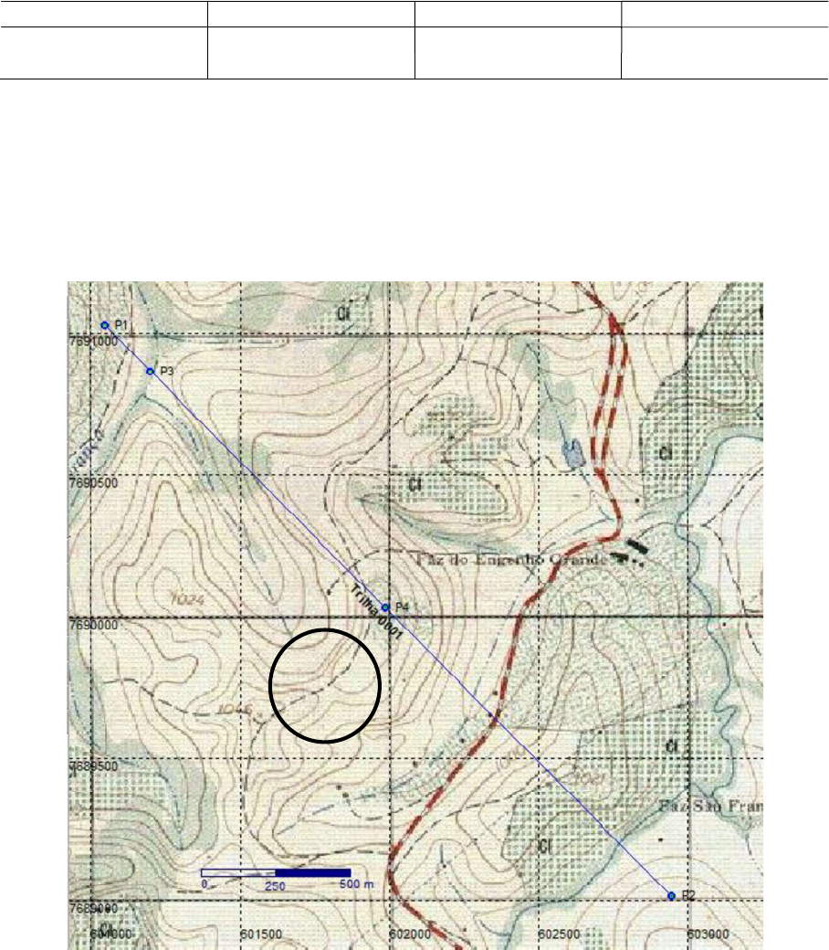 1 Questão 1 Conforme solicitado, foram encontrados os pontos mais alto e mais baixo do perfil topográfico P1P2, cujos dados estão na tabela 1, abaixo. Tabela 1 - Coordenadas dos pontos 3 e 4 Ponto Coordenada x (m) Coordenada y (m) Altitude (m) P3 601203,55 7690857,59 955 P4 601990,26 7690025,40 1040 O ponto 4, de maior elevação no perfil corresponde a um topo de morro, e o ponto 3, mais baixo, corrsponde a um fundo de vale. A feição de sela mais próxima da linha do perfil está próxima do ponto P4, conforme demarcado com um círculo preto no mapa da figura 1, abaixo. Figura 1 - Localização dos pontos e feição de sela. 2 Questão 2 Dadas as altitudes do terreno em escrita preta, foram calculadas e dispostas as altitudes da plataforma em vermelho na figura 2, abaixo. Como a plataforma apenas apresenta declividade na direção sul, sua cota é a mesma ao longo das linhas horizontais. Figura 2 - Cotas do terreno e da plataforma Cálculo das áreas das seções de corte: ScA = 20[(12,2+7,6)/2 + 9,9 + 6,6 + 4,3 + 0,8 + 4,2] = 714 m2 ScB = 20[(14,3+4,2)/2 + 11 + 8,2 + 6,4 + 3,0 + 0,5]= 767 m2 ScC = 20[(12,7+3,6)/2 + 10,8 + 8,6 + 6,8 + 3,6 + 0,8]= 775 m2 ScD = 20[(10,2+4,9)/2 + 9,0 + 7,7 + 5,6 + 3,0 + 0,1]= 659 m2 ScE = 20[(7,2+6,7)/2 + 6,6 + 5,2 + 3,2 + 0,3 + 3,2]= 509 m2 Cálculo do volume total de corte: Vcorte= 20[(714+509)/2 + 767 + 775 + 659] = 56250 m3 14,6 14,2 13,8 13,4 13,0 3 Questão 3 A seção transversal no ponto central foi definida conforme a figura 3, abaixo. A altura em que o talude e o terreno se encontram foi calculada pela comparação das duas retas, que resultou em um desnível de 4,78m. Vale ressaltar que a figura não se encontra em escala e está em preto, o projeto da pista, e em vermelho, o terreno. Figura 3 - Seção transversal da estrada no ponto central Área da seção transversal central foi calculada pelo método dos trapézios como se os taludes fossem verticais (indicação pontilhada), e subtraindo as áreas triangulares dos taludes reais do resultado: Questão 4 O teodolito é por definição uma ferramenta capaz de medir ângulos com precisão. No geral conta também com uma trena a laser integrada, para medição de distâncias. A estação total, além das funções do teodolito, agrega ainda um sistema computadorizado de aquisição de dados, e a capacidade de se geolocalizar por meio de GPS. Esses instrumentos possibilitam a coleta de dados sobre terrenos e estruturas no que tange suas dimensões e posições. Somando a esses dados um sistema de coordenadas cartesianas e princípios de geometria, torna-se prático o cálculo de áreas e de caminhos percorridos, e posteriormente, o cálculo de volumes, com a disponibilidade de dados altimétricos. 4,4 m 20 m 20,6 m 20,22 m 4,78 m
