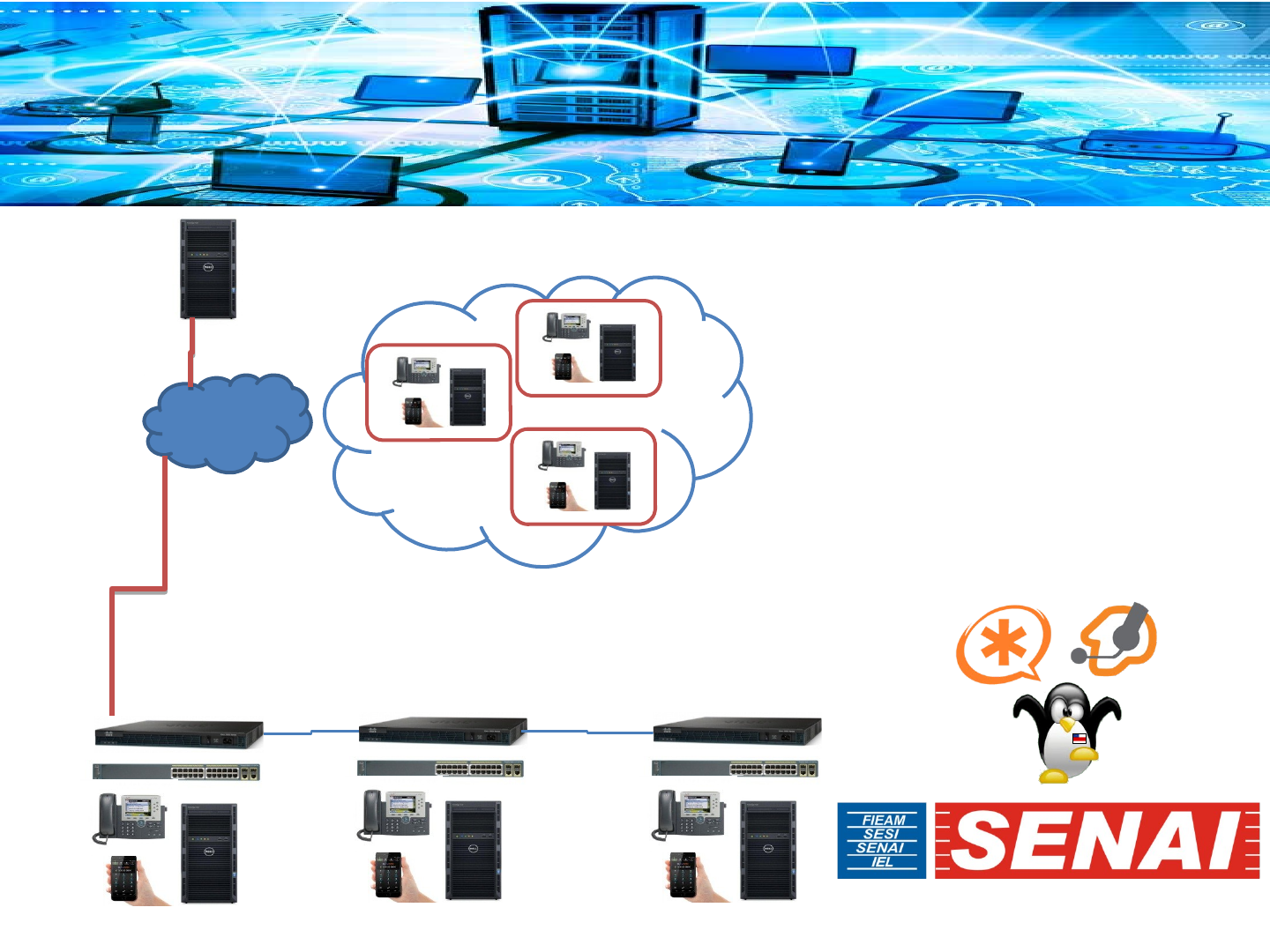 LIGAÇÕES ENTRE EMPRESAS R$ 0,00 INTERNET EMPRESA - A EMPRESA - B EMPRESA - C RJ SP MANAUS TÉCNICO EM REDES DE COMPUTADORES Amazonas LIGAÇÕES PARA CELULAR LOCAL E INTERRURBANO R$ 0,15 LIGAÇÕES PARA FIXO LOCAL E INTERRURBANO R$ 0,05 LIGAÇÕES CUSTO ZERO INTERNET EMPRESA - A EMPRESA - B EMPRESA - C ASTERISK VANTAGENS DESVANTAGENS PRINCIPAIS SERVIÇOS PROTOCOLOS REDE PSTN Amazonas SIP IAX 3900 9300 SIP IAX 3800 9200 SIP IAX 4000 9400 SIP IAX 4100 9500