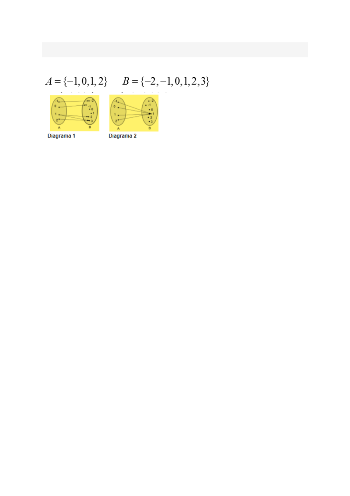 Resposta correta II e III. Cada esquema de flechas abaixo definem ou não uma função de em . Observe as relações representadas nos diagramas 1 e 2 e julgue as afirmativas a seguir: I . O diagrama 1 não representa uma função, pois sobram elementos no conjunto B (sem relação com nenhum elemento em A). II. O diagrama 2 representa uma função, pois cada elemento do conjunto A se relaciona com apenas um, e somente um, elemento do conjunto B. III. O diagrama 1 não representa uma função por conta do elemento 1 (em A) se relacionar com os elementos 2 e 3 (em B). IV. O diagrama 2 não representa uma função, devido ao fato de todos os elementos de A se relacionar apenas com o elemento 1, pertencente ao conjunto B. É correto o que se afirma apenas nas alternativas: