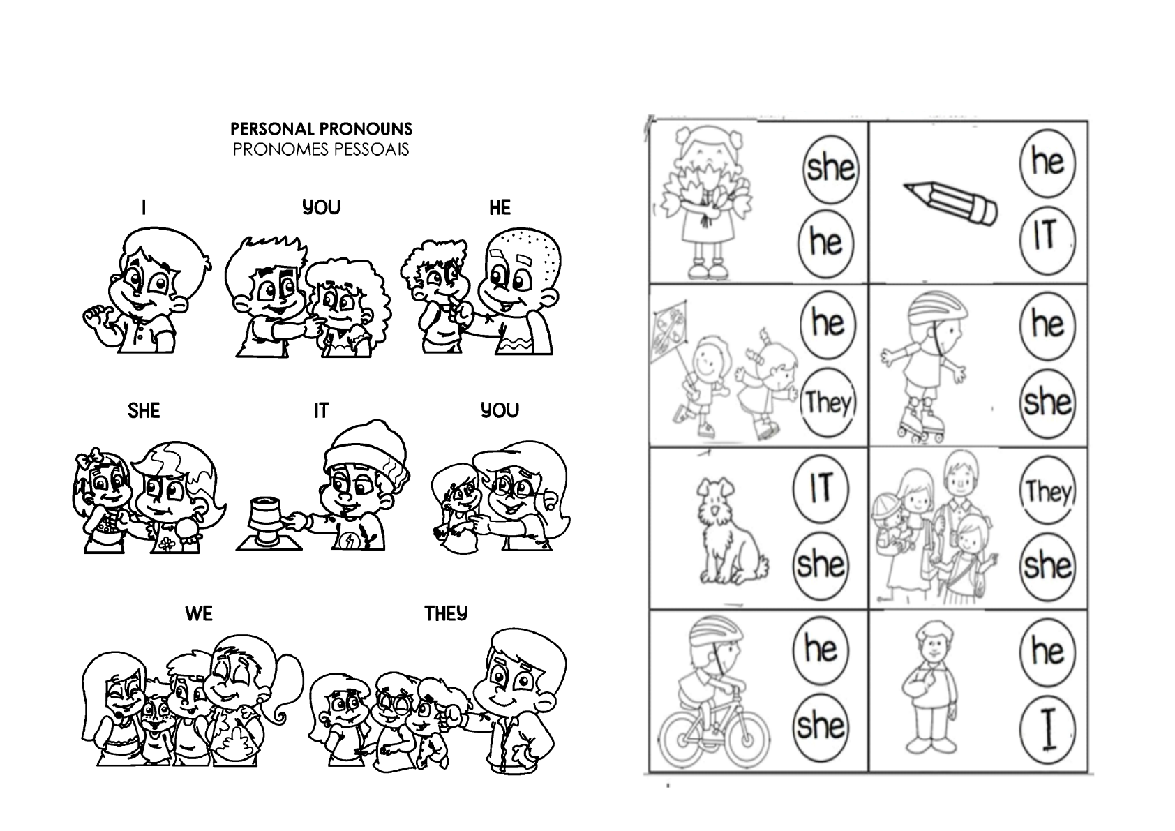 1 - PINTE OS PRONOMES QUES FALAM DE 1 PESSOA SÓ DE YELLOW E 1 - PINTE O PRONOME CORRETO PARA CADA IMAGEM OS QUE FALAM SOBRE MAIS DE 1 PESSOA DE BLUE.