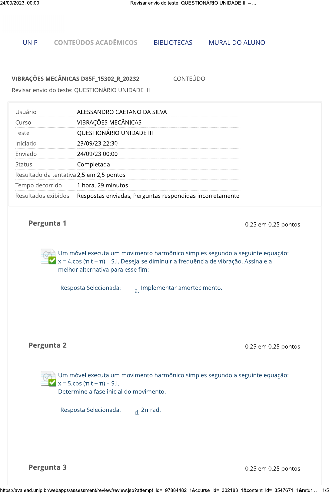 D585F Vibrações Mecânicas - Questionários I ,II,III e IV - AVA UNIP _ Passei Direto