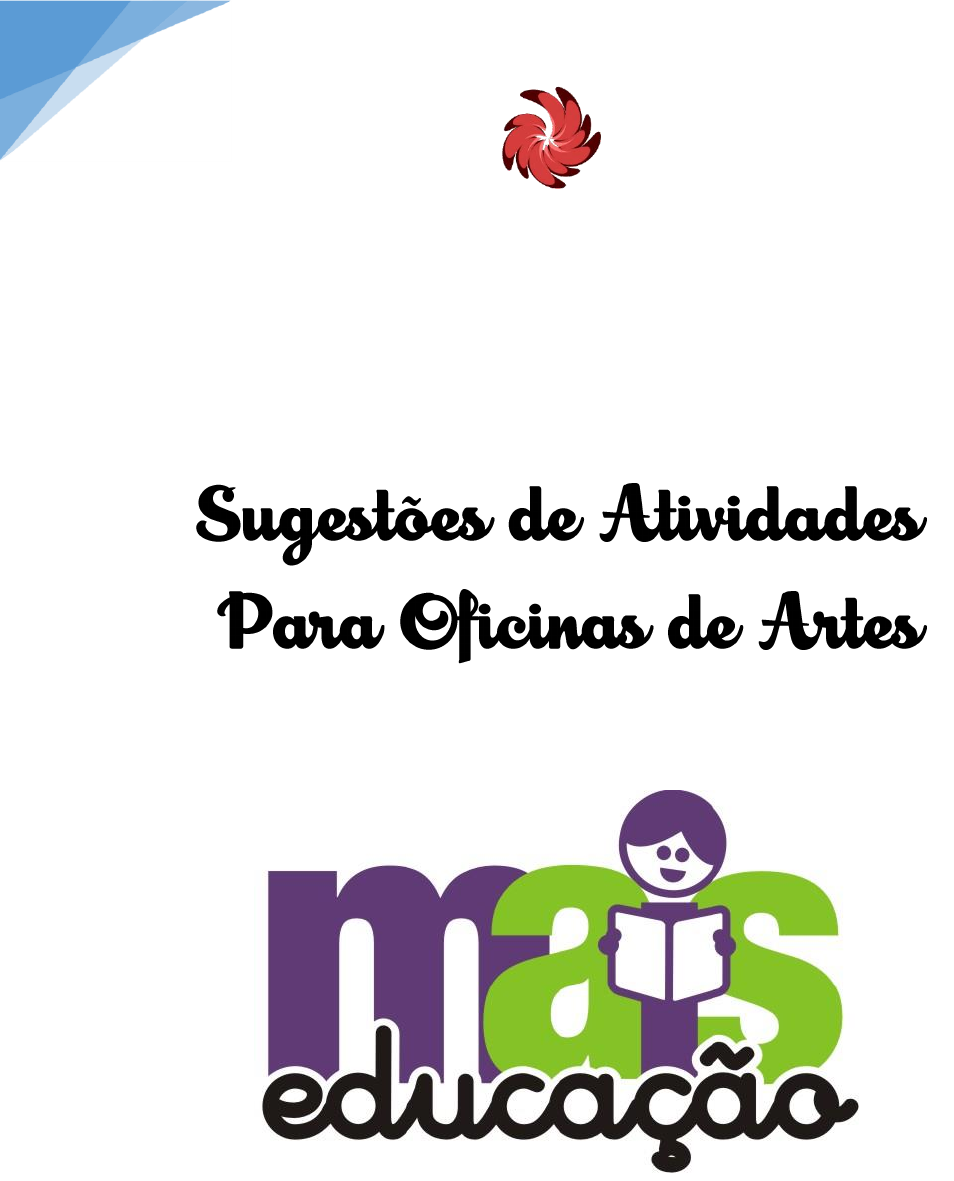 Artes – Programa Mais Educação 1 Portal Redemoinho 2016 Artes – Programa Mais Educação 2 Apresentação Olá pessoal, tudo bem? Me chamo Melqui Azevedo, trabalho como coordenador do Programa Mais Educação na Escola Aprígio Patrício Ramalho, localizada no município de Bananeiras/PB. A ideia de fazer esse apanhado de ideias com sugestões para as oficinas de artes do Programa Mais Educação, surgiu desde quando fui convidado para assumir a coordenação dos trabalhos do Programa Mais Educação. Como não possuía muita experiência, fui pesquisar na internet se existia algum material (apostilas, livros) com sugestões para serem trabalhadas nas oficinas do Programa. Então foi aí que percebi que não tinha nenhum material específico para nortear as oficinas de artes. Mas só agora, depois de dois anos trabalhando e adquirindo experiências, resolvi reunir algumas ideias para ajudar a quem está começando ou já quem tem experiência, mas busca novas experiências. A maioria das fotos são do meu acervo e as outras são de pesquisas retiradas da internet. Boa parte do Google Imagens. IMPORTANTE: Coloquei, nesta apostila, apenas as atividades que considero mais complexas a serem desenvolvidas, seguidas de um passa ao passo para esclarecer alguma eventual dúvida. E, em anexo, dividi em pastas as outras ideias que não precisam de um tutorial. Mas, surgindo alguma dúvida, fiquem a vontade para entrar em contato com a gente via e-mail que teremos prazer em atendê-los. Reduzi algumas imagens desta apostila para caber melhor nas páginas, mas elas também estão nas imagens em anexo, caso precise para imprimi-las e usá-las como molde em alguma atividade. CONTATOS: Site: www.portalredemoinho.com.br E-mail: portalredemoinho@gmail.com http://www.portalredemoinho.com.br/ Artes – Programa Mais Educação 3 ○ IDEIAS UTILIZANDO ISOPOR O isopor é um material bastante utilizado em oficinas de artes, tanto pelo seu valor acessível, como também pela facilidade de ser manuseado pelas crianças. Nas oficinas do Programa Mais Educação, ele pode ser trabalhado de inúmeras formas, vejamos alguns trabalhos: ○ Tela Ilusão de Ótica Material: - 02 folhas de isopor de tamanho e espessura de sua preferência - Caneta hidrocor de cor preta - Tinta de tecido de cores variadas - 01 caneta permanente (cor preta) - Pinceis Como fazer: Em cada folha do isopor, faz-se as linhas como na imagem: linhas verticais (formando um quadrado), em seguida linhas transversais para dá o efeito 3D. Após a pintura e secagem das telas, realiza-se o contorno das linhas com caneta permanente para dá o acabamento. A seta vermelha, em destaque na imagem da tela em miniatura, mostra a união das duas folhas de isopor. Artes – Programa Mais Educação 4 ○ Painéis – Formas geométricas/abstratas Trabalho bem simples de se trabalhar com as crianças e o resultado final é sensacional. Abusem da imaginação dos alunos, fazendo com que rabisquem figuras geométricas e abstratas nas telas de isopor. Dá pra fazer um painel dos trabalhos produzidos e deixar expostos em alguma parede da escola. É certeza de sucesso e satisfação dos alunos por verem seus trabalhos sendo valorizados. Material: - Folhas de isopor de tamanho 30cm x 40cm (ou de sua preferência) - Canetas hidrocor - 01 caneta permanente (cor preta) - Marcador permanente - Pinceis Como fazer: Pedir para as crianças fazerem os desenhos, em seguida realizar a pintura. Após a secagem, realiza-se o contorno das linhas com caneta permanente para dá o acabamento. Artes – Programa Mais Educação 5 ○ Telas de Isopor Utilizando Fita Dupla Face Como fazer: Muito prática também essa atividade. Utilizamos a fita dupla face para entrelaçar a tela. Depois é só usar a criatividade e fazer uma bela pintura. Após secar, é só puxar uma das faces da fita e o resultado ficará será assim: Fotos: Imagens do Google Para as crianças menores, há esse modelo que é mais simples: Percebam que nessa última imagem ainda não tinha utilizado o lápis permanente nas telas, pois ainda não estavam totalmente secas. Com isso, é visível que não apresenta um acabamento legal. Daí a importância, para um desempenho melhor dos trabalhos, o uso do marcador permanente. Material: - Fita crepe / Folhas de isopor / Tintas de tecido / Pinceis Artes – Programa Mais Educação 6 ○ Desenhos com Traços Simples Essa atividade pode ser desenvolvida de duas maneiras: pedir para que os alunos façam desenhos livres e, em seguida, façam a pintura ou utilizar desenhos que tenham traços simples e o próprio instrutor poderá riscar as figuras no isopor. Como fazer: Se tiver dificuldade em desenhar, basta pesquisar no Google Imagens por “desenhos de traços simples”, “desenhos simples”, “desenhos fáceis” que aparecerá centenas de imagens. Depois é só colar no Word, ampliar a imagem para o tamanho desejado e imprimir. Recorta, risca o contorno do desenho no isopor e pede para os alunos realizarem a pintura. Se for crianças maiores, pode pedir para elas tentarem fazer o desenho olhando. Não esquecer de, depois de pronto, contornar com a caneta permanente. Material: - Folhas de isopor / Tintas de tecido / Caneta permanente / Pinceis Artes – Programa Mais Educação 7 ○ Aplicando EVA Essa representação de árvore ganha um efeito 3D com a utilização do EVA. Simples demais também para fazer e as crianças se envolvem bastante. Como fazer: Basta riscar o formato da árvore no isopor, cortar o EVA em tiras e faz rolinhos. Depois é só colar! Essa próxima opção também é fantástica! O tronco da árvore que é um pouco mais trabalhoso, mas as crianças maiores tirarão de letra. Por ser papeis mais duros, você pode usar o papel 40 ou 60 para o tronco ficar mais firme. Foto: Imagens do Google Artes – Programa Mais Educação 8 ○ Criando Personagens Infantis Pessoal, vocês não irão acreditar na empolgação dos alunos durante a criação