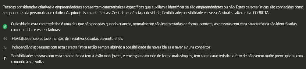 Pessoas consideradas criativas e empreendedoras apresentam características específicas que auxiliam a identificar se são empreendedores ou não. Estas características são conhecidas como componentes da