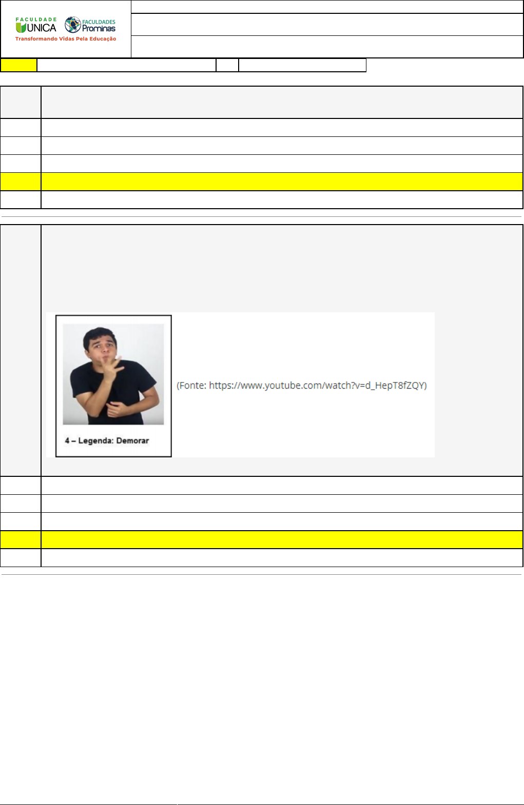 24/03/2022 09:55:57 1/3 REVISÃO DE SIMULADO Nome: DAYS STEPHENN LOIOLA ALVES GRANJEIRO Disciplina: Língua Brasileira de Sinais II Respostas corretas são marcadas em amarelo X Respostas marcardas por você. Questão 001 IF-RR 2015 adaptada No nível lexical, há necessidade do uso de expressão facial na interpretação de A) sentenças com significados negativos. B) sentenças em aspecto. C) sentenças interrogativas. X D) itens nos quais a ENM é parte constitutiva. E) produção topicalização do objeto. Questão 002 COPEVE-UFAL 2019 No que se refere às expressões faciais na Libras, podemos dizer que a parte inferior do rosto codifica modificações em nível lexical; no caso dos verbos, informações adverbiais. Um exemplo encontrado em Libras de modificação verbal é a marcação por meio do inflar de bochechas, conforme o exemplo a seguir: Este marcador atribui ao léxico: A) Emoção. B) Pessoa. C) Número. X D) Intensidade. E) Gênero. 24/03/2022 09:55:57 2/3 Questão 003 A sentença abaixo reproduzida se trata de uma oração: X A) Exclamativa. B) Imperativa. C) Interrogativa. D) Afirmativa. E) Negativa. Questão 004 COVEST-COPSET 2019 Nas línguas de sinais, as expressões não manuais compreendem dois papéis: A) representação espacial e condição de dominância manual. B) restrições na formação do sinal e concordância número-pronominal. X C) construções fonéticas e predominância dos universais linguísticos. D) diferenciação morfológica e construção do tipo SVO. E) marcação de construções sintáticas e diferenciação de itens lexicais. Questão 005 IBADE - 2019 Os sinais manuais são frequentemente acompanhados por expressões faciais que podem ser consideradas gramaticais (Bahan, 1995 e Quadros, 1999). Tais expressões também são chamadas de A) expressões para-manuais. X B) marcações não-manuais. C) sinalizações faciais. D) expressões gramaticais. E) marcações faciais. 24/03/2022 09:55:57 3/3 Questão 006 FADESP- 2021 Conforme Felipe (2007), as línguas de sinais utilizam as expressões faciais e corporais para estabelecer tipos de frases. Assim, “precisa-se estar atento às expressões facial e corporal que são feitas simultaneamente com certos sinais” (FELIPE; MONTEIRO, 2007, p. 64). Em frases negativas, essas expressões são essenciais. Observe: Nesse caso, temos um exemplo de negação feito através do processo de A) intensificador representado pela boca fechada junto ao sinal afirmativo. X B) incorporação de um movimento contrário ou diferente do sinal negado. C) acréscimo do sinal “não” ou “jamais” feito com as mãos junto à frase. D) negação com numeral seguido do sinal ou do sinal seguido do numeral. E) expressão facial neutra junto ao sinal negado e empréstimos do português. Questão 007 IBADE- 2018 A diferença entre a língua oral e a língua de sinais está na modalidade de articulação, sendo que na primeira a modalidade praticada é oral-auditiva, pronunciada oralmente e, na segunda, apresenta-se visualespacial, representada por sinais. Nesse sentido, nas duas línguas encontram-se presentes itens lexicais e todo aparato linguístico necessário para a efetivação da comunicação entre seus usuários. A Libras, tanto quanto as outras línguas apresentam estrutura e regras gramaticais próprias. A sintaxe da Libras é composta pela seguinte ordem básica, respectivamente: A) verbo, gênero e sujeito. B) sujeito, verbo e substantivo. C) verbo, objeto e sujeito. D) gênero, verbo e objeto. X E) sujeito, verbo e objeto. Questão 008 COVEST-COPSET 2019 Qual expressão não manual caracteriza-se por marcação de tópico em uma sentença na Libras? X A) Sobrancelhas levantadas. B) Franzir o nariz. C) Lance de olhos. D) Tronco para trás. E) Olhos arregalados.