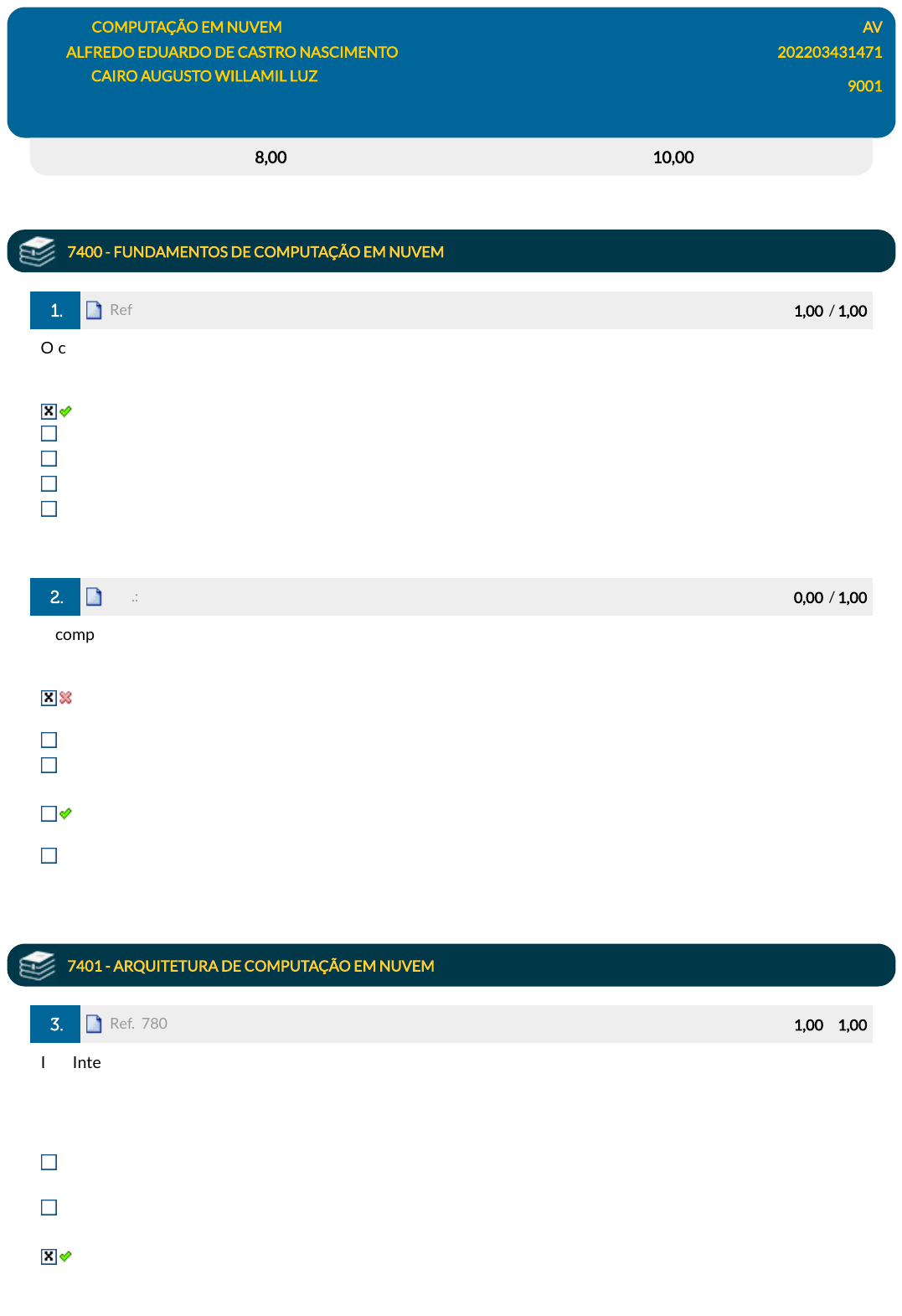 Avaliação: 8,00 pts Nota SIA: 10,00 pts