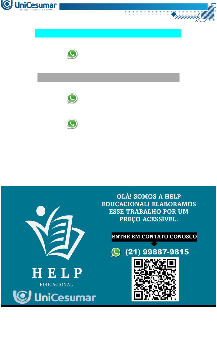 ATIVIDADE 1 – BEDU – LUTAS - 54/2023 (21) 99887-9815 ASSESSORIA NOS SEUS TRABALHOS (21) 99887-9815 (21) 99887-9815 É conhecimento difundido que as artes marciais possuem uma variada gama de expressões, algumas com históricos milenares. A gênese desses sistemas de combate remonta à própria necessidade de se defender ou de empreender ataque a determinado oponente. Não é incorreto afirmar, portanto, que o ato de lutar é tão antigo quanto a própria espécie humana. Atualmente, tais práticas compõem, junto às ginásticas, aos esportes, às danças, aos jogos, às brincadeiras, dentre outros, um dos objetos de investigação e atuação da Educação Física. Assim, como futuro(a) treinador(a) de lutas, conhecer o vasto universo dessas modalidades é fundamental para uma possível atuação profissional dentro de clubes ou academias Fonte: ANDREATO, L. V.; COSWING, V. S. Lutas. Maringá: UniCesumar, 2018. Considerando tal perspectiva e o estudo das Lutas, responda as duas questões a seguir: 1. Na Unidade 1, "Conceitos em Lutas, Artes Marciais e Esportes de Combate", vemos a diferenciação dessas três nomenclaturas. Isso fornece uma facilitação da fundamentação teórica e da aplicação pedagógica. Nesse sentido, quais são as principais diferenças entre essas três definições? 2. A frase "quem luta não briga" é comumente utilizada por professores, instrutores e praticantes dessas modalidades. No entanto, seja nos clubes, seja nas academias, subsiste um entendimento de que as lutas, artes marciais e esportes de combate são catalisadoras de ações violentas e brigas. Responda de acordo com a leitura do referencial teórico e seus conhecimentos: a) Quais são as diferenças perceptíveis entre uma briga e a prática de uma modalidade de combate? b) Para você, qual seria a melhor forma de dissociar a compreensão das lutas, artes marciais e esportes de combate de brigas e ações violentas? OLÁ! SOMOS A HELP EDUCACIONAL! ELABORAMOS ESSE TRABALHO POR UM PREÇO ACESSÍVEL. ENTRE EM CONTATO CONOSCO (21) 99887-9815