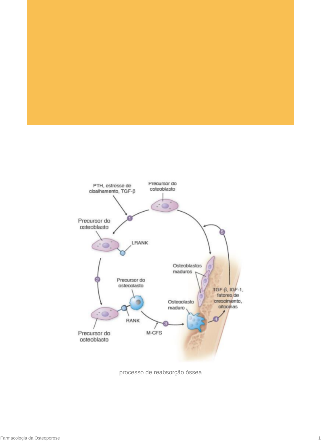 Farmacologia da Osteoporose 1 Farmacologia da Osteoporose processo de reabsorção óssea Farmacologia da Osteoporose 2 A remodelação óssea depende do balanço entre osteoblastos e osteoclastos. A molécula RANKL presente nos precursores de osteoblastos se liga ao receptor RANK presente nos precursores de osteoclastoss. Com isso, M-GFS é liberado e inicia a diferenciação do osteoclasto precursor em osteoclasto maduro (presença de microvilosidade, anel adesivo e liberação de ácidos para reabsorção óssea). Após a desmineralização, os osteoblastos podem depositar osteoide e liberar fosfatase para hidrolisar pirofosfato afim de cristalizar os sais de fosfato e cálcio (processo de mineralização). Os osteoblastos totalmente circundados pela matriz óssea podem ser denominados de osteócitos e contribuem para formação e reabsorção - liberam esclerostina, a qual possui função de inibir a formação óssea. Além disso, osteoblastos produzem osteoprogerina (OPG) com finalidade de inibir a reabsorção óssea por meio do impedimento da ligação RANL-RANK. Vitamina D, paratormônio e glicocorticoides favorecem a atividade osteoclástica, pois modulam a formação de OPG negativamente. O estrogênio estimula produção fármacos e seus mecanismos de ação na remodelação óssea Farmacologia da Osteoporose 3 de OPG. Na osteoporose ocorre um desbalanço da atividade de osteoblastos e osteoclastos. Ela pode ser primária do tipo I ou pó-menopausa, ocorrendo pela queda de estrógenos, enquanto a tipo II está envolvida com o envelhecimento (deficiência crônica de cálcio e aumento do paratormônio). Já a secundária, ocorre por fatores inflamatórios, endócrinos, uso de drogas (corticoide, álcool e vitamina A). No caso do glicocorticoide, há redução da formação de osteoblasto e aumento da atividade osteoclástica, além da perda de absorção intestinal do cálcio. TRATAMENTO DE PRIMEIRA LINHA BISFOSFONATO Bisfosfonatos (BPs) [em pontos vermelhos na figura 2] → ficam presos no osso, saem apenas quando osteoclasto aparece para remodelação óssea (osteoclasto é quem libera) fármaco antirressortivo análogo ao pirosfostato usados amplamente na osteoporose sua estrutura molecular se fixa aos cátions bivalentes - Ca++- de modo que apresenta afinidade nas superfícies ósseas em remodelamento ao ser liberado pelo osteoclasto, fármaco é endocitado e internalizado neles, com isso, ocorre a ativação de algumas vias que desencadeiam sua morte por apoptose tratamento de primeira linha proteção de osteoblastos e osteócitos da apoptose induzida por glicocorticóides baixa absorção oral e biodisponibilidade nos tecidos → indicação é tomar em jejum pela manhã visto que, se ingeridos com alimento, podem se ligar a ele bem como suplementos que possuem cátion bivalente, reduzindo ainda mais a absorção (jejum de líquidos e alimentos por 60 minutos após) intensa distribuição óssea e excreção inalterada por filtração glomerular podem causar pirose e esofagite, devendo ser administrado com bastante água (250ml) e paciente permanecer reto; pode ocorrer osteonecrose da mandíbula - raro VITAMINA D Farmacologia da Osteoporose 4 vitamina D3 ou colecalciferol é formada nas camadas profundas da pele em contato com raios UVB; o colecalciferol sobre uma hidroxilação no fígago formando o 25-hidroxicolecalciferol inativo que será ativo no rim por uma segunda hidroxilação, gerando 1,25-hidroxicolecalciferol ou calcitriol a forma ativa, calcitriol, aumenta absorção de cálcio no intestino, pois facilita entrada no enterócito, e inibe paratormônio, eleva a reabsorção renal de cálcio e fosfato, além de ter ação imunomoduladora. Resumindo: suplementação suprime a remodelagem óssea, melhora DMO e aumenta a absorção intestinal de cálcio → indicado para pacientes com menores concentrações de vitamina D suprime função das glandulas paratireoides reduz renovação óssea usado em pacientes com deficiência renal crônica (rim nao faz hidroxilação para formar vit D) → possuem pouca vit D, hipocalcemia e aumento do paratormônio suplementação de vit D e cálcio reduz a incidência de fraturas uso de análogos da vitamina D disponível por VO e intravenosa evento adverso: hipercalcemia, exige monitoramento adequado podem ser usados numa suplementação modesta que suprime remodelagem óssea, melhora densidade mineral óssea e aumenta absorção intestinal de cálcio conjunto de suplementação de cálcio e vit D reduz a incidência de fraturas TRATAMENTO DE SEGUNDA LINHA MSRE - Moduladores Seletivos dos Receptores de Estrogênio esses moduladores se ligam aos seus receptores e promovem ativação de coativadores e corepressores para alterar a transcrição gênica alguns tecidos atua como semelhante do estrógeno, em outros tem efeito antagonista estrogênico reduzindo a transcrição gênica varia de acordo com elementos de resposta hormonal que eles se ligam e qual tipo de coativação e corepressores são recrutados reduz risco de fraturas por compressão vertebral e aumenta moderadamento DMO, porém, pode aumentar fator tromboembólico bazedoxifeno Farmacologia da Osteoporose 5 aumenta densitometria mineral óssea (DMO) e reduz o turnover ósseo eficácia similar ao dos bisfofonatos na redução de fraturas osteoporóticas raloxifeno é antagonista ao estrógeno no osso, aumenta a apoptose de esteoclastos e inibe morte dos osteoblastos na mama atua como entagonista para evitar aumento proliferativo do tecido mamário - que pode levar ao câncer tamoxifeno antagonista no osso, endométrio - pode aumentar risco de câncer endometrial - e mama Terapia de reposição hormonal (TRH) reduz a reabsorção pela supressão dos genes que codificam RANKL e citocinas responsáveis por proliferar osteoclástos. Também geram morte de osteoclastos e inibe morte dos osteoblastos e osteócitos. geralmente são administrados com agente de progesterona p