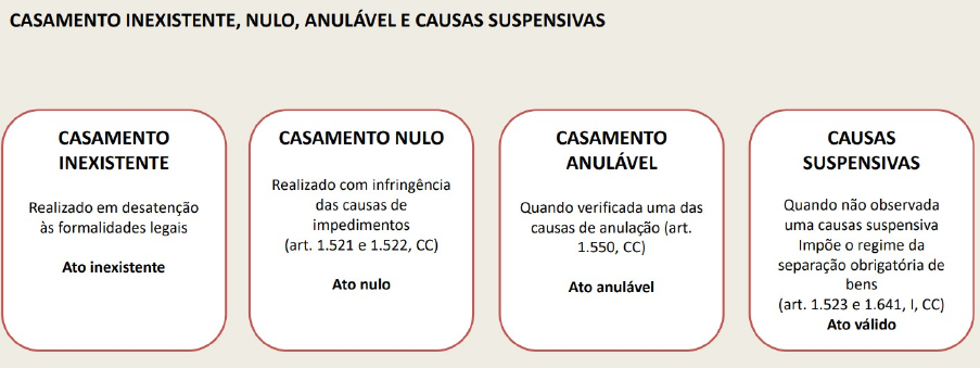 Deveres Conjugais Art 1.566 do CC · I - fidelidade recíproca; · II - vida em comum, no domicílio conjugal; · III - mútua assistência; · IV - sustento, guarda e educação dos filhos; · V - respeito e consideração mútuos; Regime de Bens · Finalidade · Disciplinar as relações econômicas entre os cônjuges durante o casamento, regulando a propriedade e a administração dos bens e dívidas adquiridos antes e após o matrimônio; · Regimes Legais · Até 1977: Comunhão Universal · Após 1977: Comunhão Parcial · Código Civil/2002: Comunhão Parcial (art. 1649, CC) · Tipos de Regimes · Comunhão Parcial; · Comunhão Universal; · Separação Total; · Separação Obrigatória; E · Participação nos aquestos; · Início e término do regime de bens · Início: a data do casamento ; · Quando o juiz declara “estão casados”; · Fim: óbito, a data da separação judicial ou do divórcio; · A doutrina e jurisprudência entendem que o regime de bens cessa com a separação de fato; · Pacto antenupcial · Em face do princípio da autonomia da vontade, os nubentes podem escolher o regime de bens, misto ou único. · Forma · Apenas por escritura pública; · Nulidade e eficácia · Nulo quando não feito por escritura; · Ineficaz sem a realização do casamento ou quando é imposto o regime de separação obrigatória de bens · STJ entende que se o pacto foi feito antes da união estável, ele pode ser válido por já se ter a intenção de usar tal regime. · Alteração de regime de bens · é permitido, desde que respeitado os requisitos a seguir: · Pedidos de ambos os cônjuges; · Decisão judicial; · Razões relevantes; · Ressalva de direitos de terceiros; · COMUNHÃO PARCIAL DE BENS · Arts 1.658 a 1.666, CC; · Forma de escolha: · Eleito pela não realização de pacto antenupcial ou aplicado quando esse pacto for nulo ou ineficaz; · Regra Geral: · Comunicam-se os bens adquiridos onerosamente durante em função da presunção do esforço comum e excluem-se os bens particulares; · · Massas de bens · Existem duas massas de bens: · Bens particulares; (não comunicáveis) · Bens comuns; (comunicáveis) · Bens comunicáveis · I - os bens comprados durante o casamento, ainda que só em nome de um dos cônjuges; · II - os bens adquiridos por fato eventual, com ou sem o concurso de trabalho ou despesa anterior; · III - os bens adquiridos por doação, herança ou legado, em favor de ambos os cônjuges; · IV - as benfeitorias em bens particulares de cada cônjuge; · V - os frutos dos bens comuns, ou dos particulares de cada cônjuge, percebidos na constância do casamento, ou pendentes ao tempo de cessar a comunhão. · Bens Incomunicáveis · I - os bens que cada cônjuge possuir ao casar, e os que lhe sobrevierem, na constância do casamento, por doação ou sucessão, e os sub-rogados em seu lugar; · II - os bens adquiridos com valores exclusivamente pertencentes a um dos cônjuges em sub-rogação dos bens particulares; · · III - as obrigações anteriores ao casamento; · IV - as obrigações provenientes de atos ilícitos, salvo reversão em proveito do casal; · V - os bens de uso pessoal, os livros e instrumentos de profissão; · VI - os proventos do trabalho pessoal de cada cônjuge; · VII - as pensões, meios-soldos, montepios e outras rendas semelhantes.